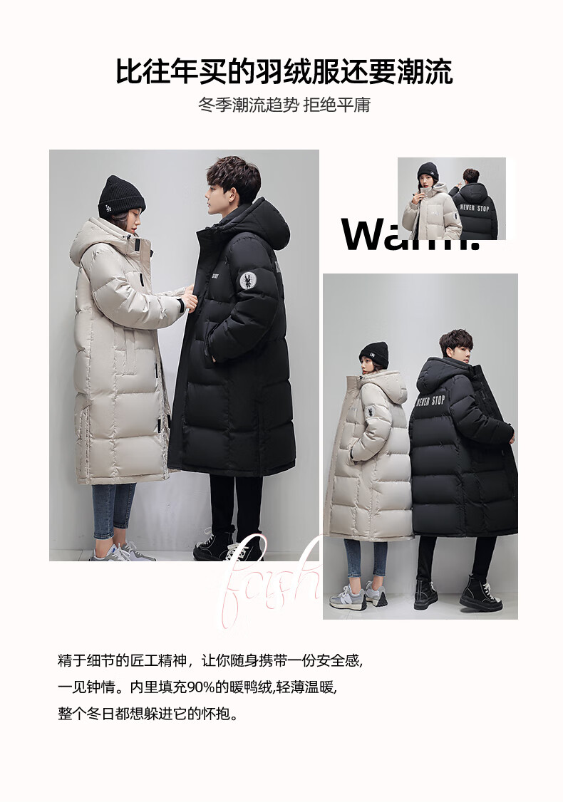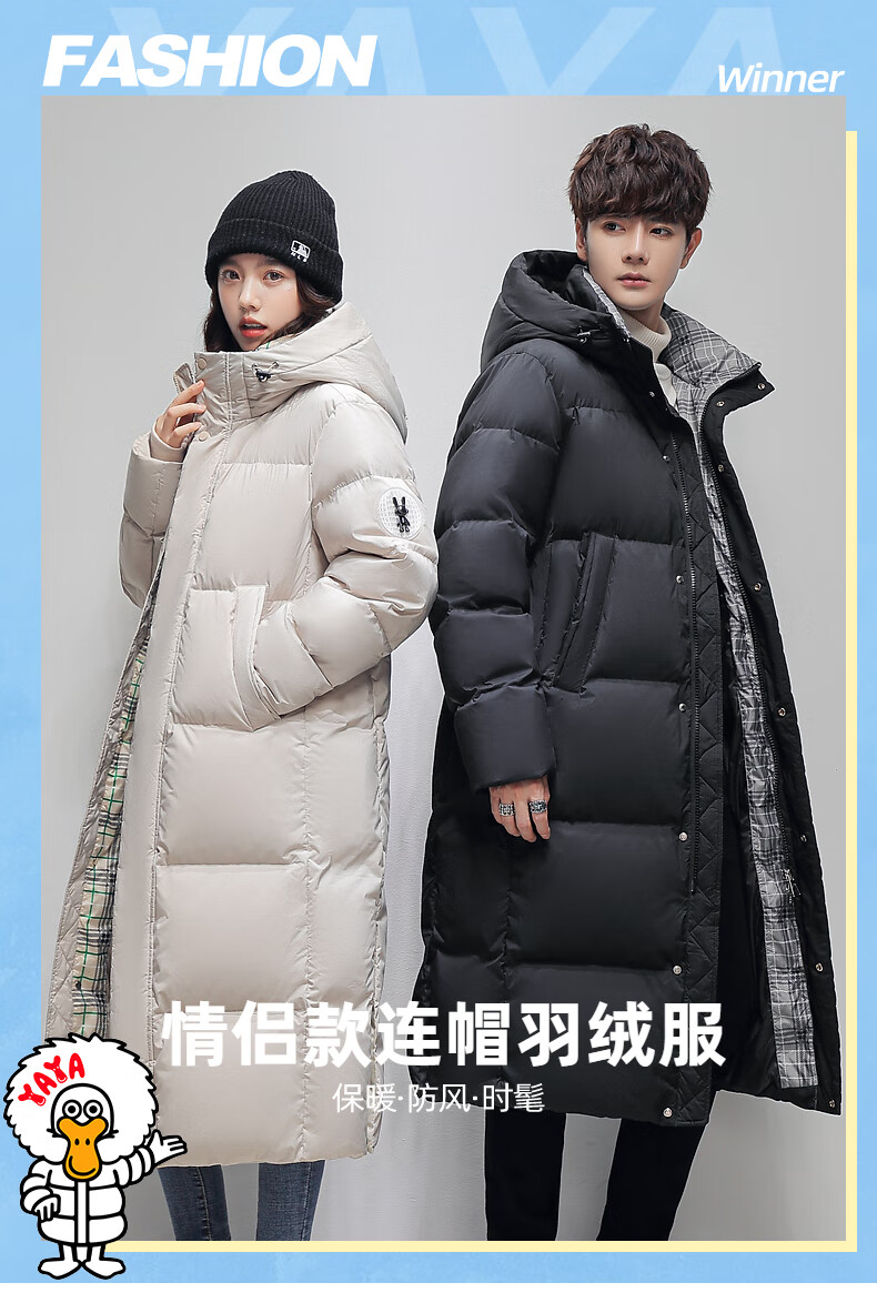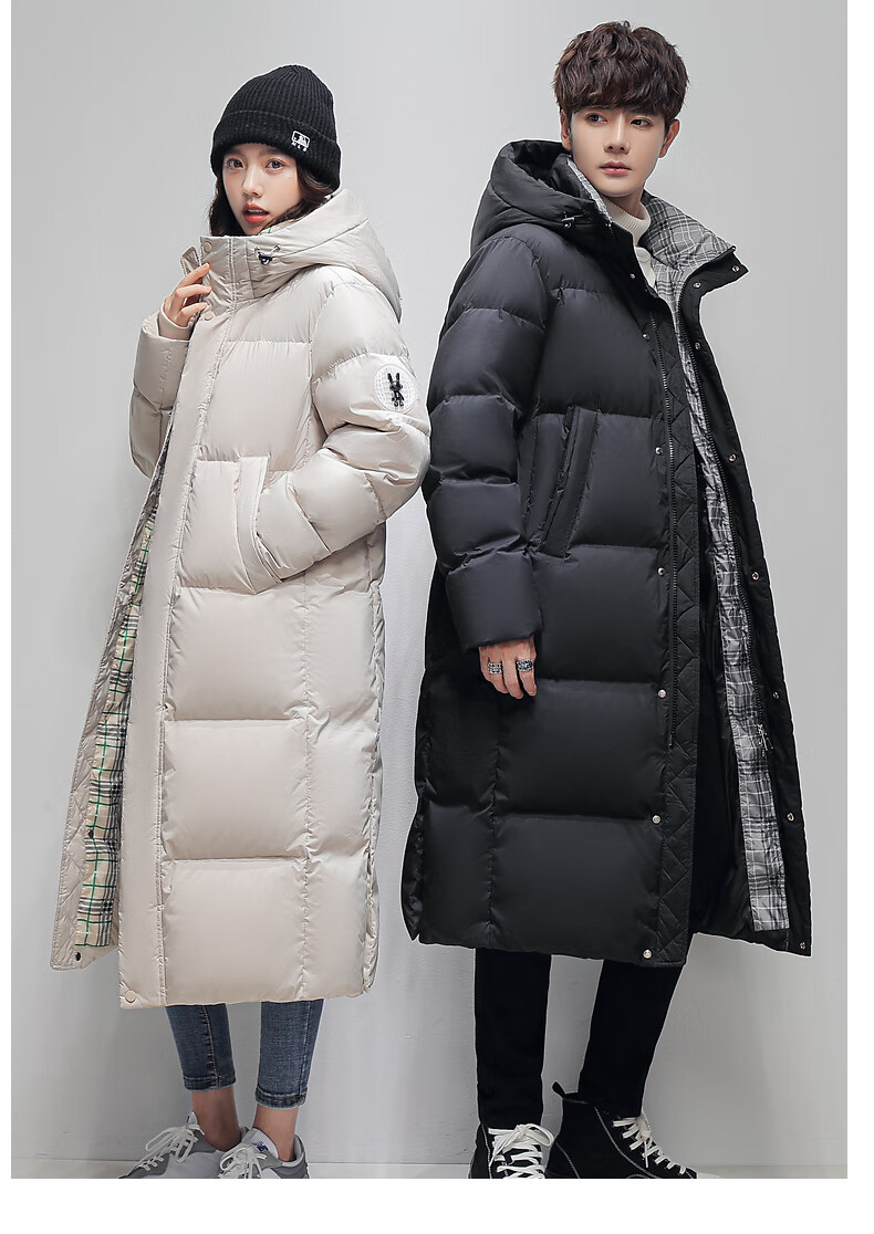 Yaya (YAYA) Daunenjacke für Männer und Frauen, langer Stil, über dem Knie, verlängert und verdickt, Winter-Paar-Stil, extrem kalte und warme Herrenjacke