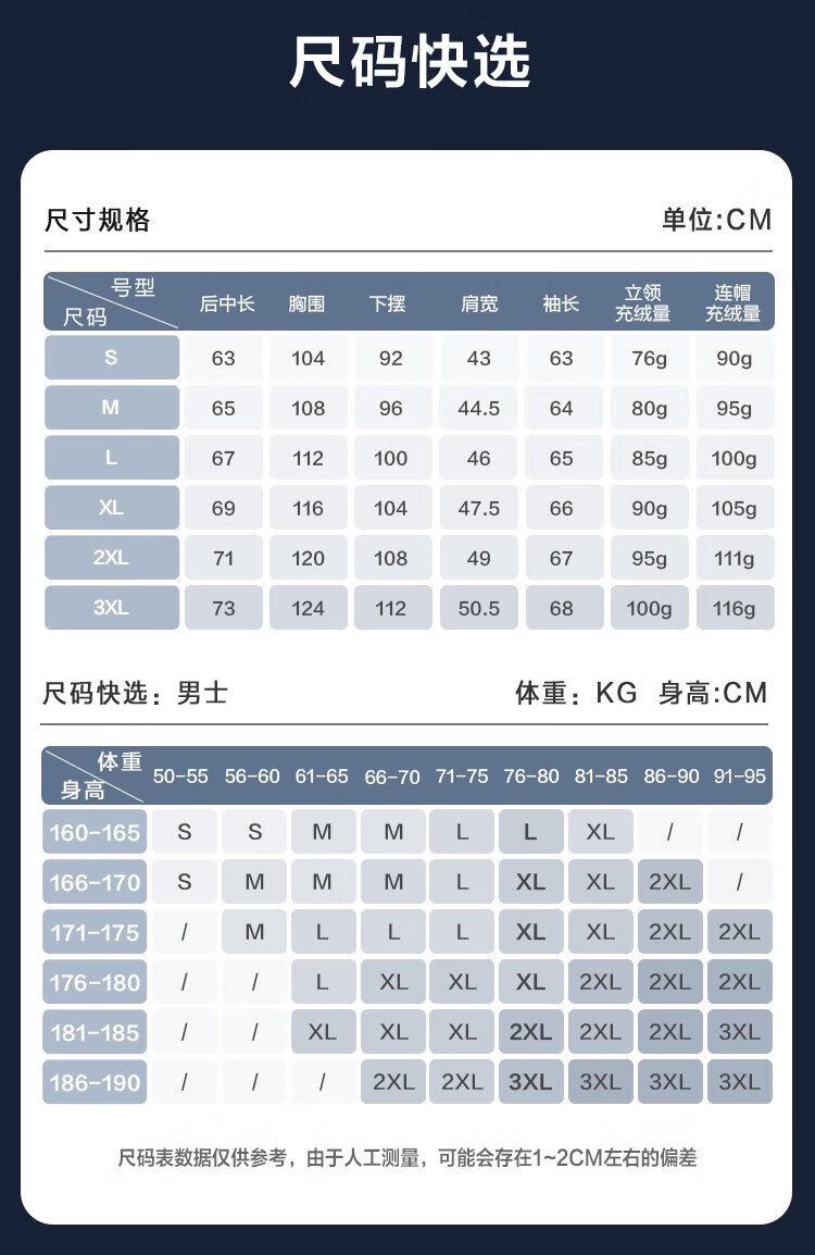 China (cm) 165 / 88-90 170 / 96-98 175 / 108-110 180 / 118-122 185 / 126-130
