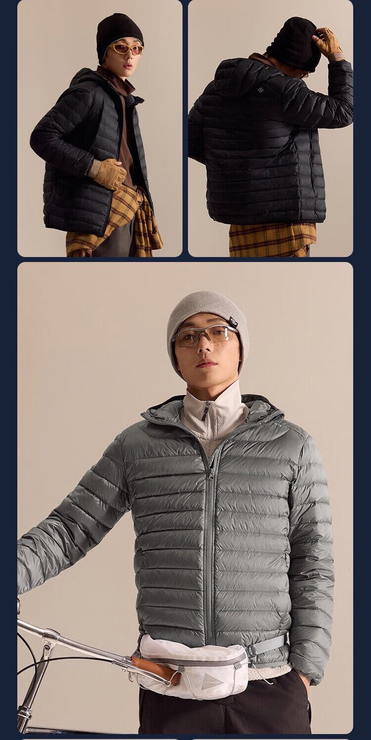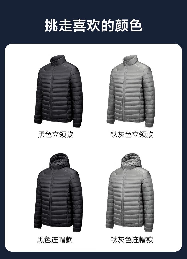 Jing Tokyo Pangolin Light Down Jacket Stand Collar White Duck Down Outdoor Autumn and Winter Jacket Short Men Black L