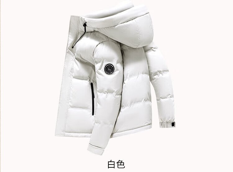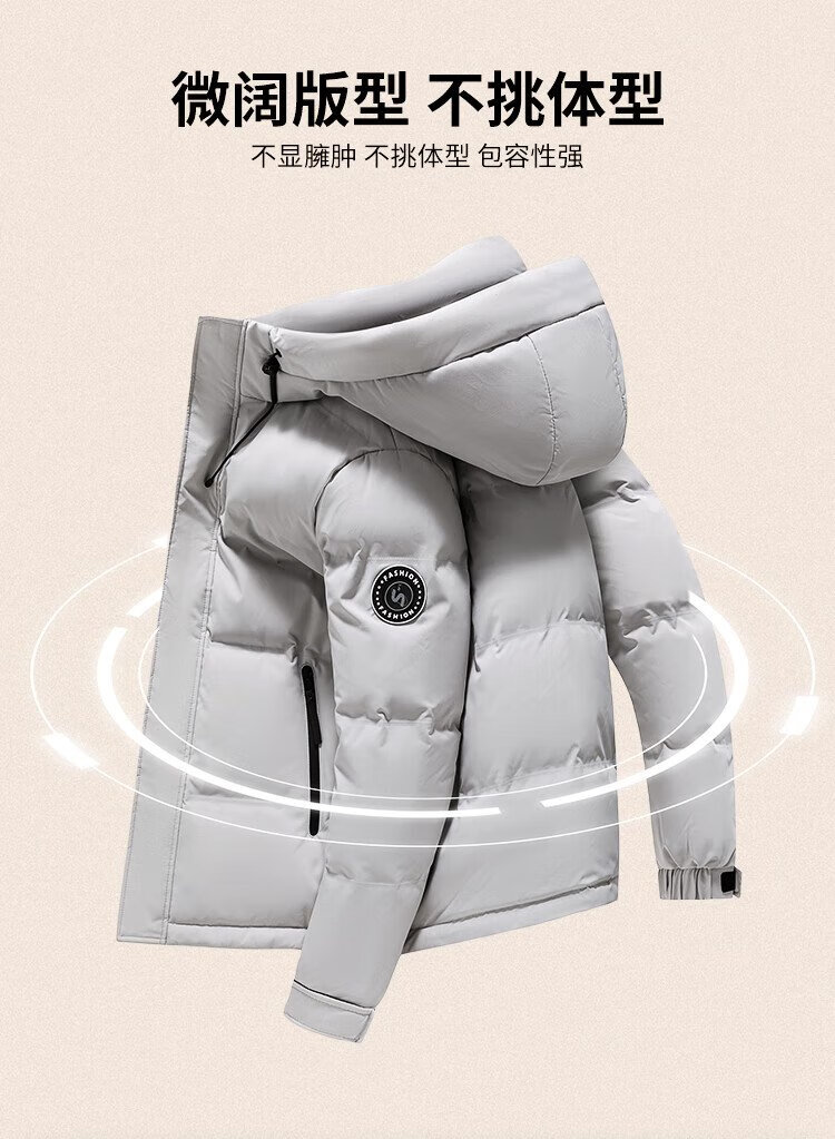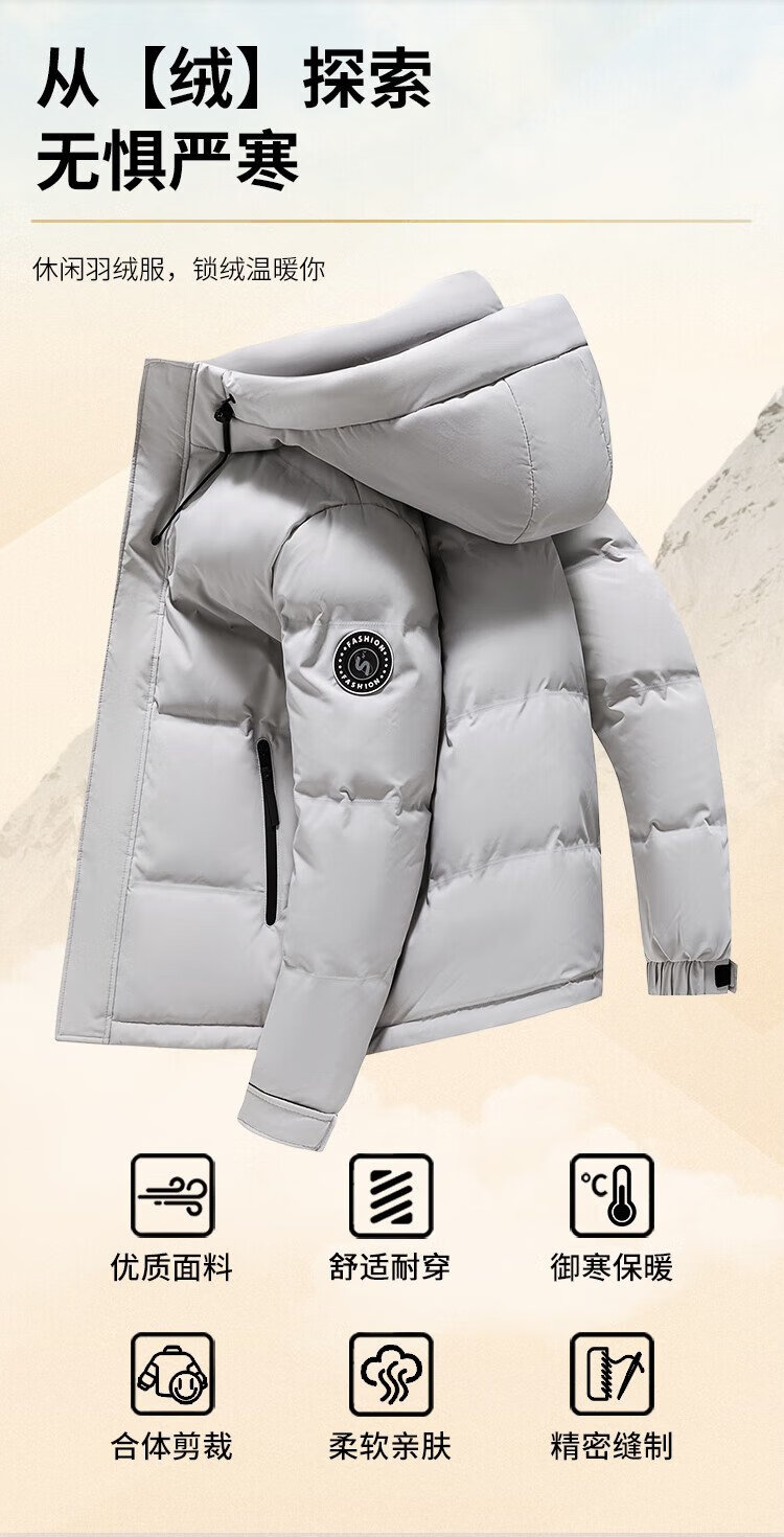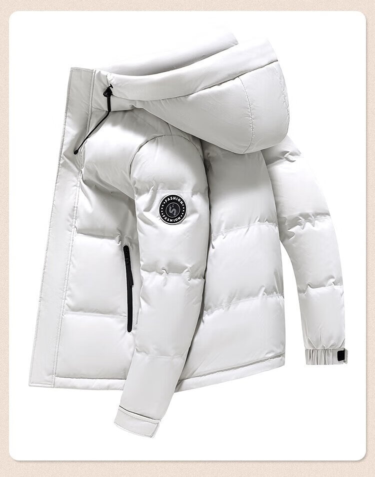 Flying in the Snow Men's Winter Fashion Casual Hooded Drawstring Commuting Solid Color Versatile Warm and Coldproof Down Jacket