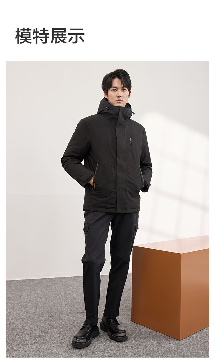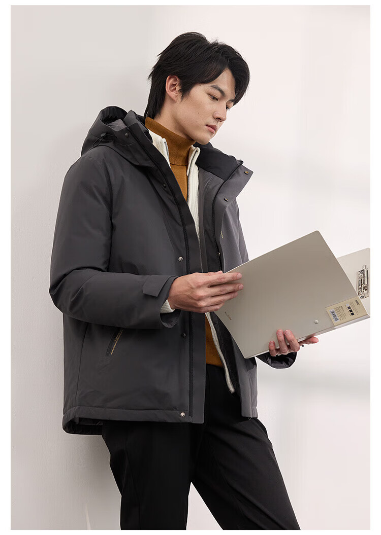 Jing Tokyo Made Down Jacket Men's 90 Down Thick Commuting Short Autumn and Winter Hooded Warm Jacket Black L(175/96A)