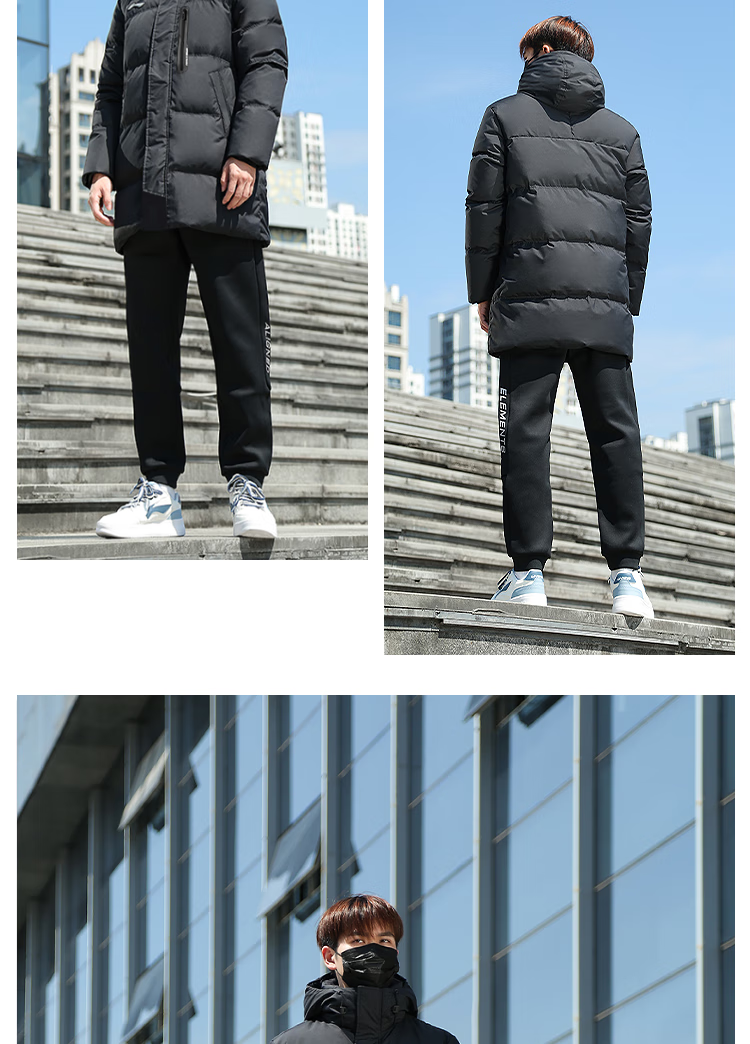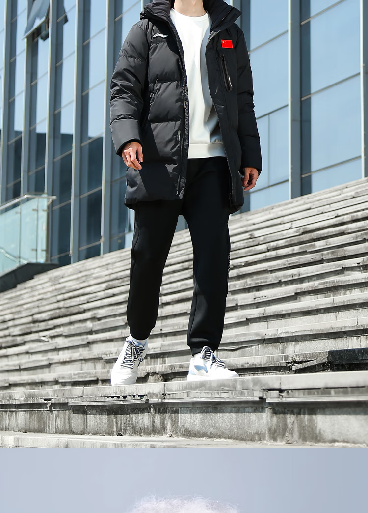 Li Ning Daunenjacke für Herren, mittellang, für den Winter, mit Kapuze, winddichte Technologie, verdickte Sport-Entendaunen, warme, lockere Freizeitjacke