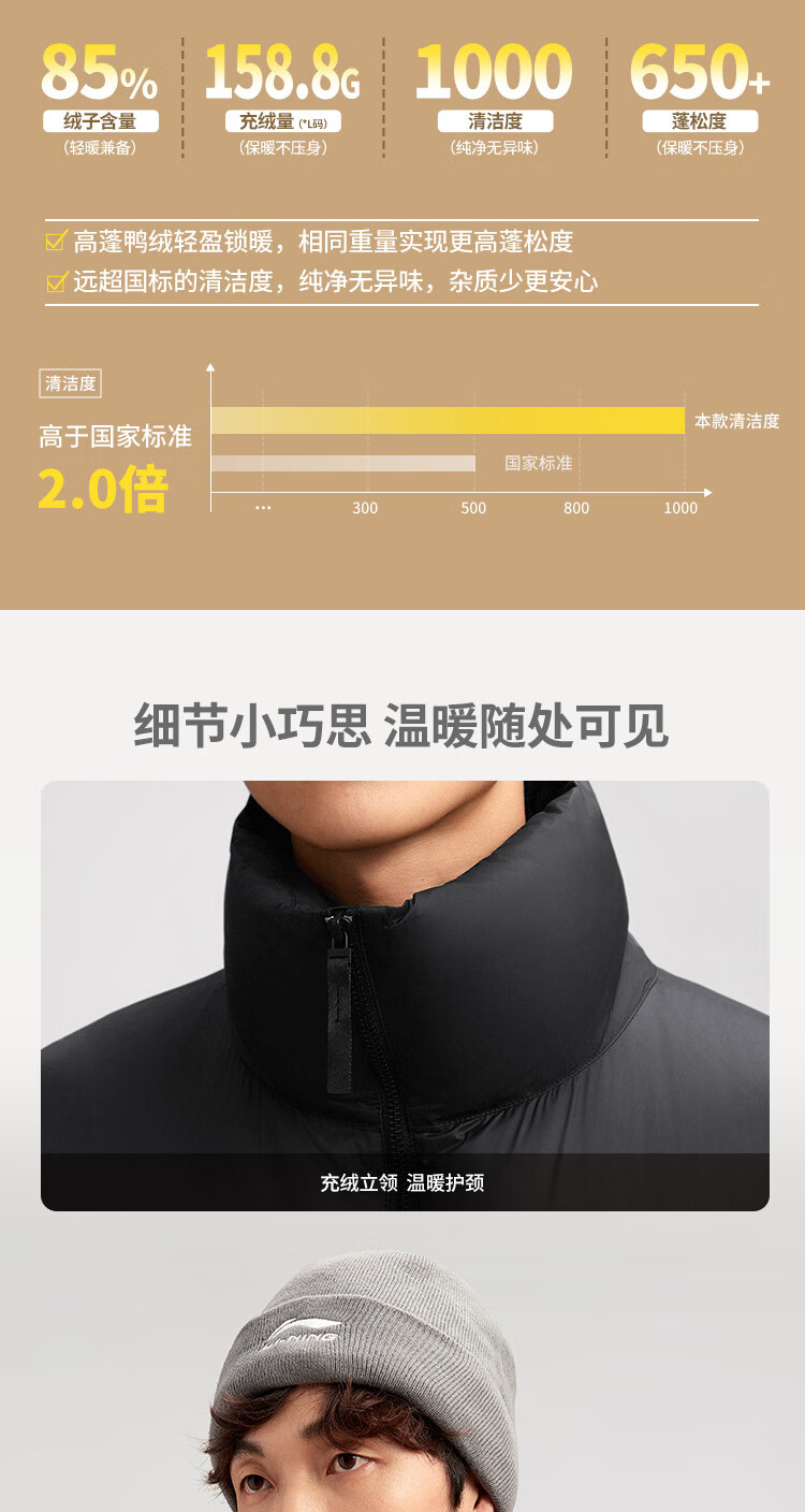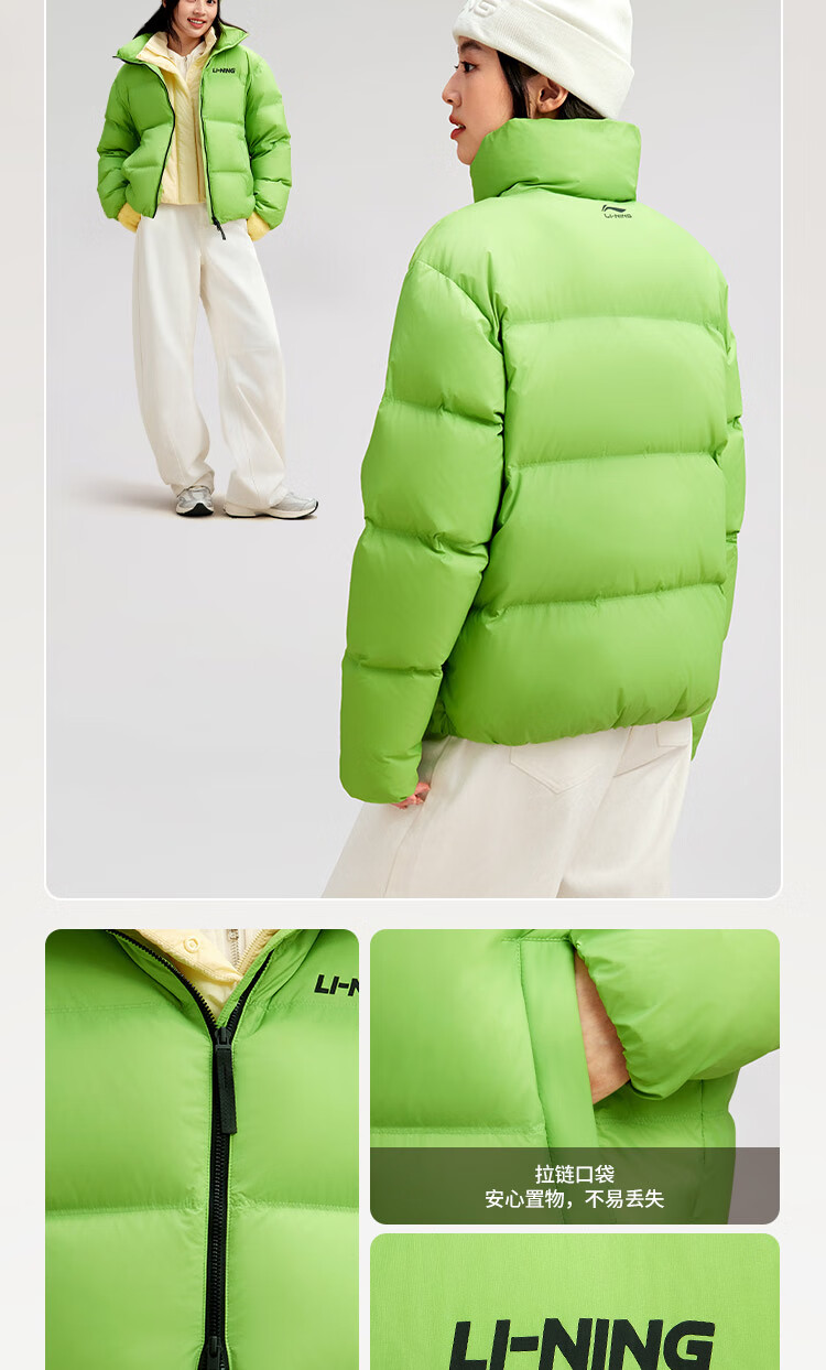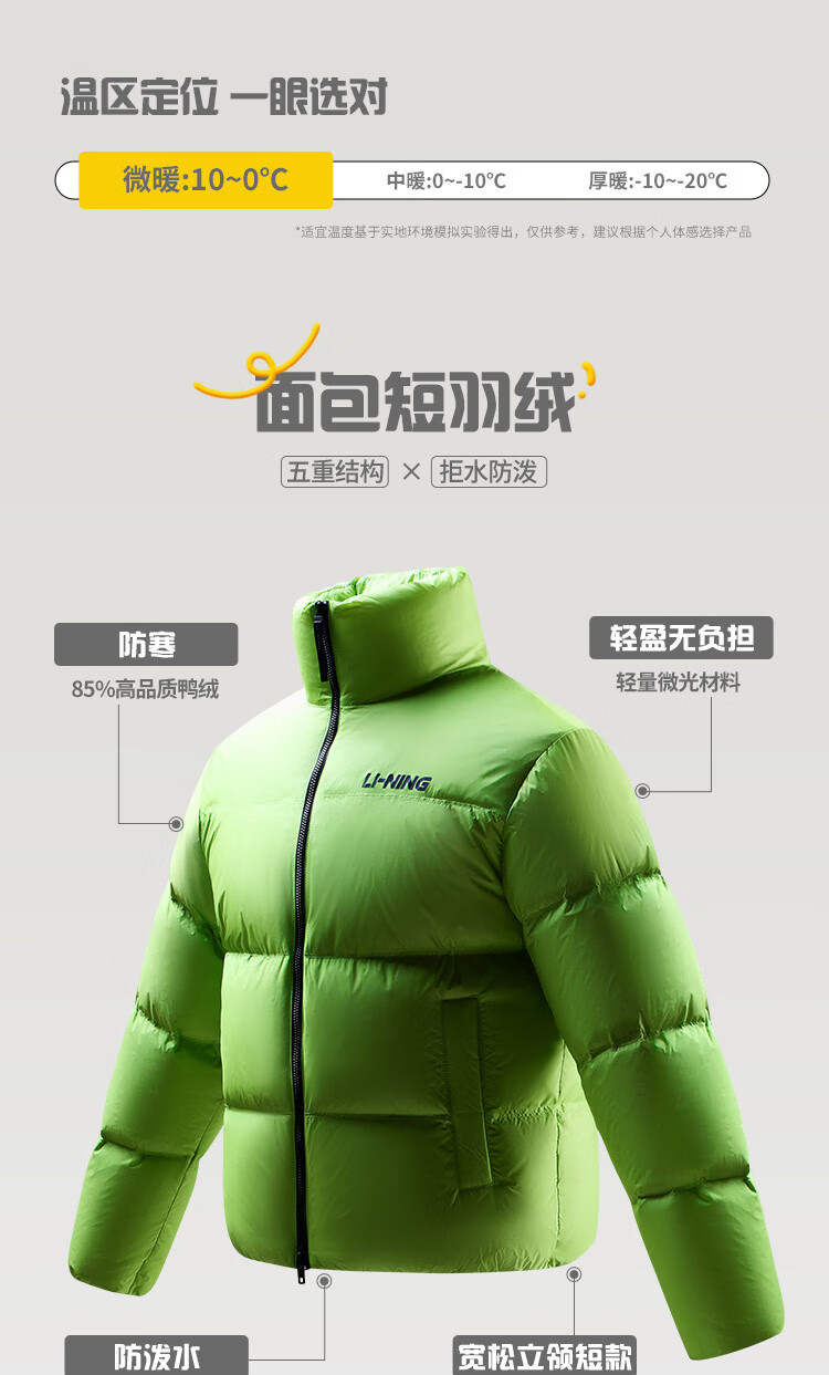 Li Ning Puff Down | Water-repellent short down jacket for men and women, loose 80% duck down sports coat AYMV427