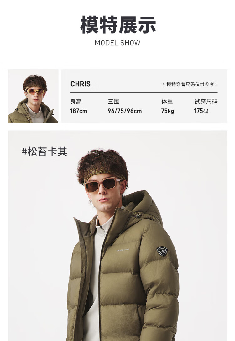 Tambor Daunenjacke Herren kurze Kapuze Winter Outdoor warme und bequeme Brotjacke 5560339D Fengjika 170