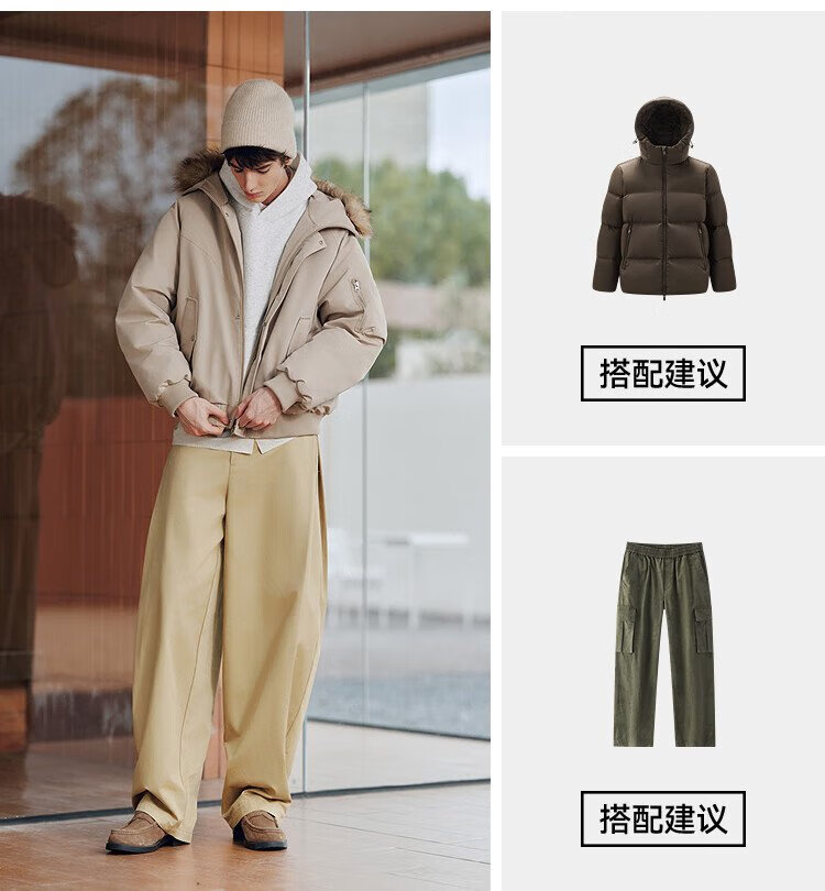Semir down jacket men's winter 80 down three-proof pilot jacket 2025 detachable fur collar hood 109725113115