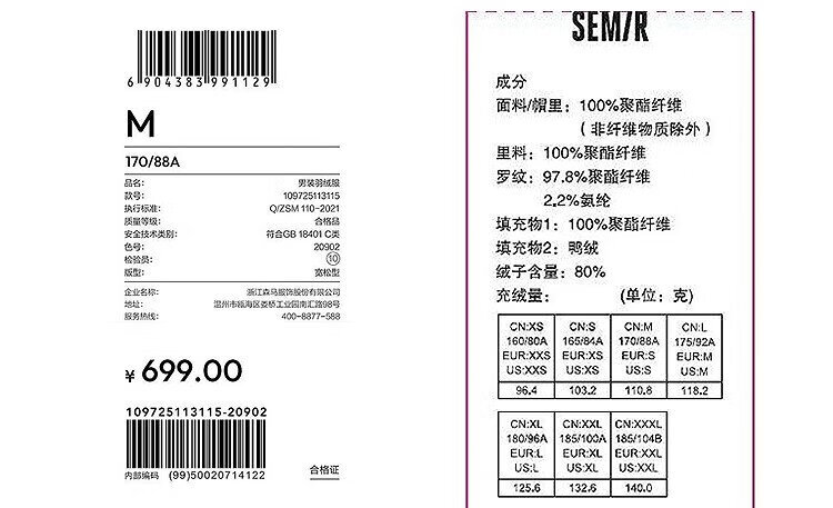 China (cm) 160-165/84-86 165-170 / 88-90 167-172 / 92-96 168-173 / 98-102 170-176 / 106-110