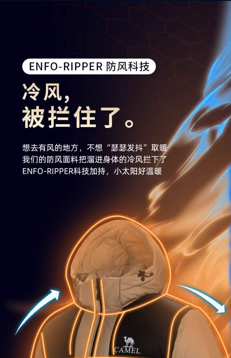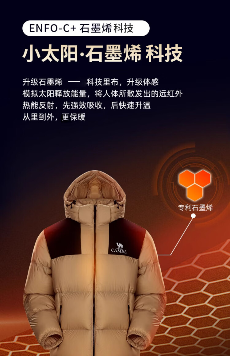 CAMEL Little Sun-Graphene Autumn and Winter Outdoor Down Jacket for Men and Women Thickened Warm Bread Jacket