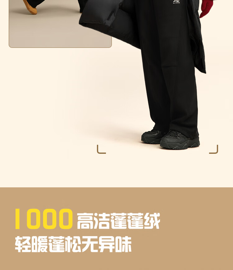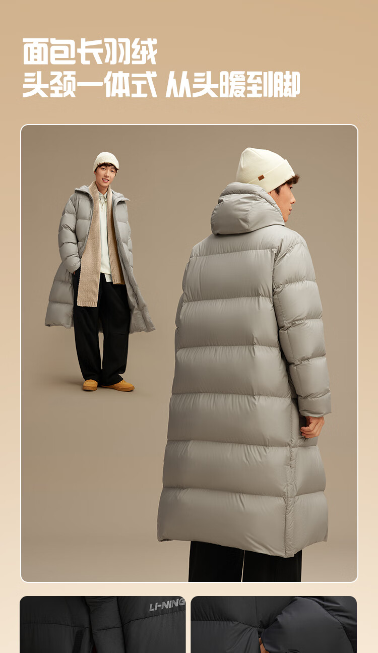 Li Ning Hot Pot Down丨Long Down Jacket Men's 2025 New Duck Down Loose Sports Jacket AYMV513