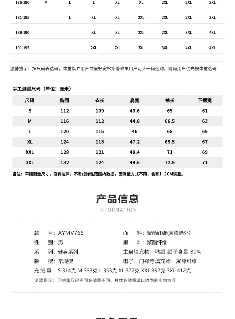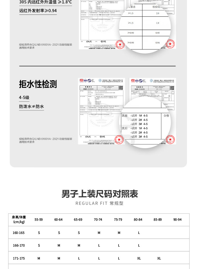 China (cm) 165 / 88-90 170 / 96-98 175 / 108-110 180 / 118-122 185 / 126-130