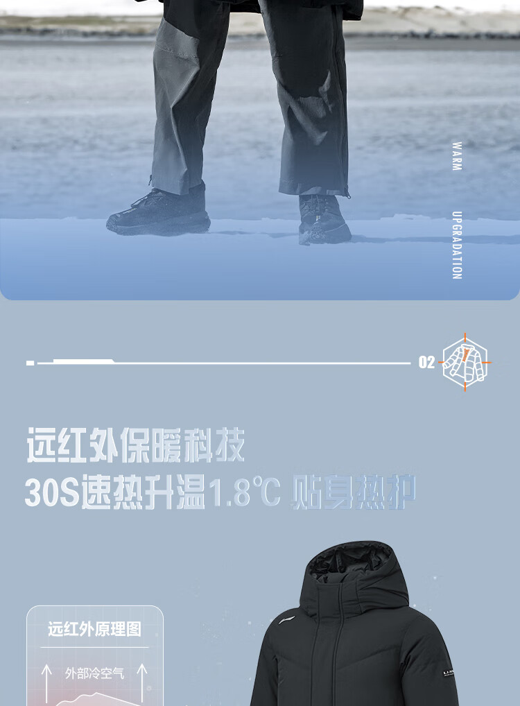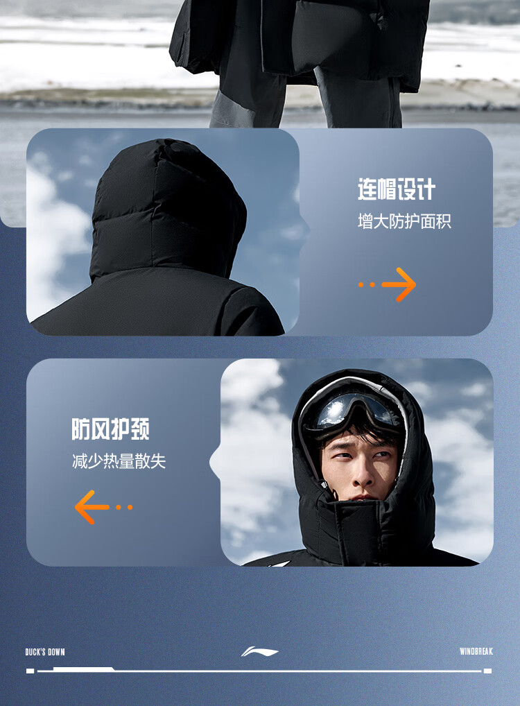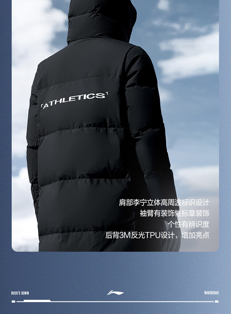 Li Ning Warm Long Down Jacket Men's 2025 New Style Locking, Comfortable and Versatile Casual Sports Jacket AYMV765