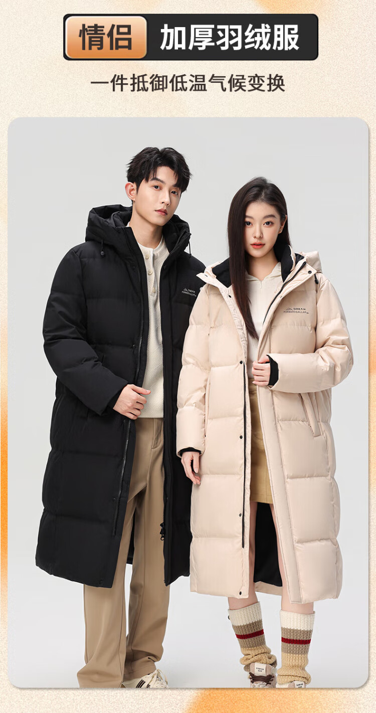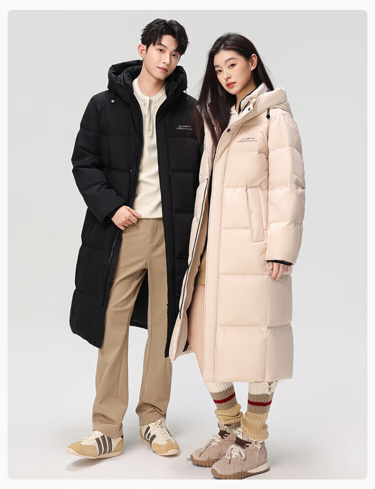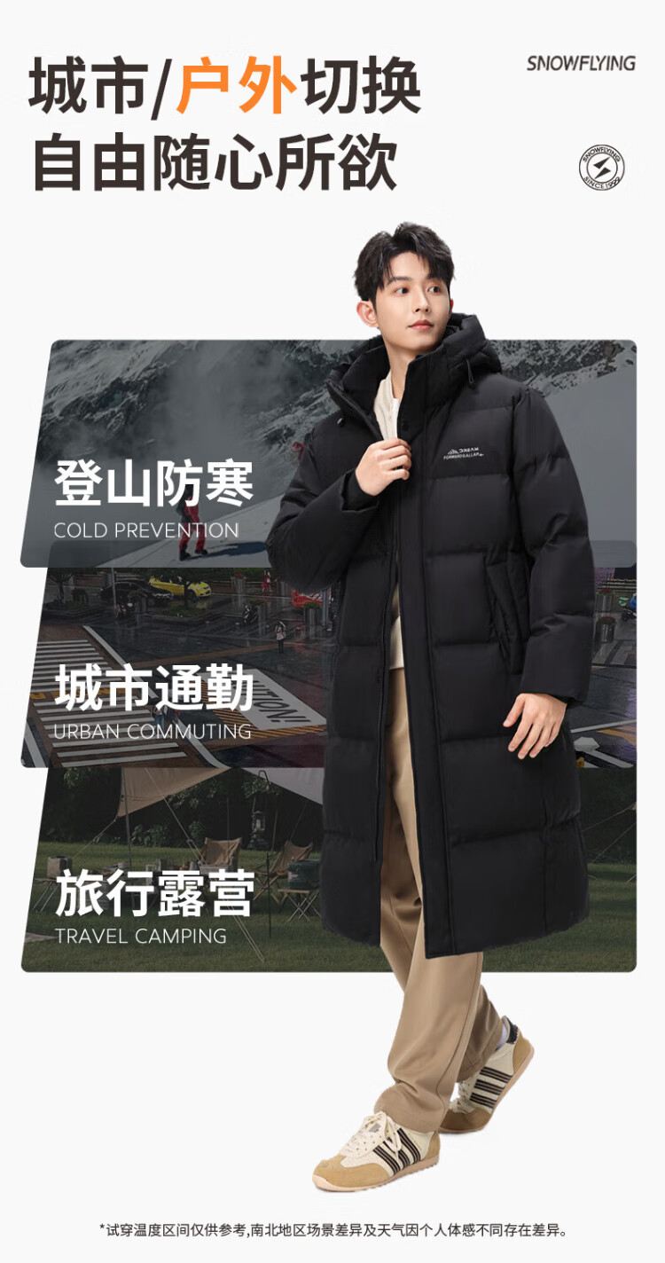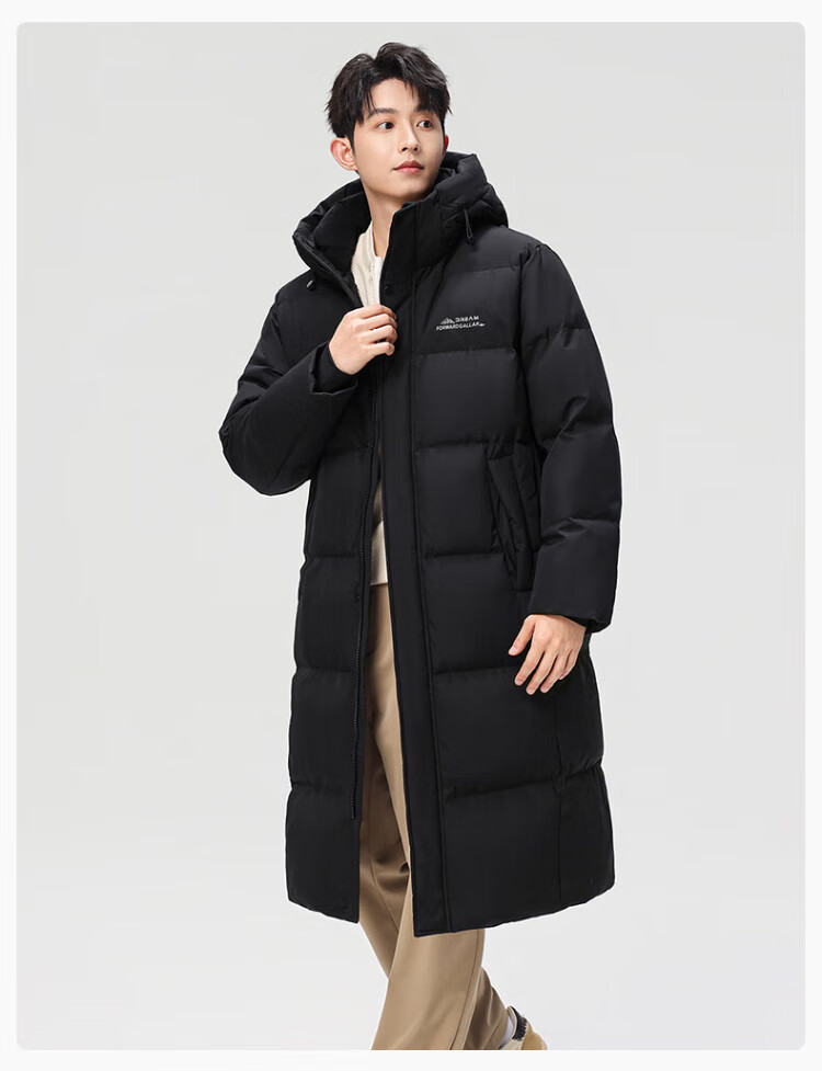 Flying in the Snow Men's Down Jacket Winter High-Filled Down Over-the-Knee Long Down Jacket Warm Hooded Top Commuting Sports Jacket