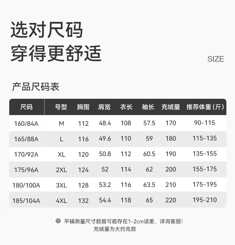 China (cm) 160-165/84-86 165-170 / 88-90 167-172 / 92-96 168-173 / 98-102 170-176 / 106-110