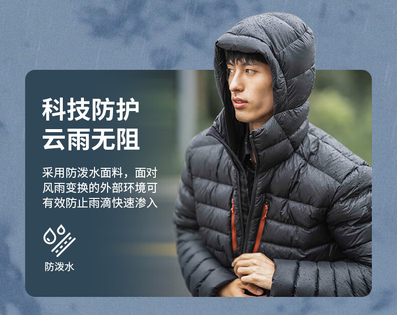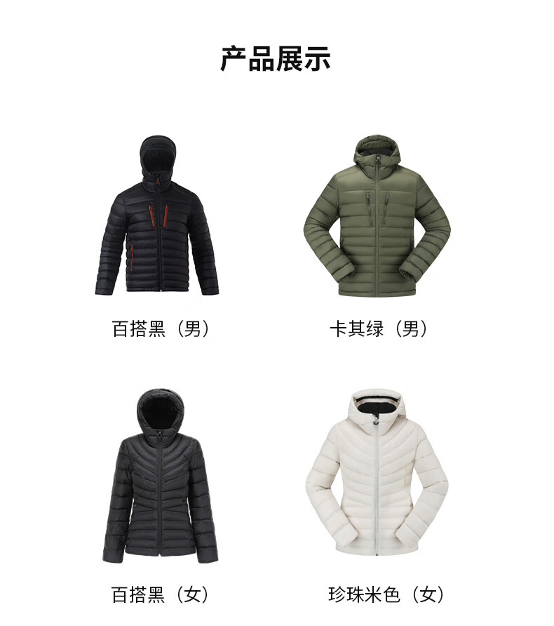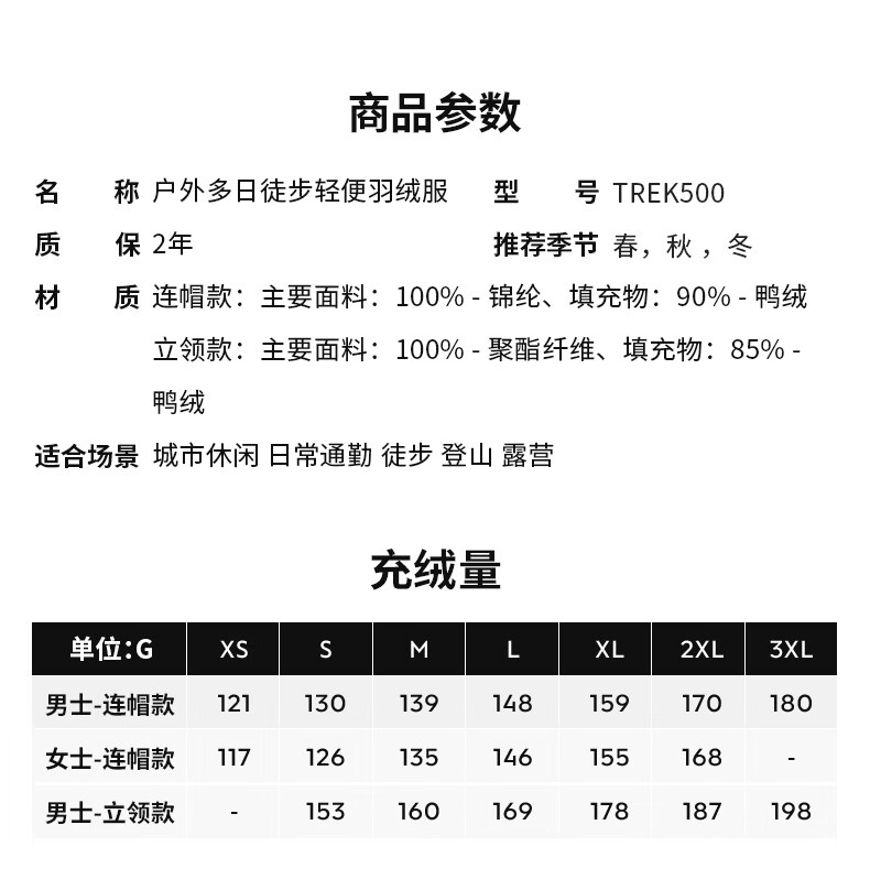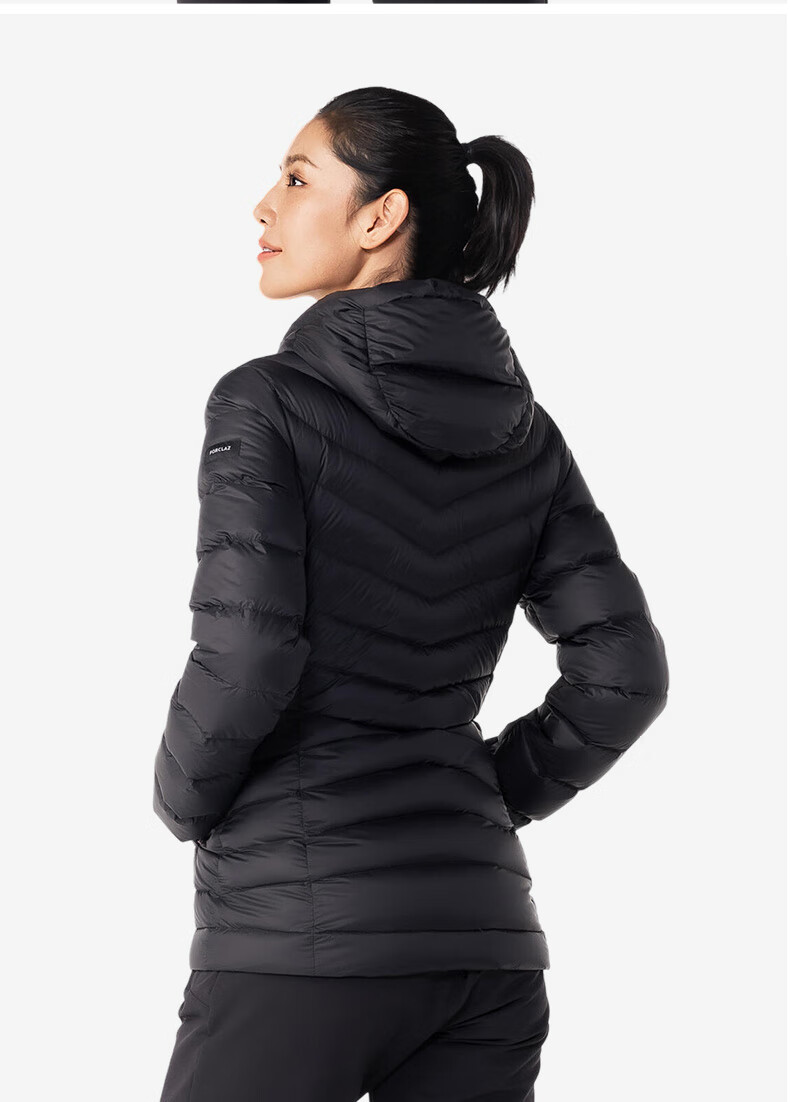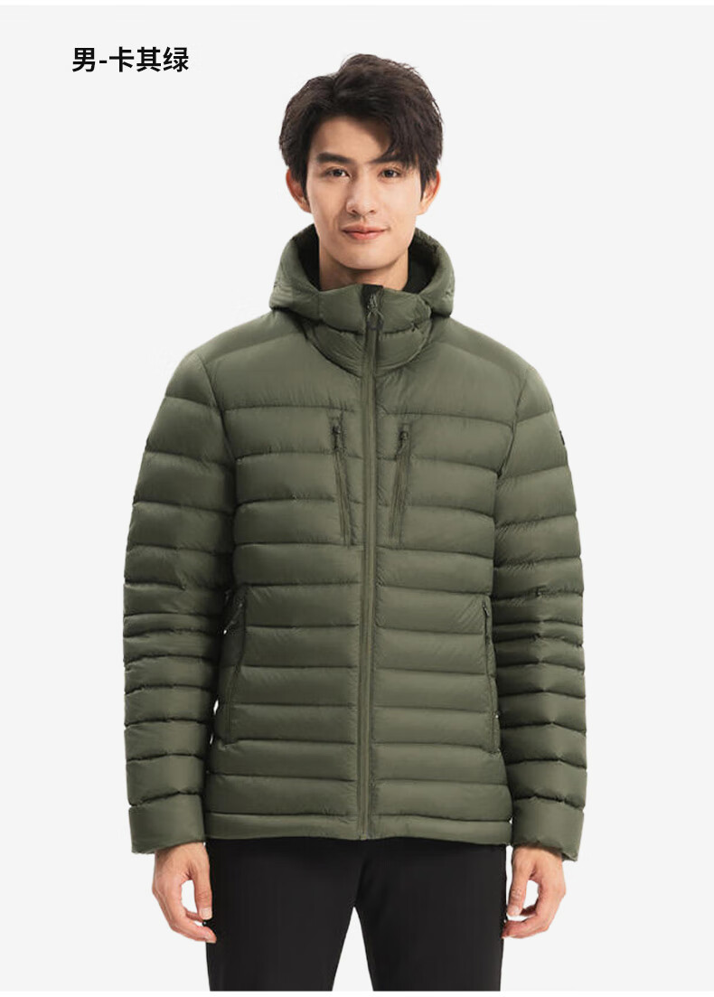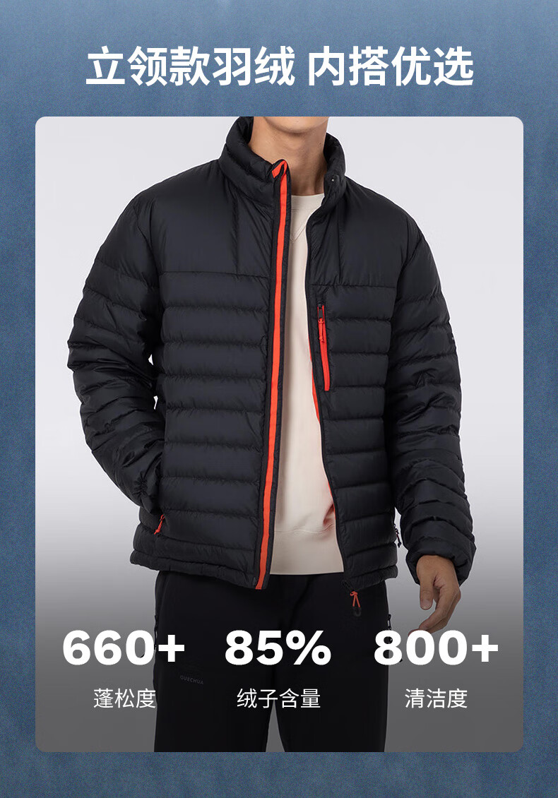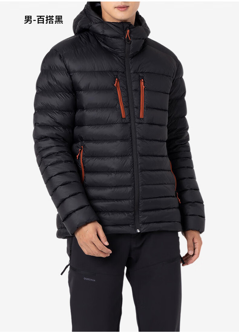 DECATHLON men's and women's down jackets with thickened inner liner, hooded and warm, regular jackets, bread jackets, light down jackets, men's style - black XL