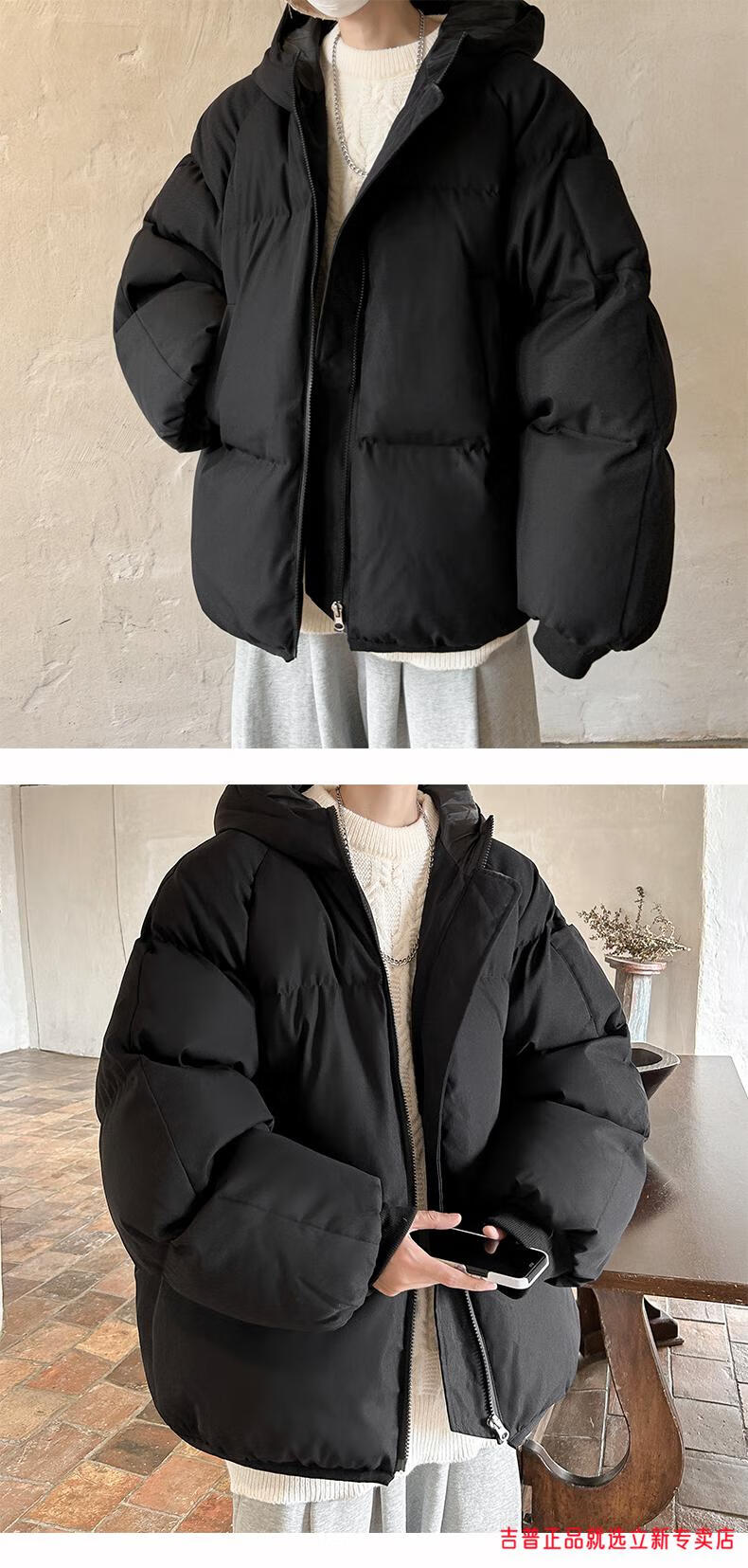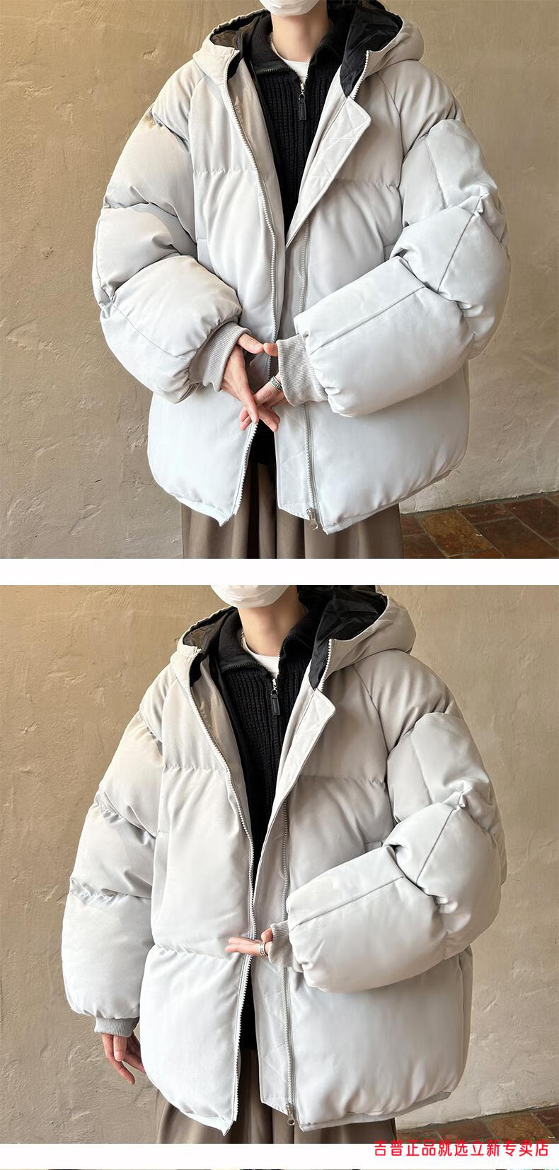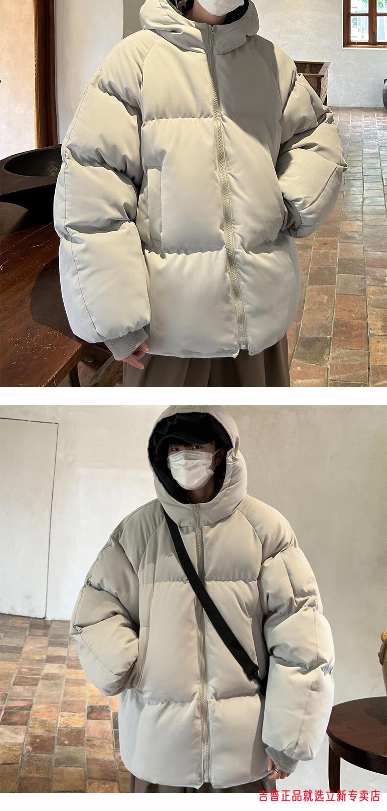JEEP SPIRIT Autumn and Winter New Trendy National Trend Loose Down Jacket Men's Hooded Thickened Solid Color Versatile Student Bread Large Size Light Gray XL -120-140Jin Jin is equal to 0.5 kg