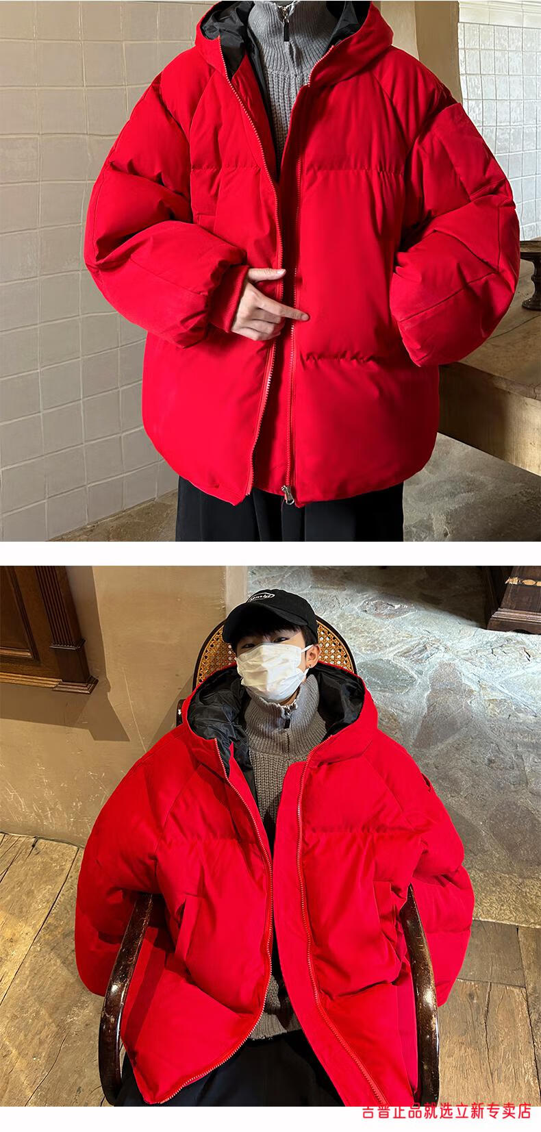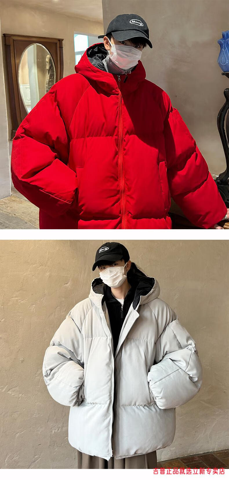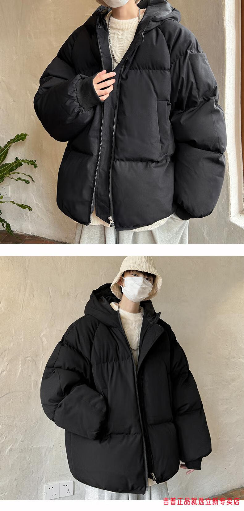 JEEP SPIRIT Autumn and Winter New Trendy National Trend Loose Down Jacket Men's Hooded Thickened Solid Color Versatile Student Bread Large Size Light Gray XL -120-140Jin Jin is equal to 0.5 kg