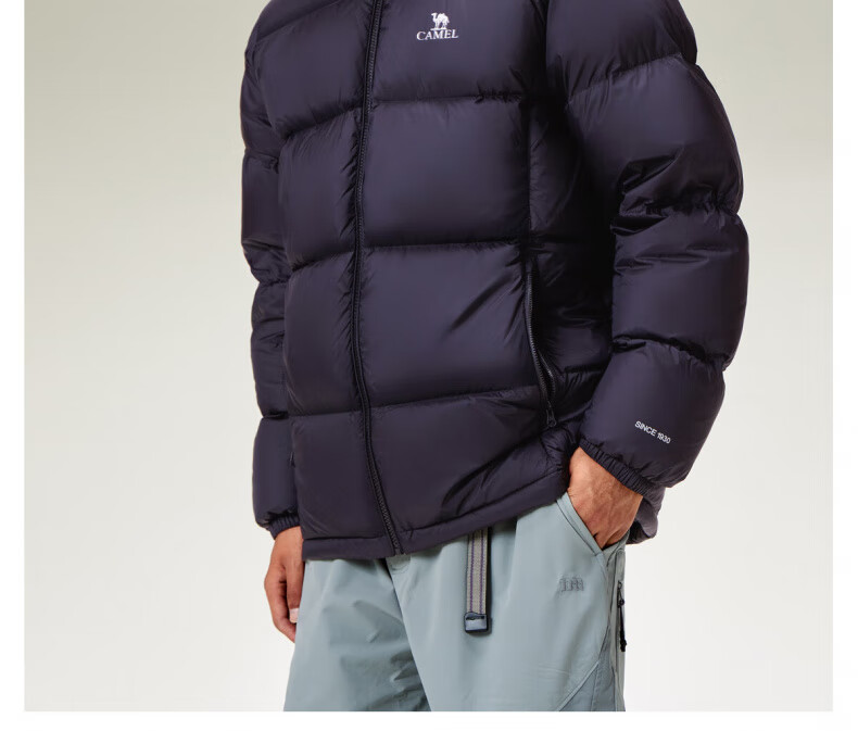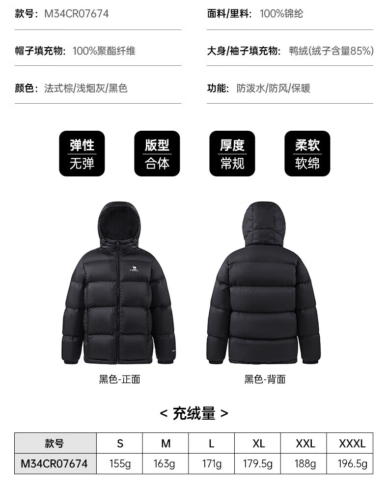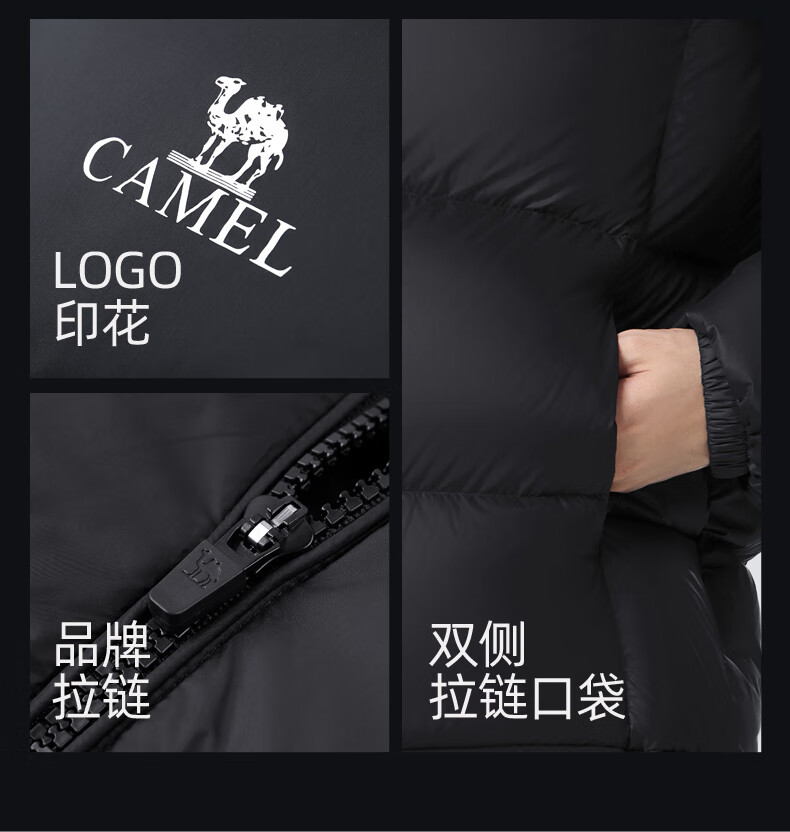 Camel Volcano Down Jacket Men's Winter New Thick Hooded Warm Bread Jacket Women's Urban Light Outdoor Black Uniform Style for Men and Women, 7674B M
