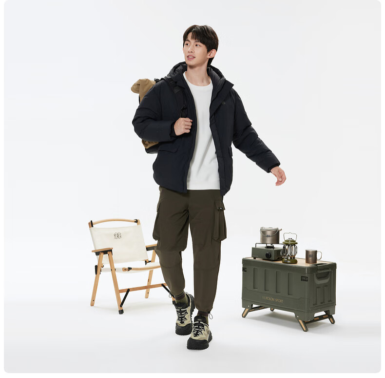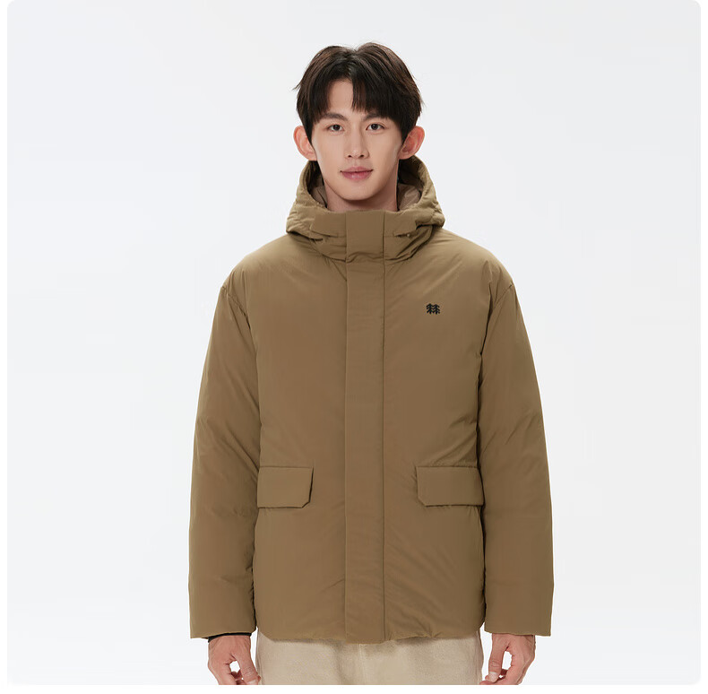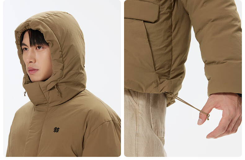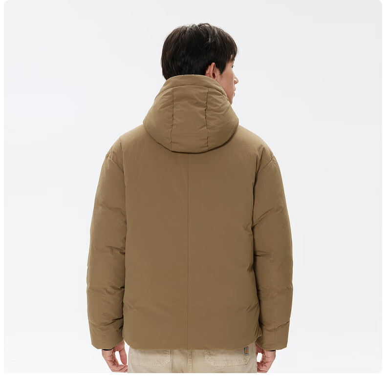 KOLON SPORT/Kolon mid-weight down jacket, windproof and water-repellent seamless short hooded goose down jacket for men and women LUDJ4WTT03-CA camel M