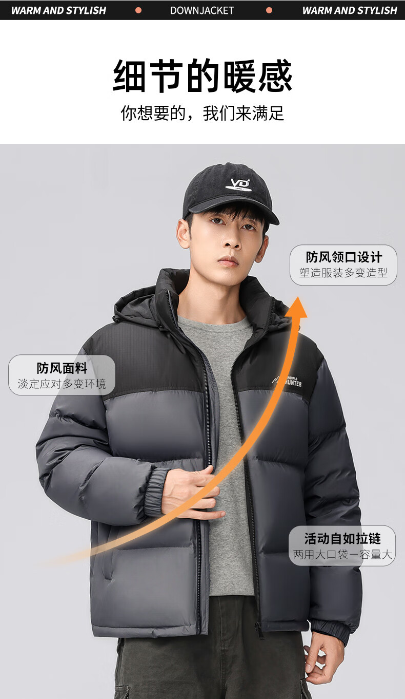 Yaya High Filled Down 203g Men's Short Down Jacket Thickened Winter New Extreme Cold Warm Bread Jacket Contrast Color Jacket Black XL (180)