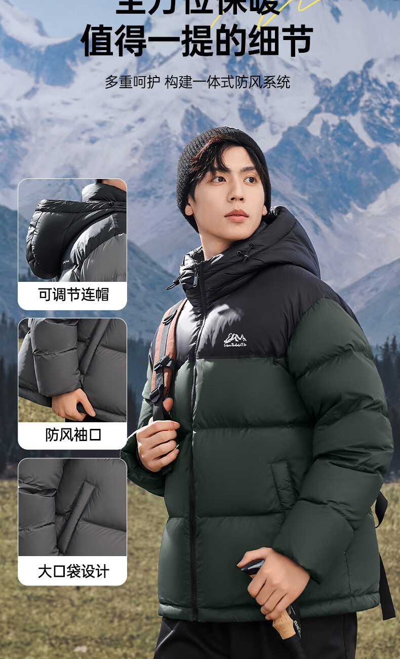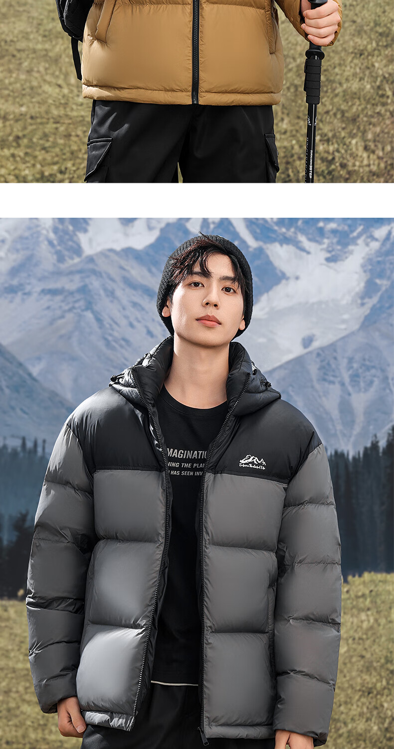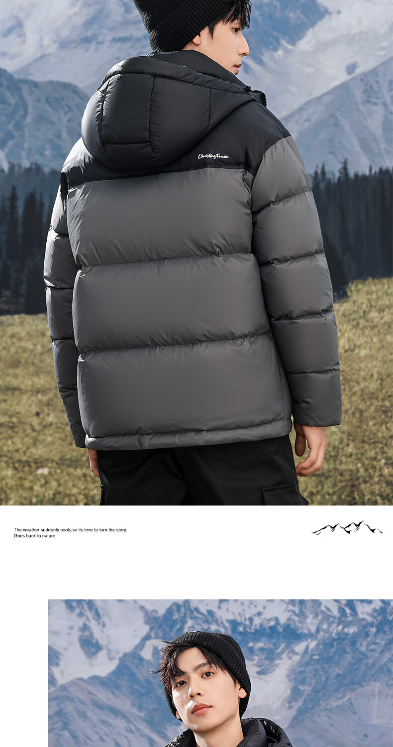 Yalu High Filled Down Jacket 203G Men's Short Thickened Winter New Contrast Color Hooded Bakery Jacket for Men Pure Black XL Recommended 135-150Jin Jin is equal to 0.5 kg