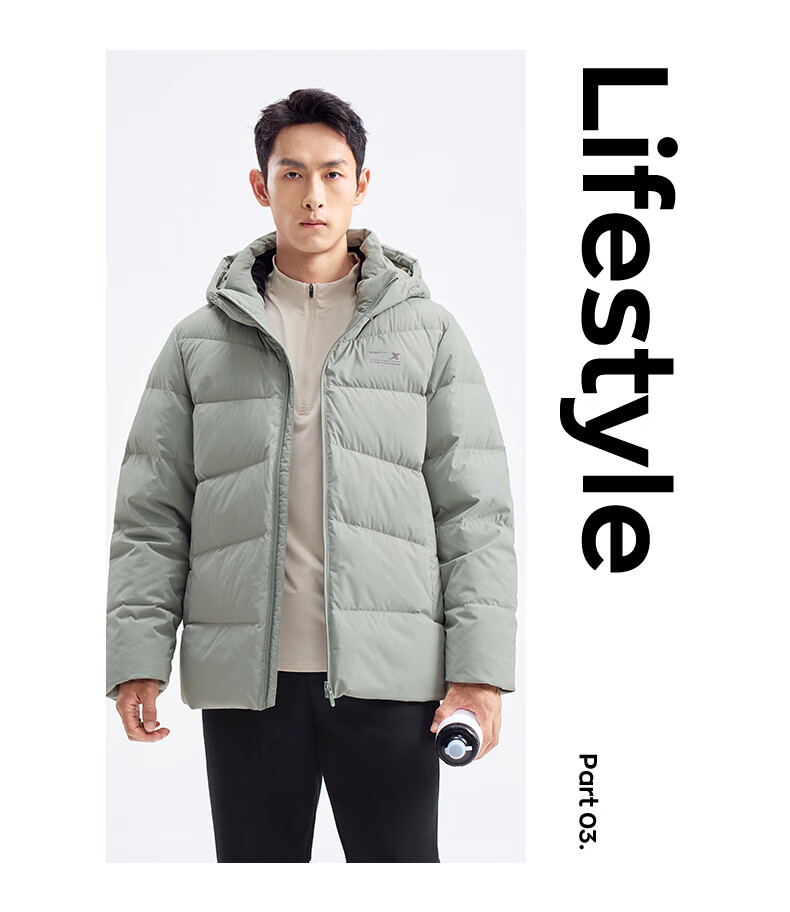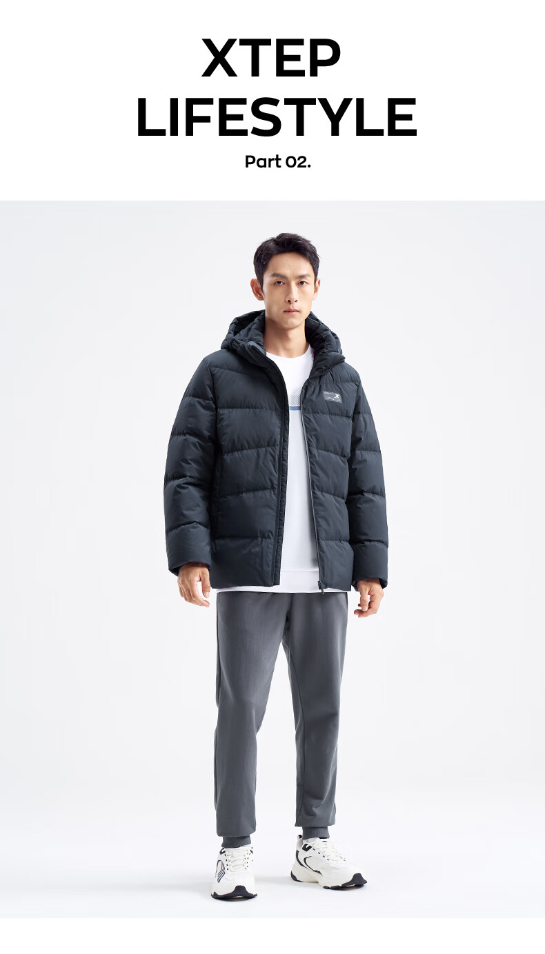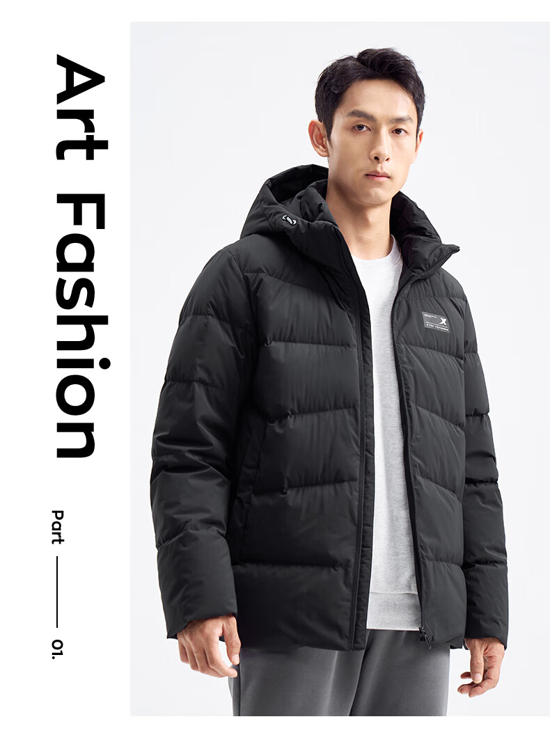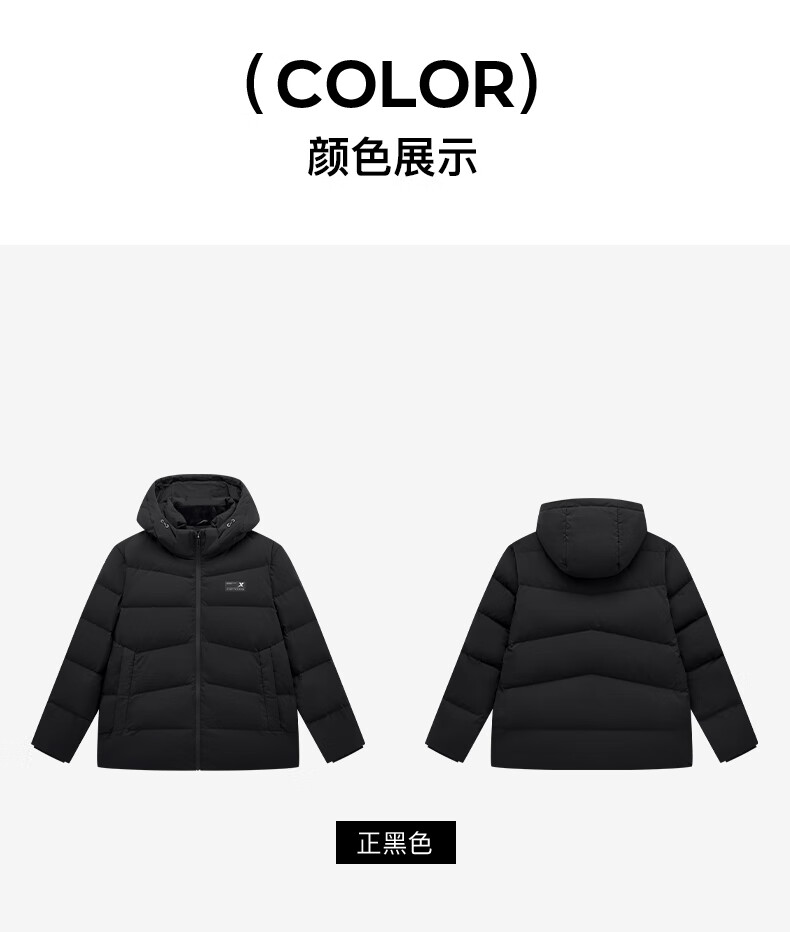 Xtep store same style down jacket men's winter new thickened warm hooded top jacket 976429190172 True Black XL