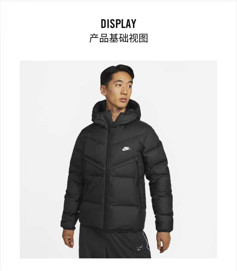 Nike Men's Windproof Hooded Down Jacket Winter Lightweight Jacket NIKE STORM-FIT DV1132 010 Black/Black/Sail White L