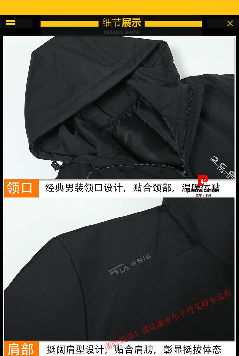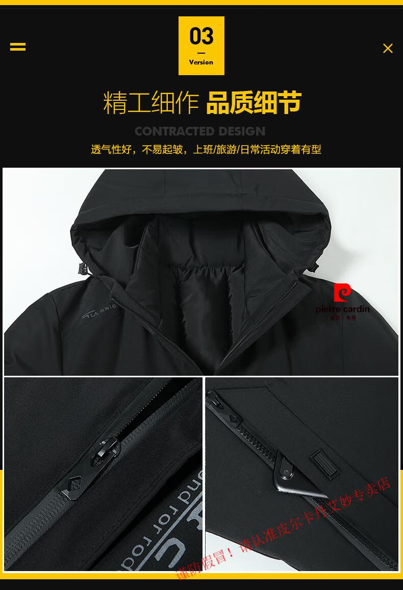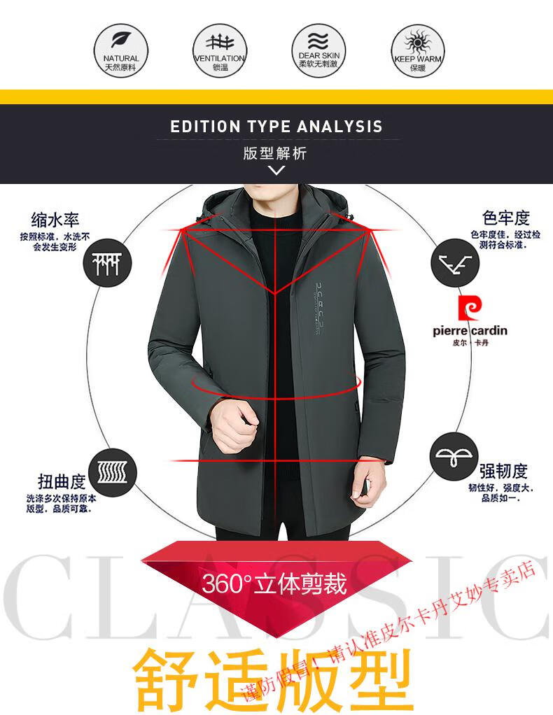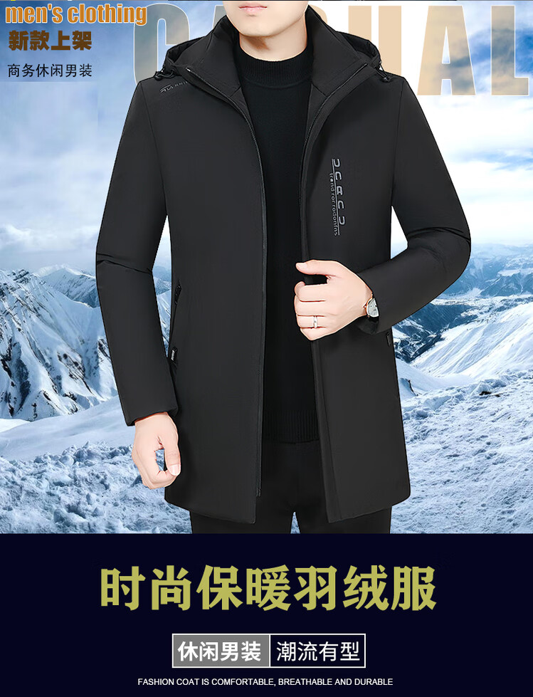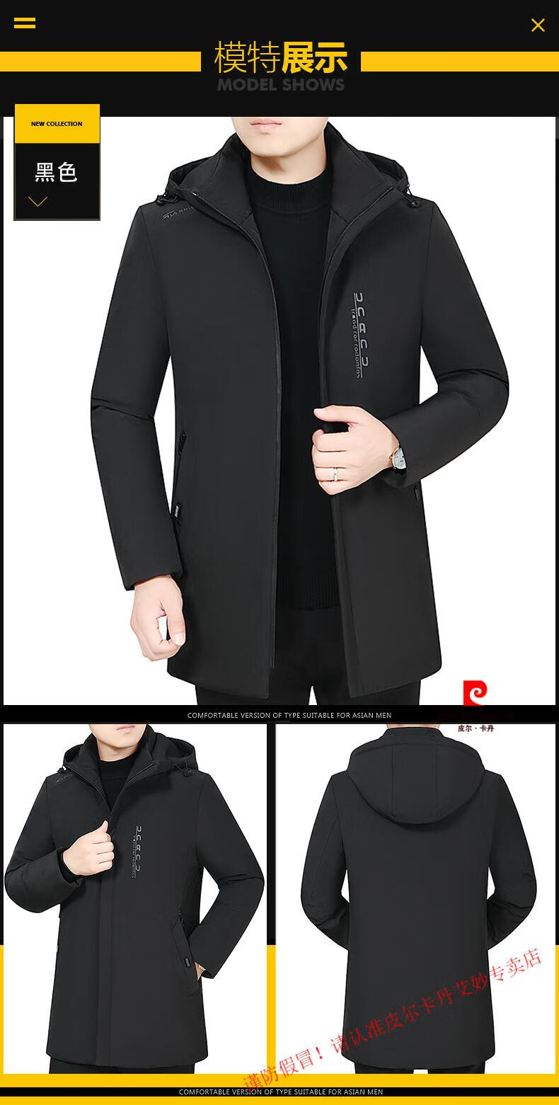 Pierre Cardin (Pierre Cardin) men's new winter down jacket, mid-length, middle-aged, thickened, removable hood, cold-proof and warm, casual dad jacket, black 919 180/2XL recommended 135-150Jin Jin equals 0.5kg