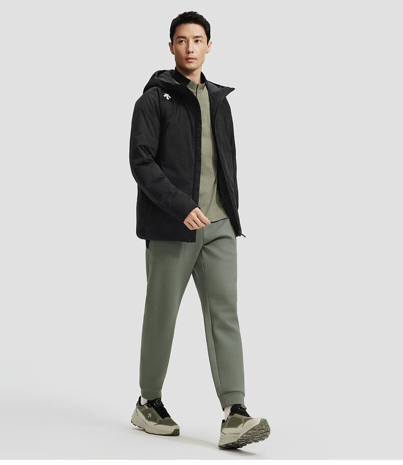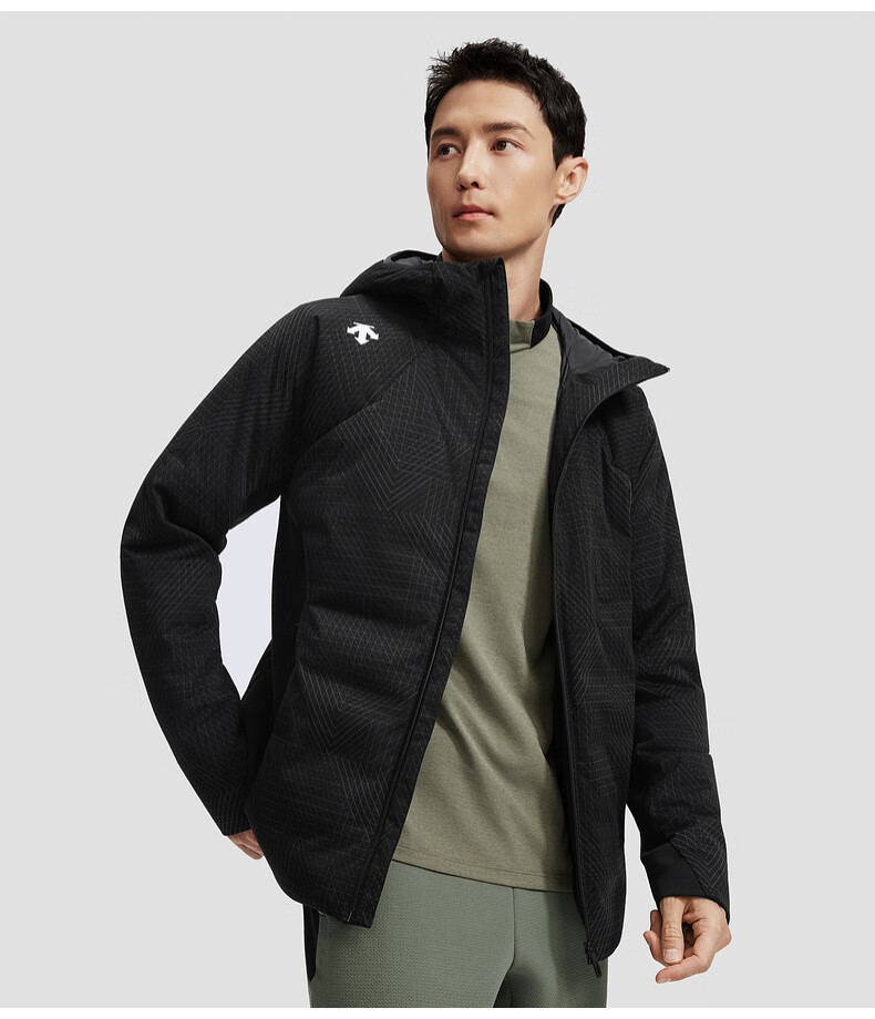 DESCENTE Wu Leis gleicher Stil DESCENTE Disante TRAINING Herren-Daunenjacke mit Anti-Bohring-Samt und kurzer Kapuze, BK-Schwarz, L (175/96A)