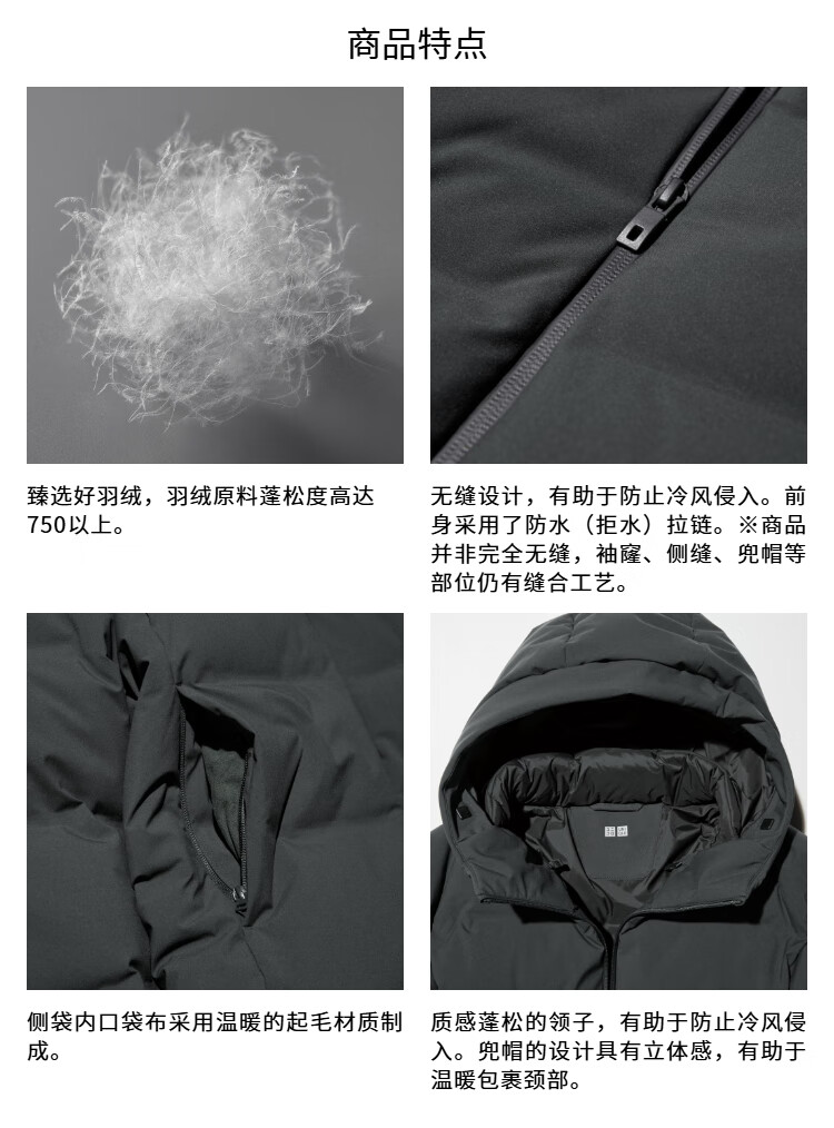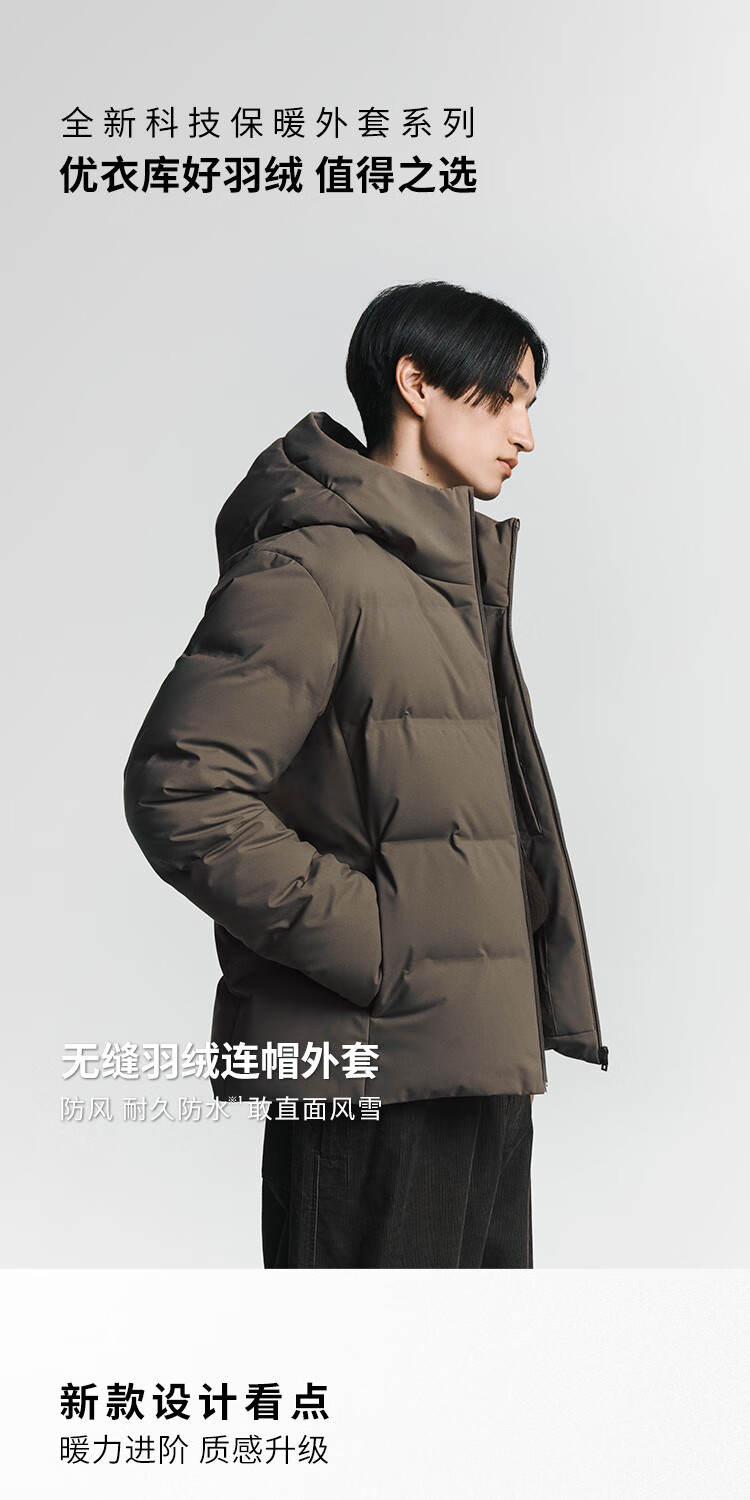 Uniqlo Men's and Women's Seamless Down Hooded Jacket Down Jacket 25 Autumn and Winter New Style 478279 08 Dark Gray M