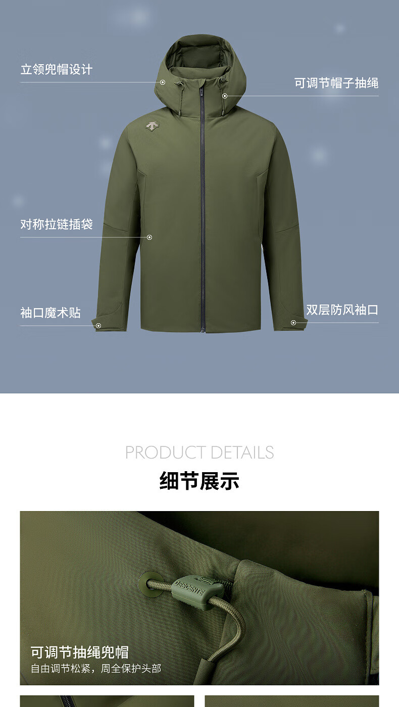 DESCENTE Descente SKI STYLE series sports and casual men's short waterproof and warm down jacket BK-black L (175/96A)