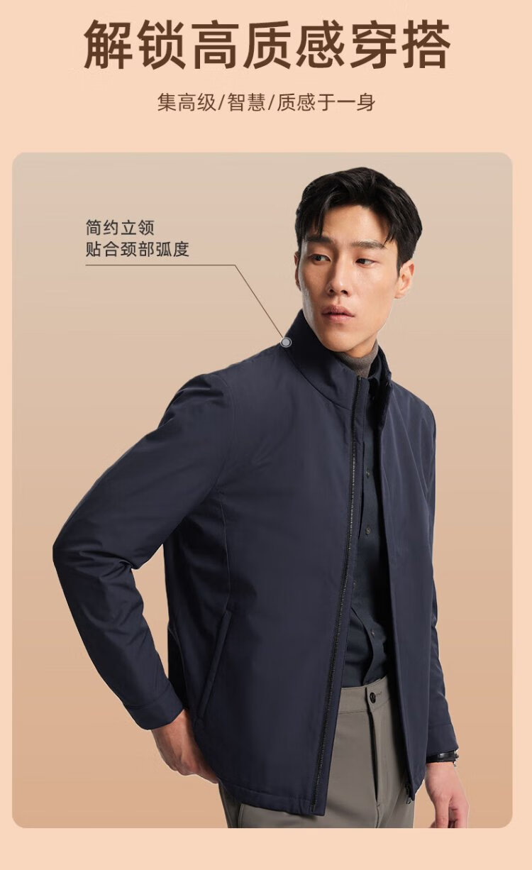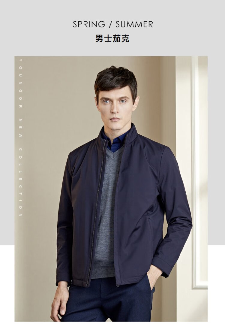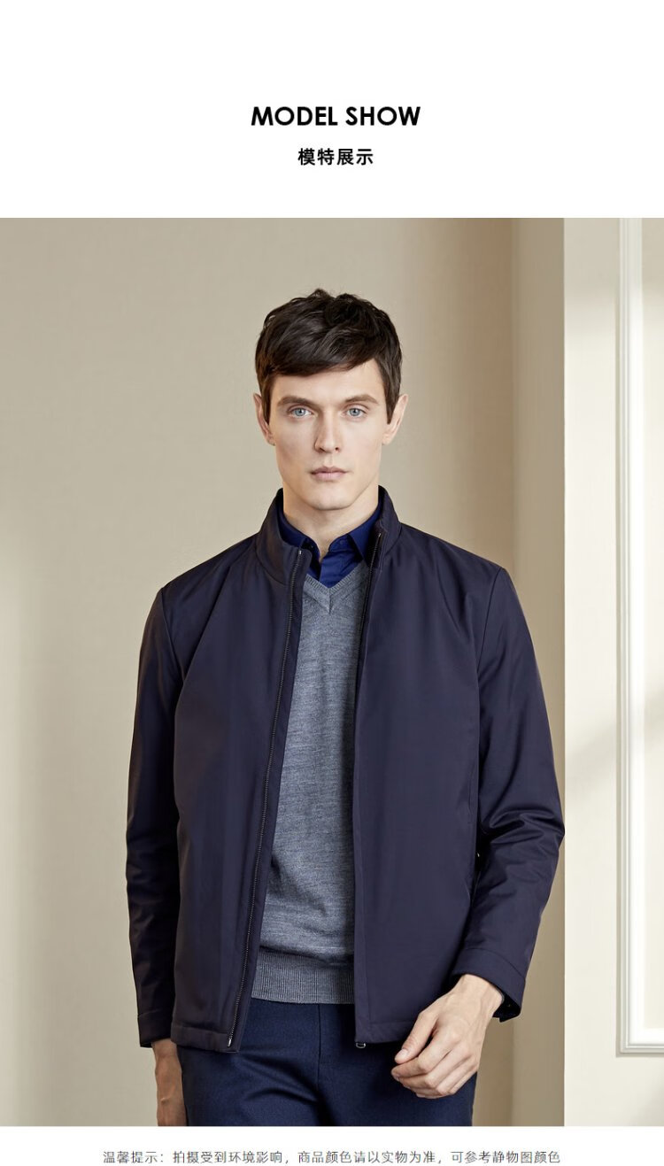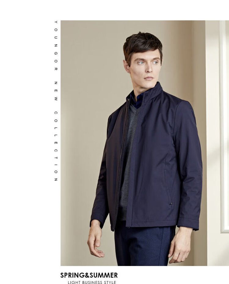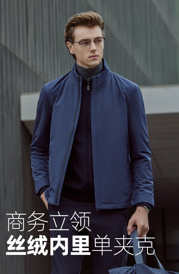 YOUNGOR 25 new velvet lining business commuter windproof short jacket for men, dark blue XL (180/100A)