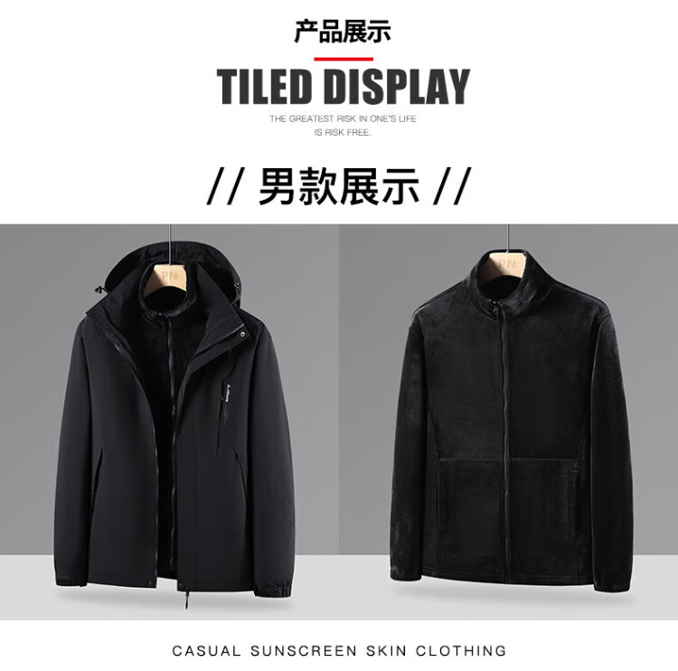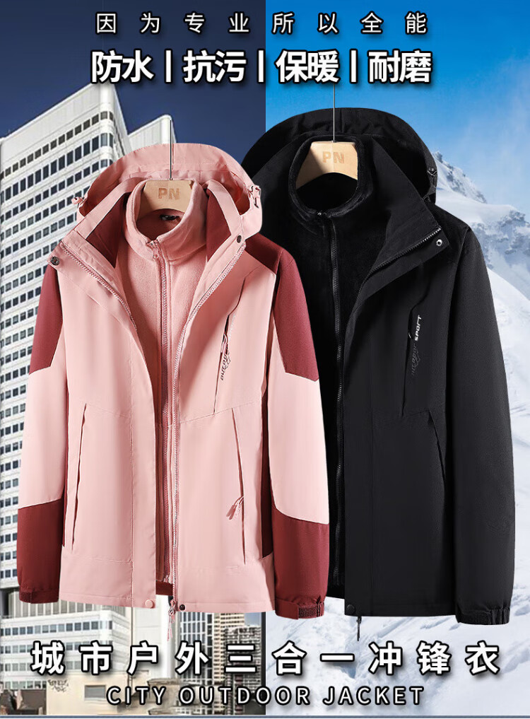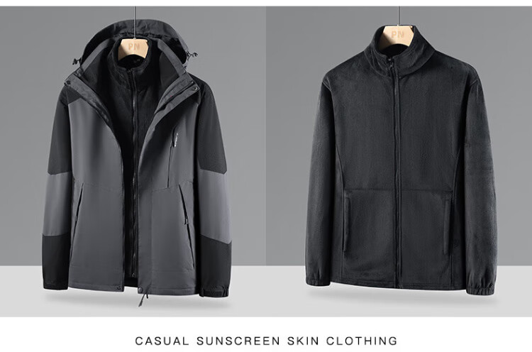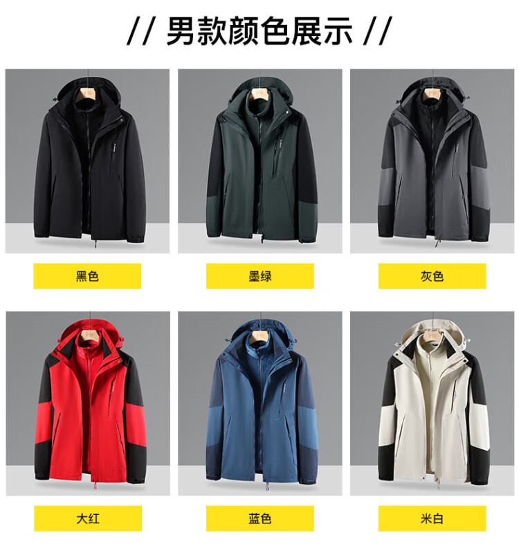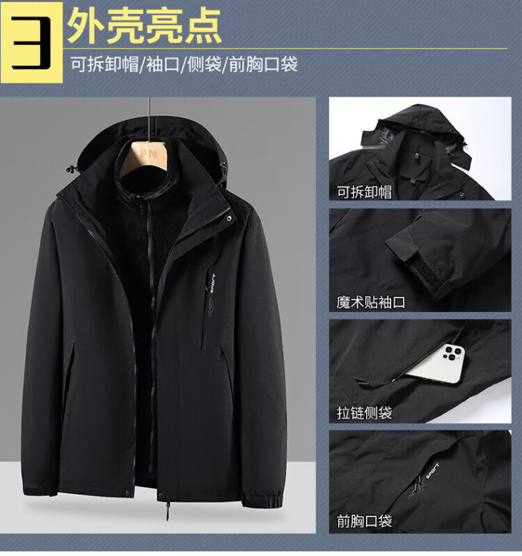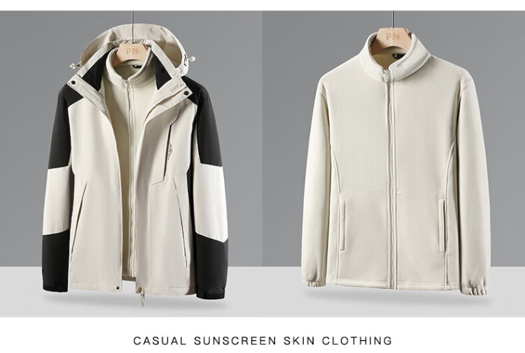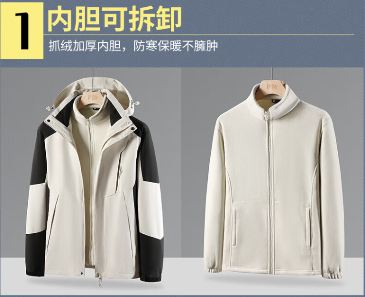 JEEP SPIRIT Jeep Jacket Men's Autumn and Winter Jacket Winter Jacket Outdoor Three-in-One Hooded Mountaineering Suit Off-White XL