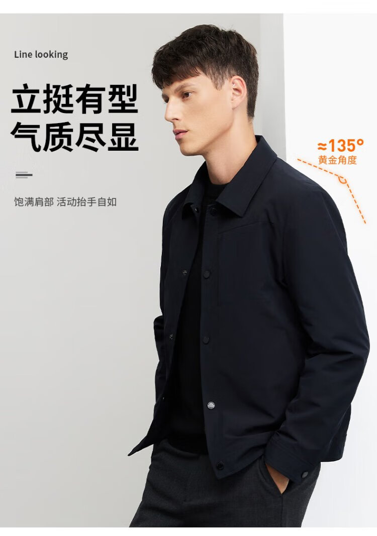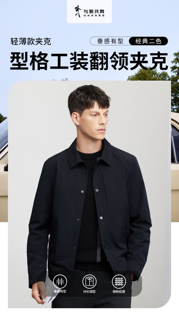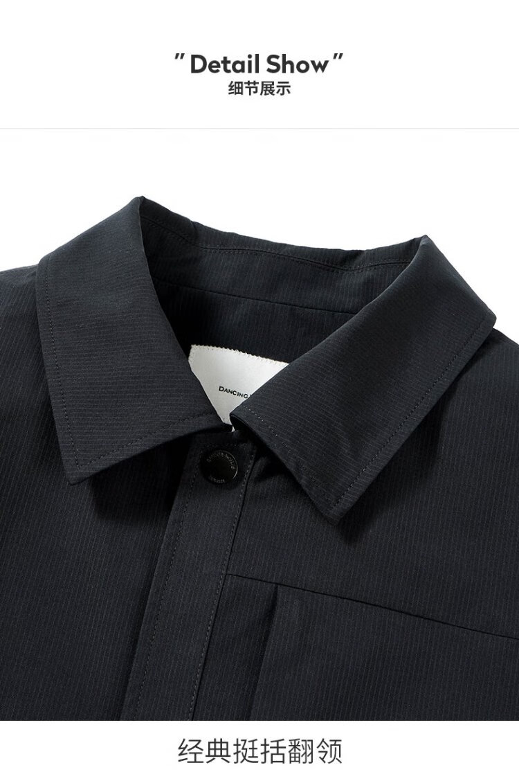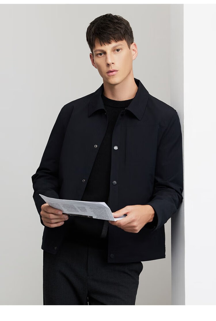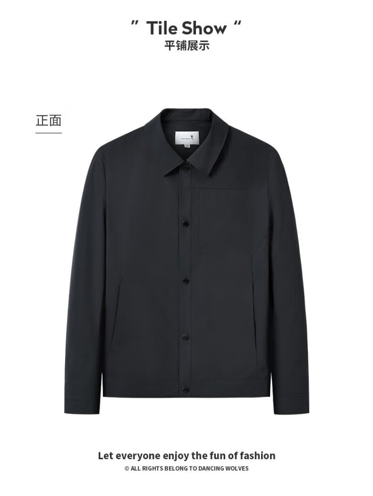 Dances with Wolves Exquisite Lined Lapel Work Jacket Men's High Density Windproof Jacket Versatile Jacket 001 Black 175