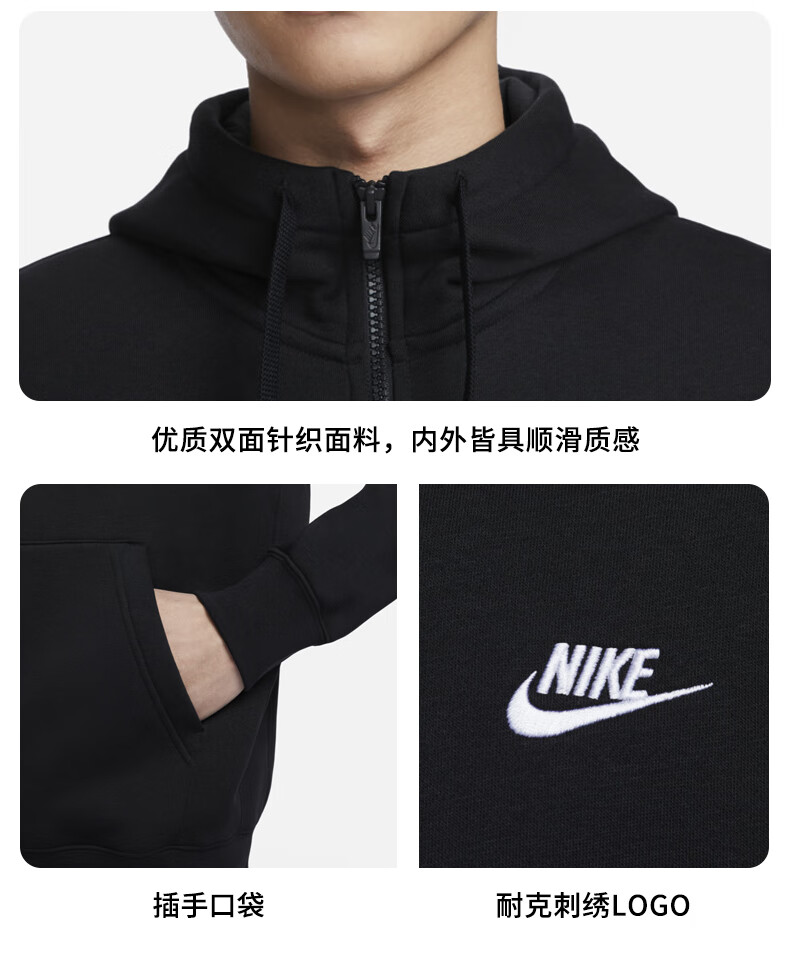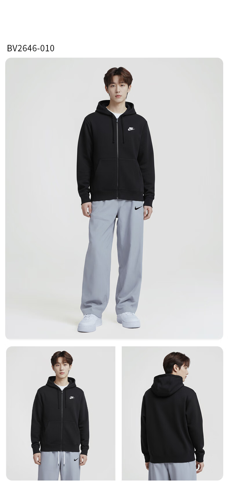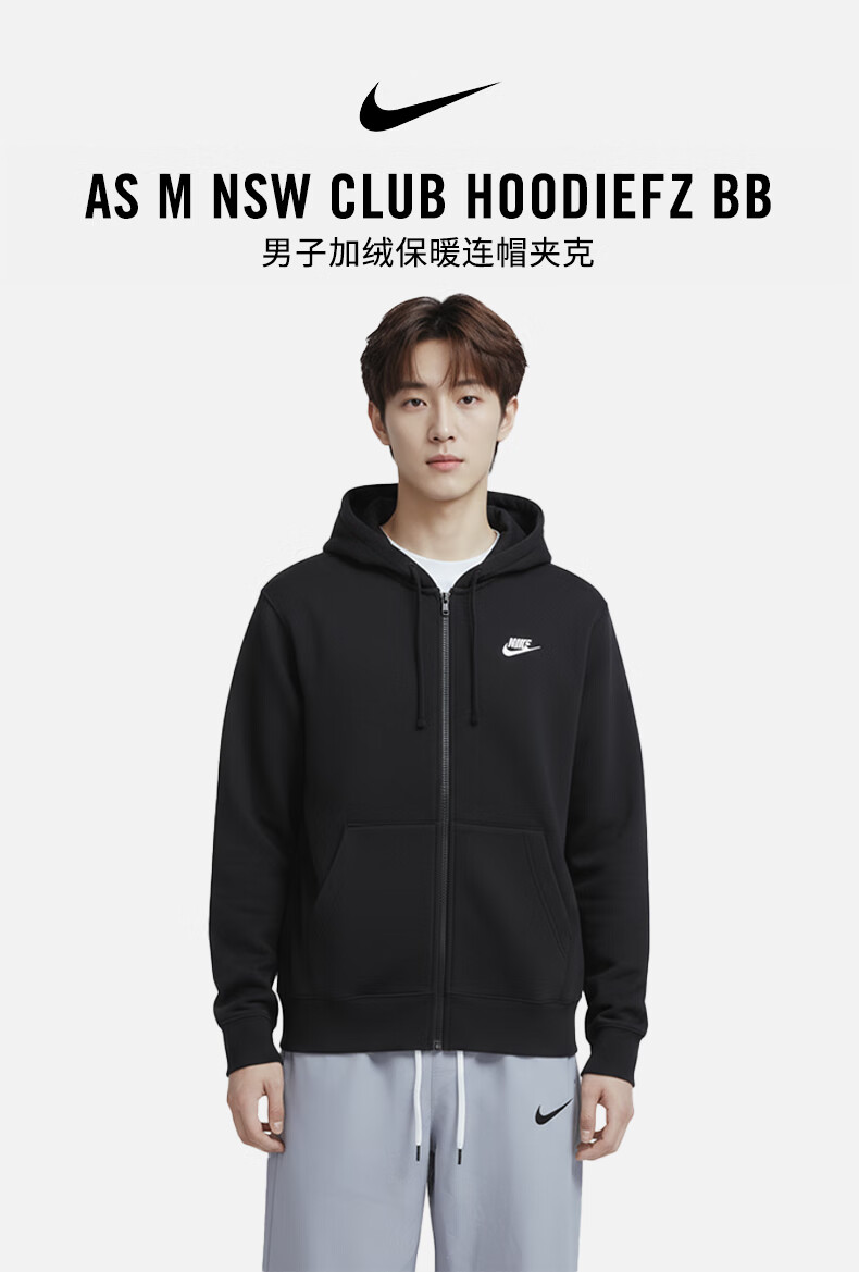 Nike (NIKE) men's winter hooded jacket with velvet to keep warm, casual sports BV2646-010 black XXL