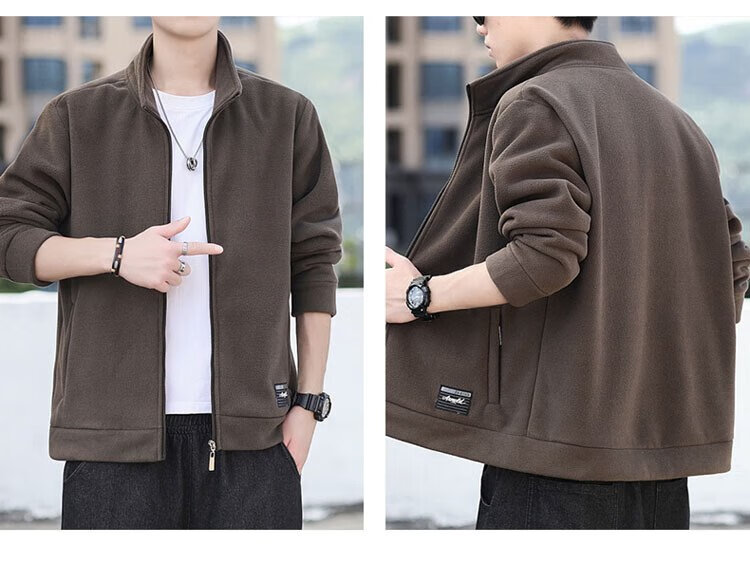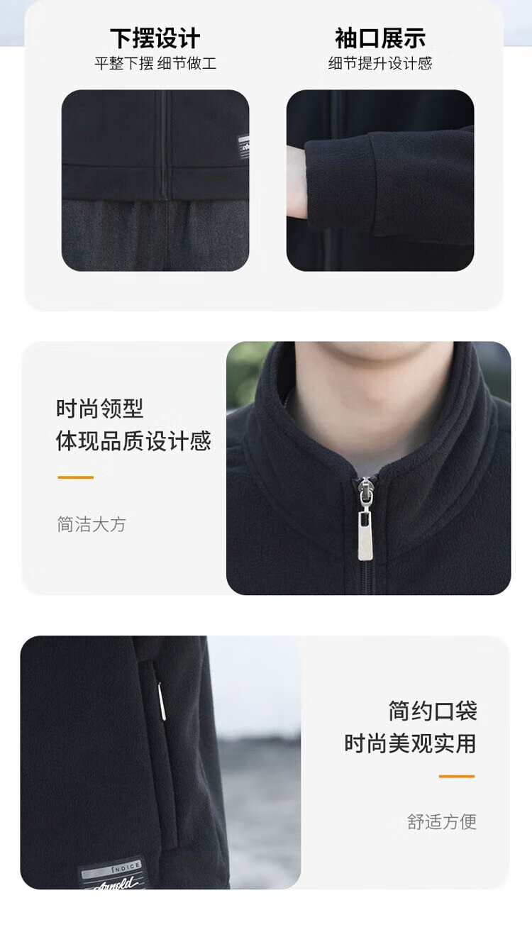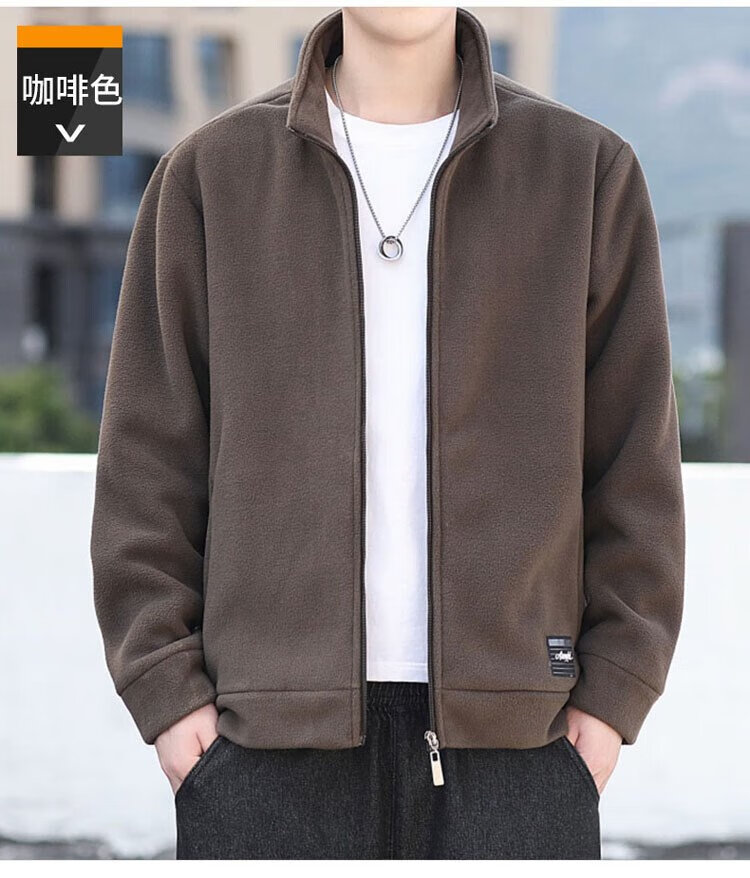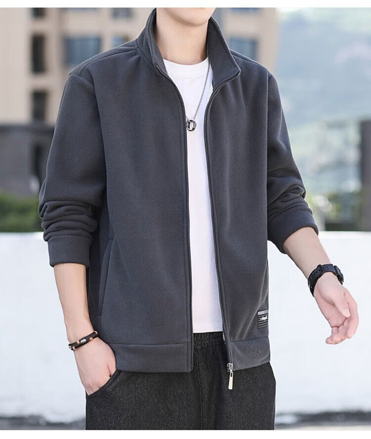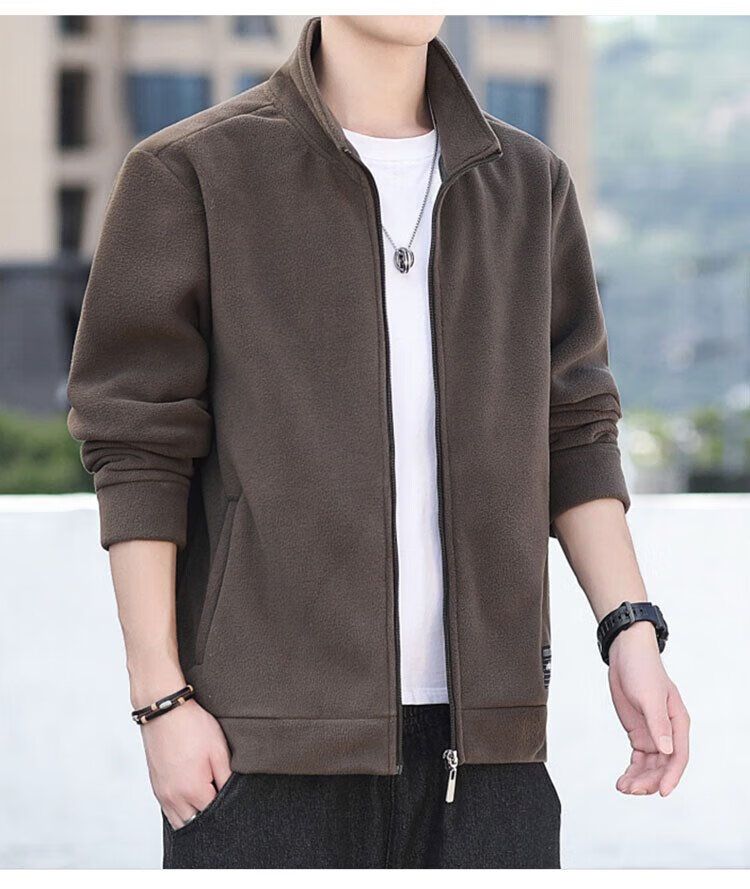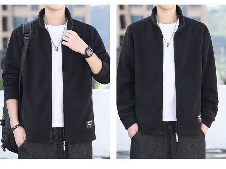 PLAYBOY Jacket Men's Jacket Men's Autumn and Winter Stand Collar Polar Fleece Loose Casual Top Black XL