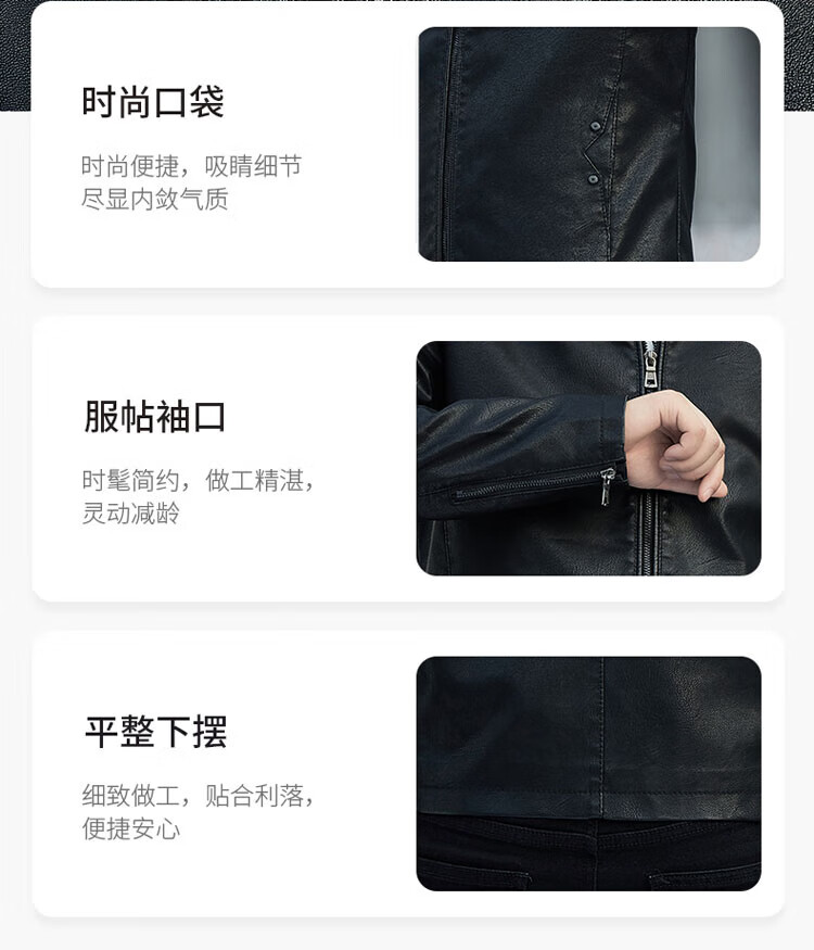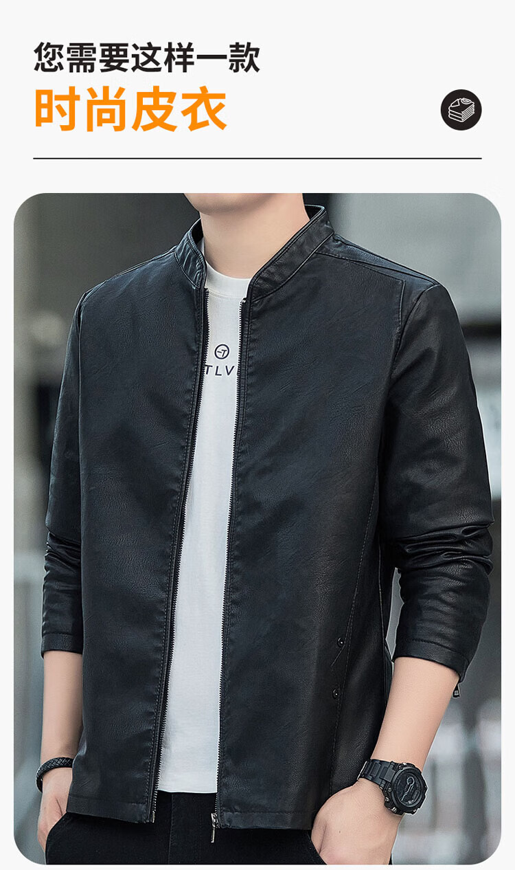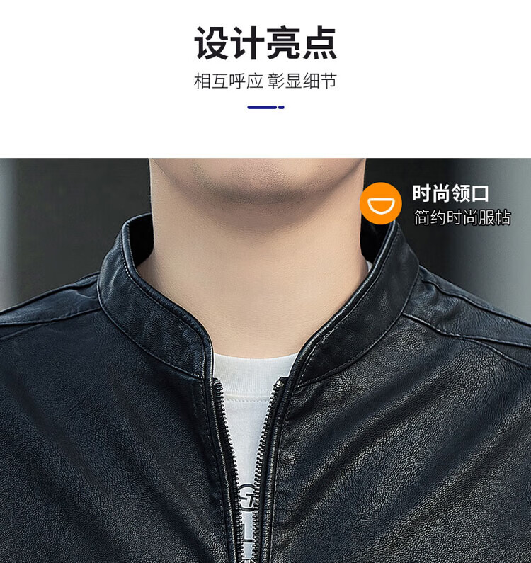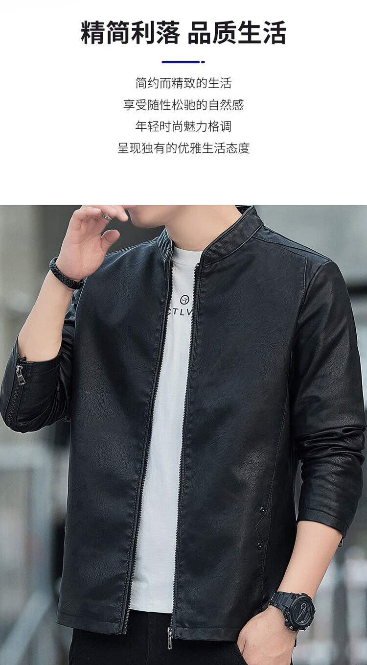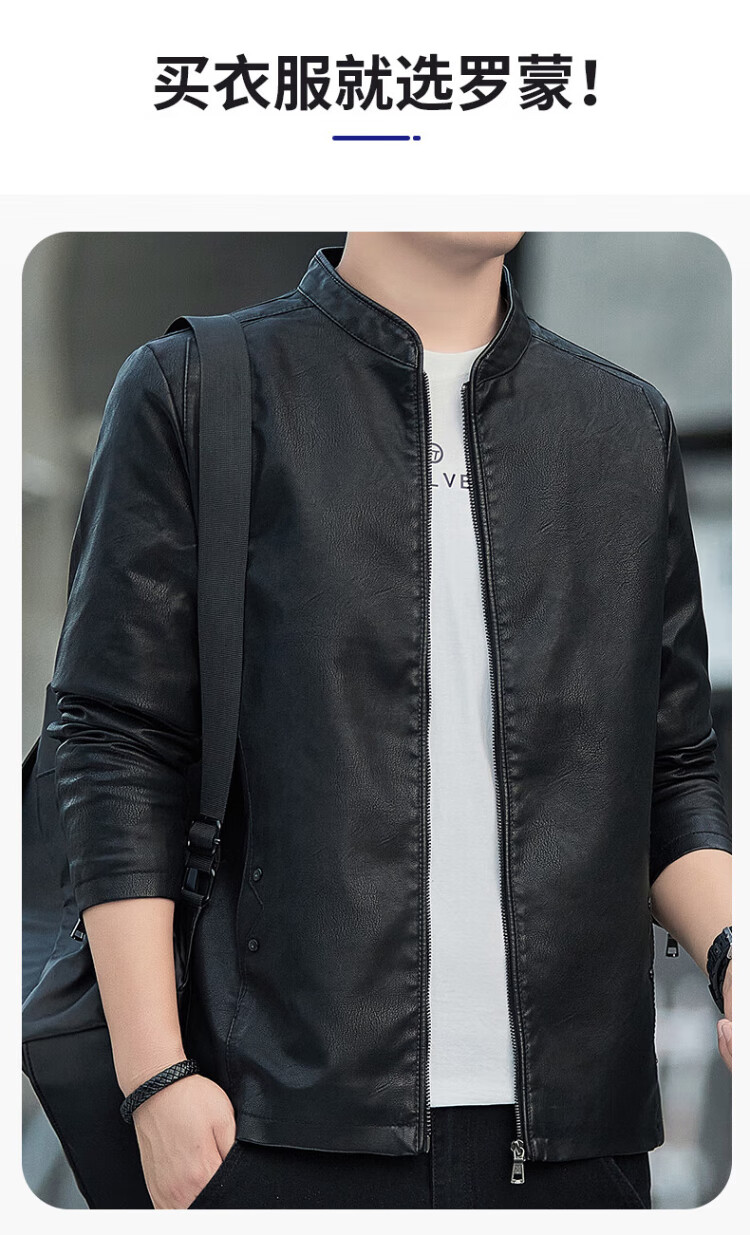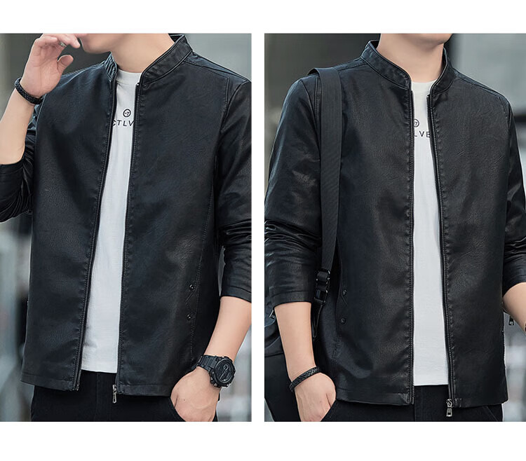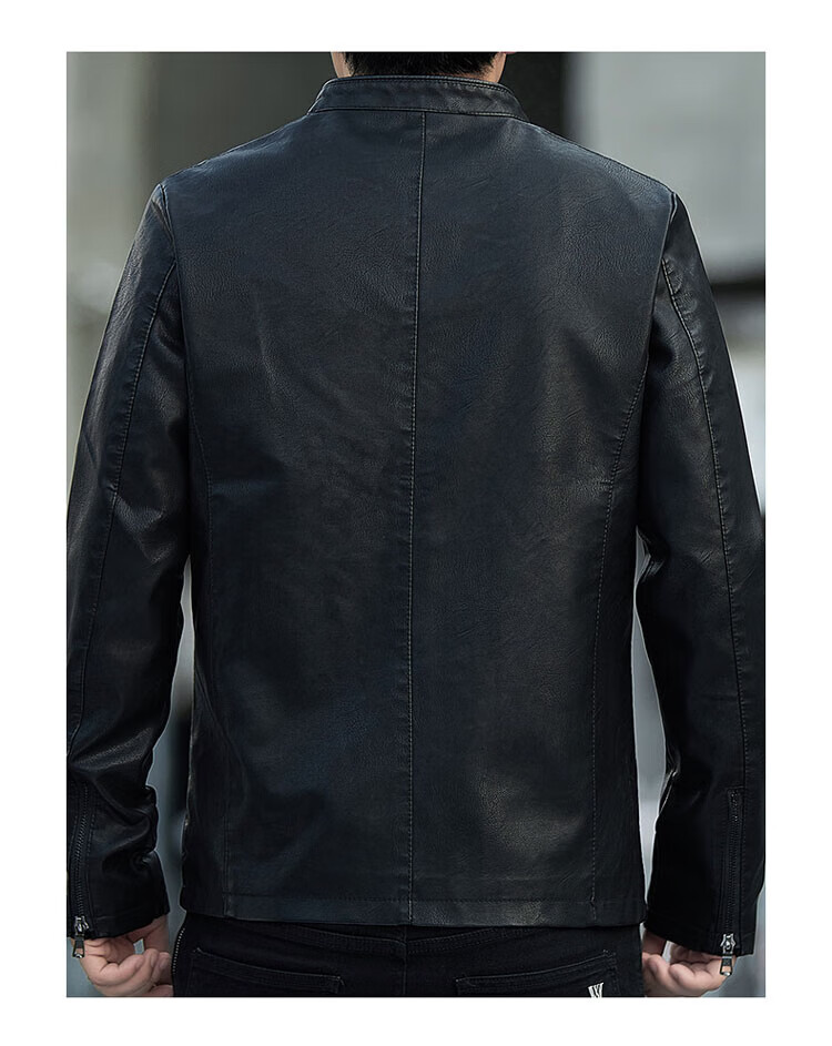 ROMON Jacket Leather Men's Autumn and Winter Jacket Men's Casual Versatile Motorcycle Men's Top Black 2XL