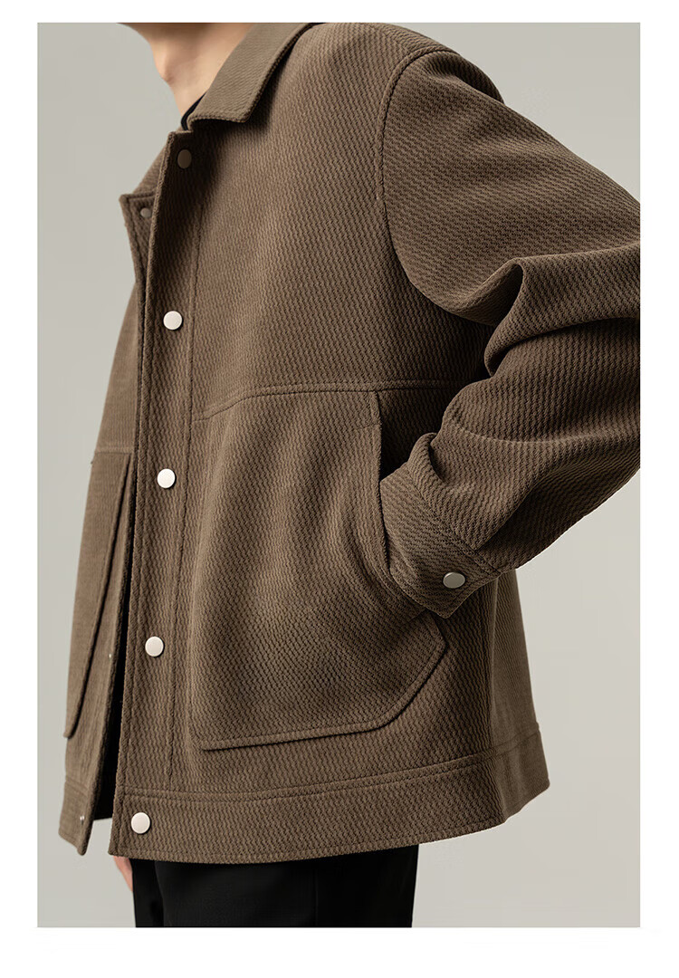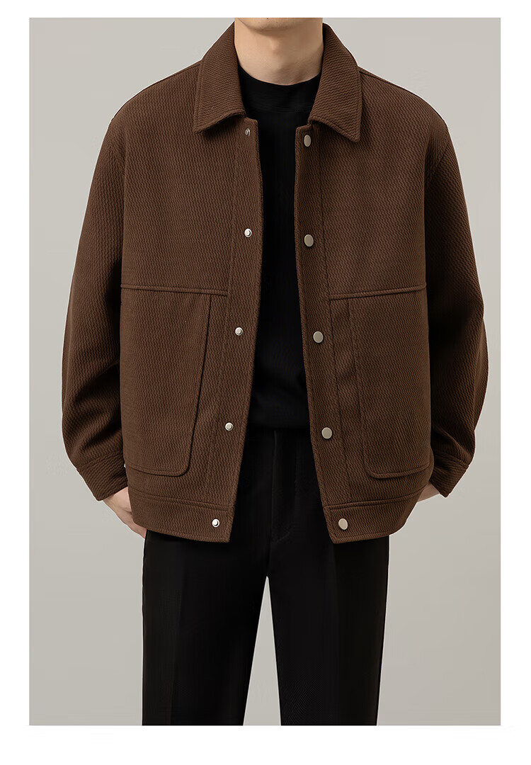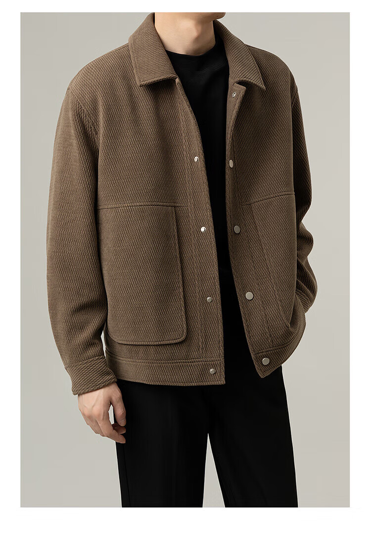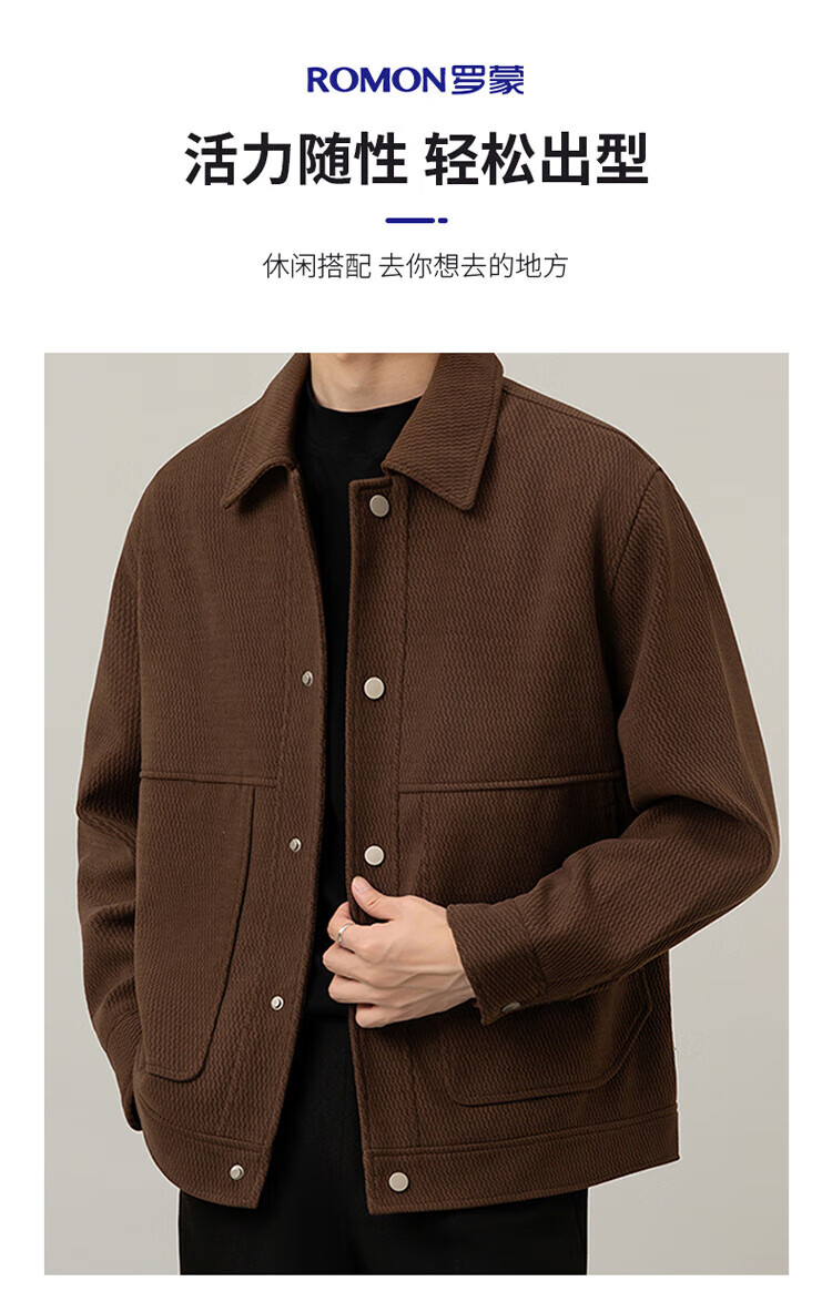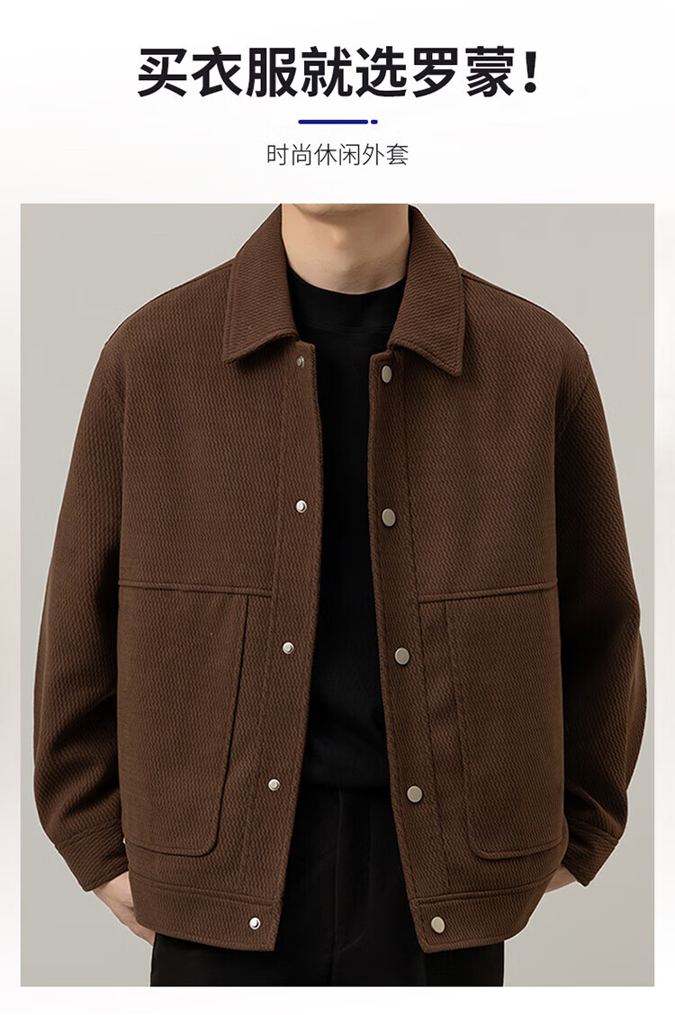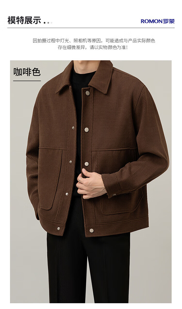 ROMON Jacket Men's Autumn and Winter Trendy Casual Loose Lapel Jacket Men's Versatile Clothes Men's Brown XL