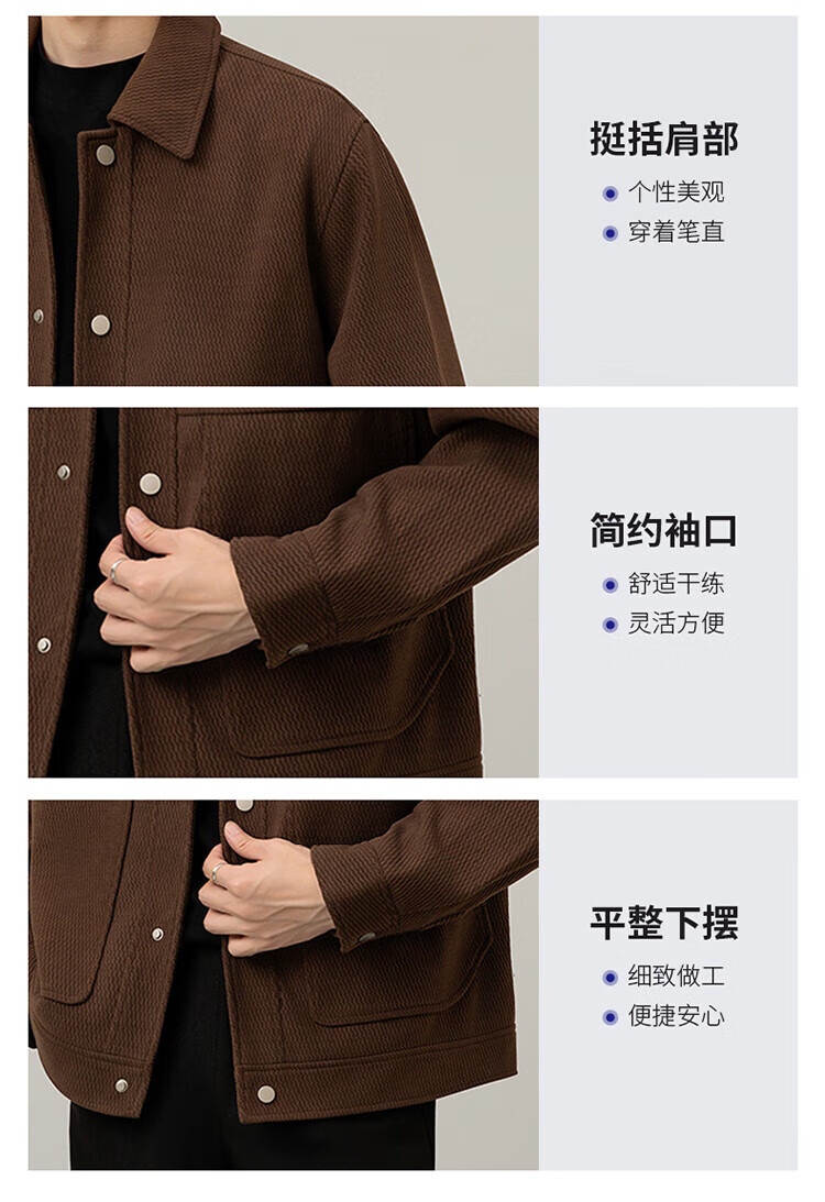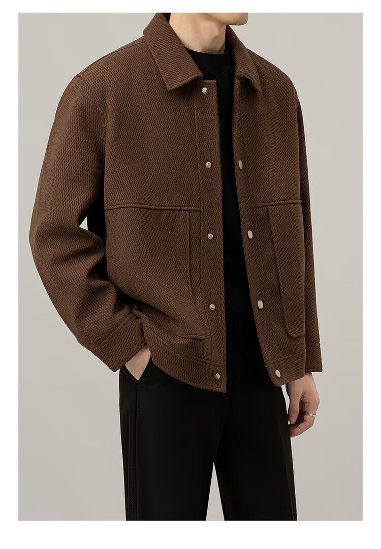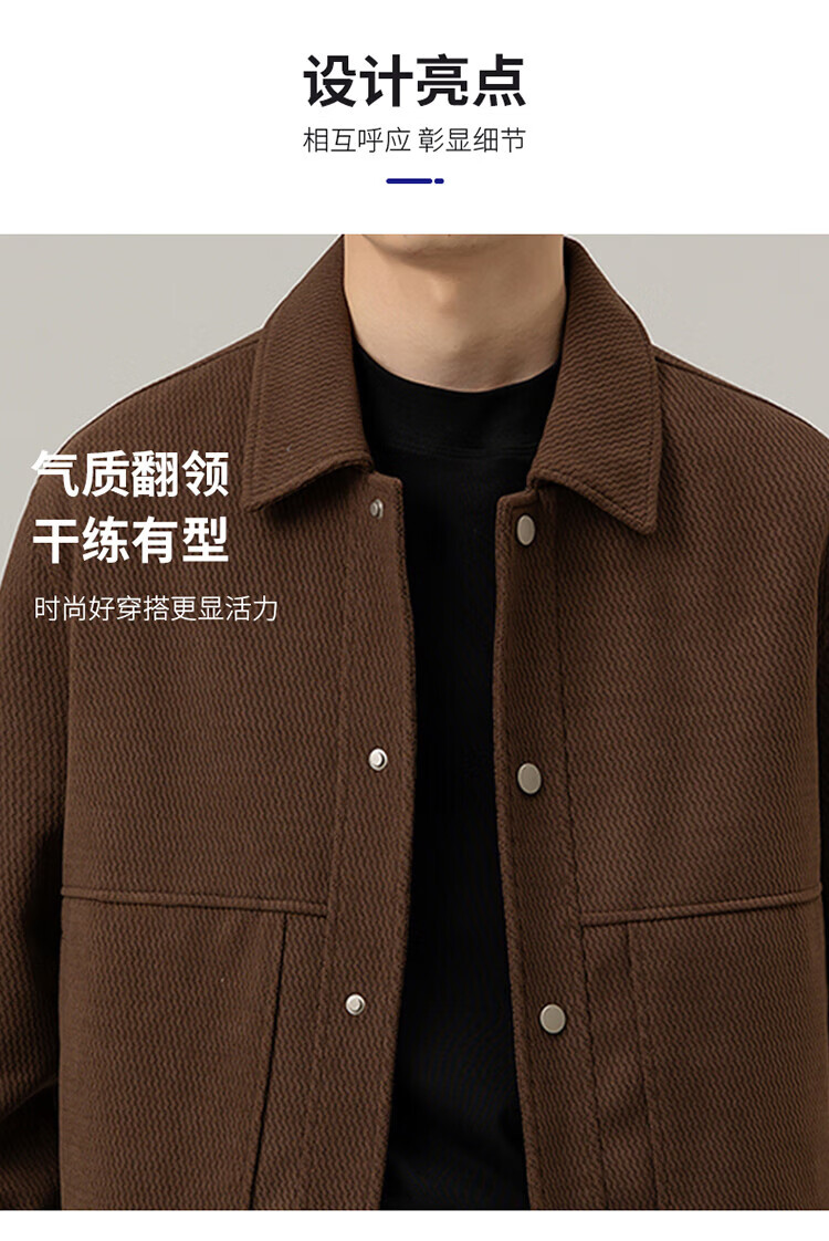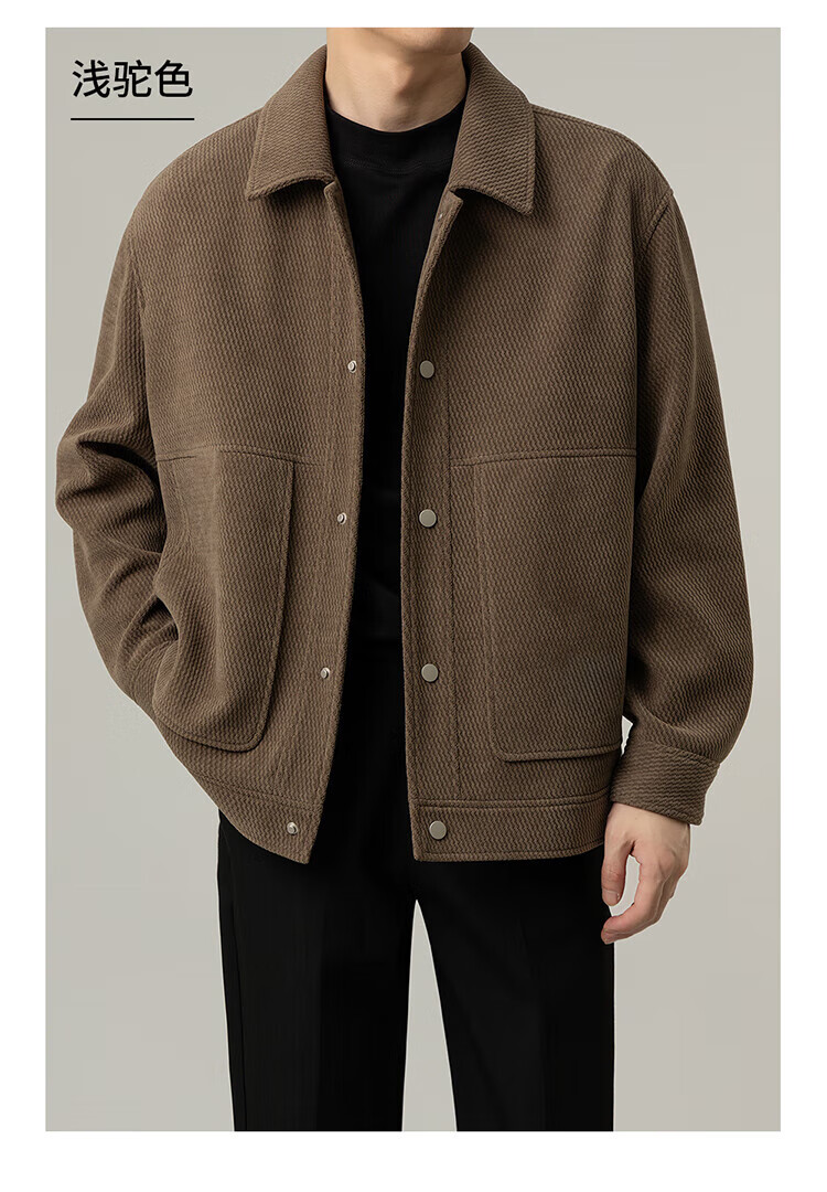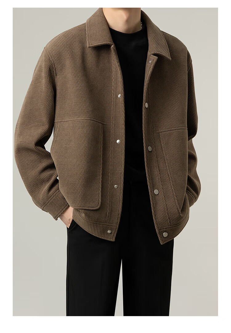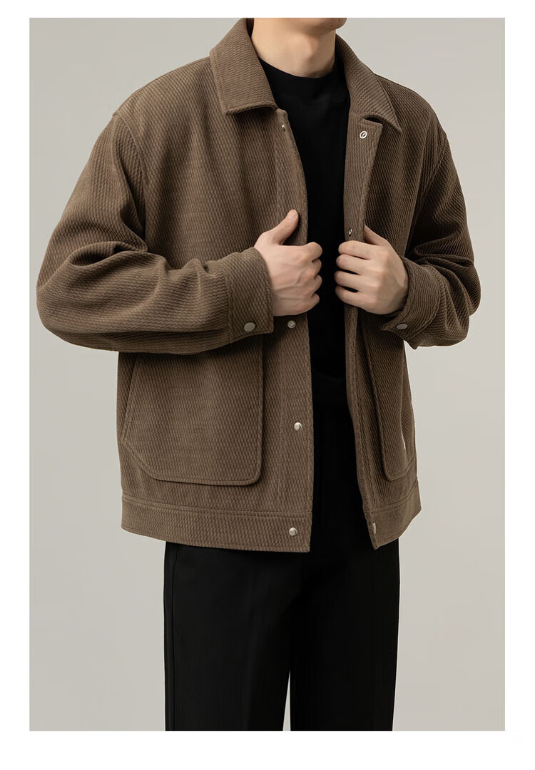 ROMON Jacket Men's Autumn and Winter Trendy Casual Loose Lapel Jacket Men's Versatile Clothes Men's Brown XL