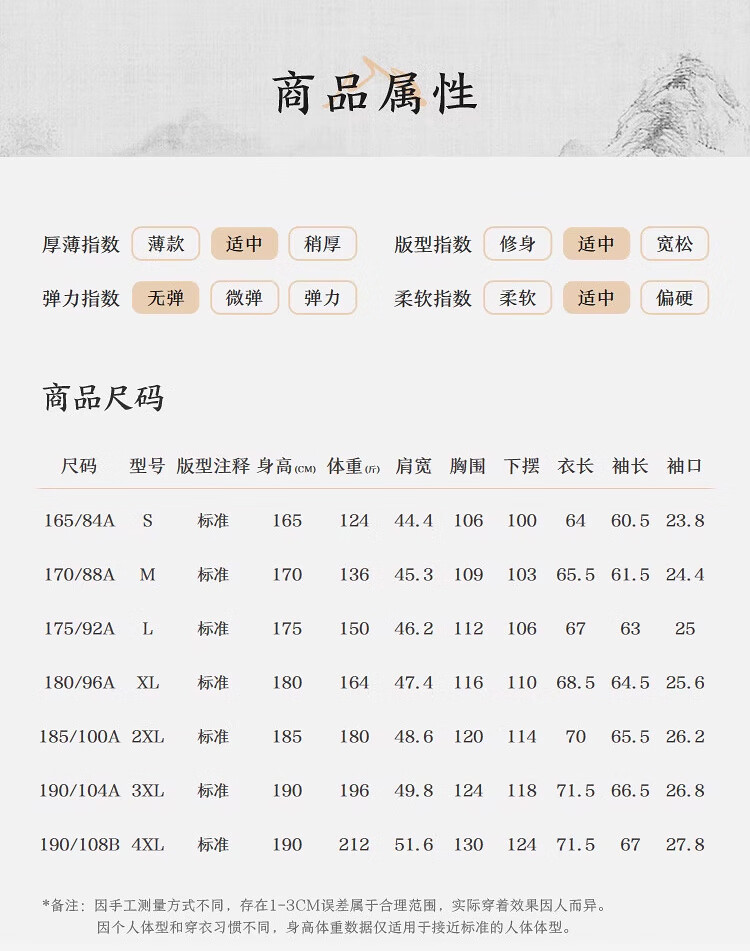 China (cm) 165 / 88-90 170 / 96-98 175 / 108-110 180 / 118-122 185 / 126-130