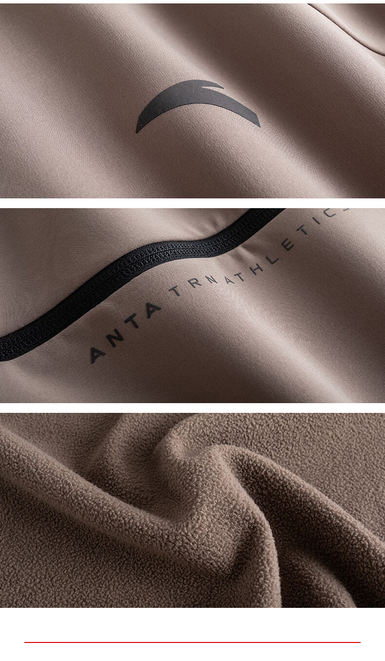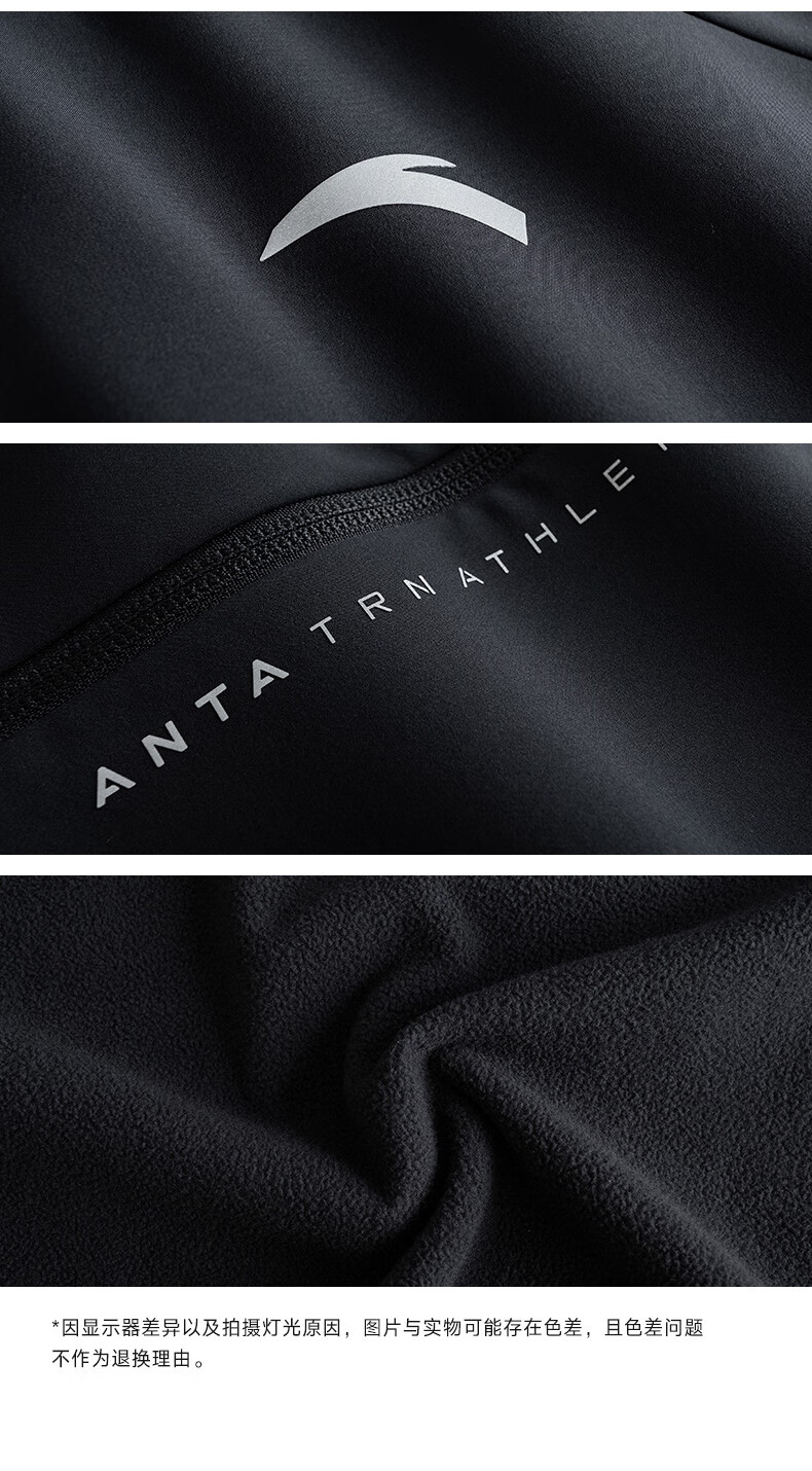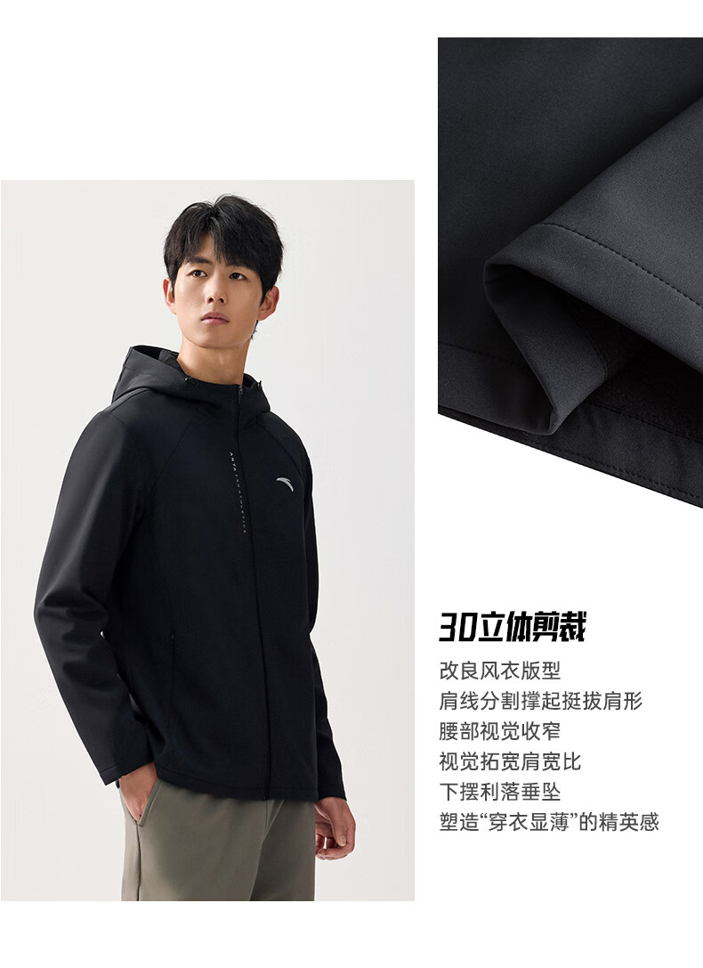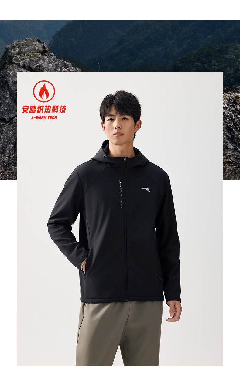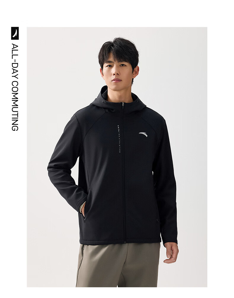 ANTA Water-Repellent and Velvet Warm Jacket Men's Autumn and Winter Woven Hooded Commuting Running Sports Jacket Clothes Water-Repellent and Velvet Warm Basic Black-5 L Men 175