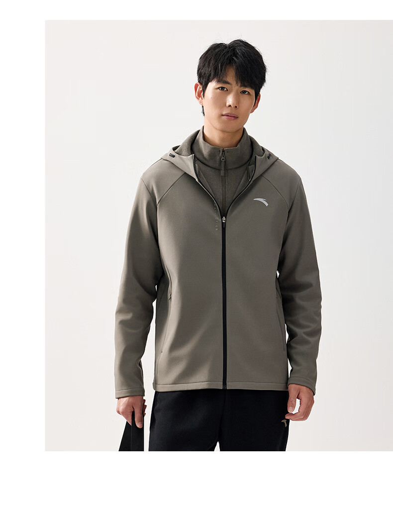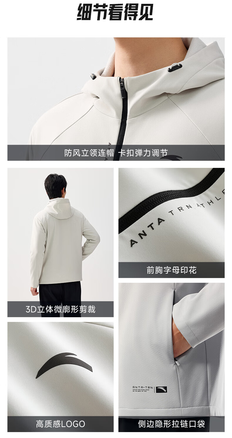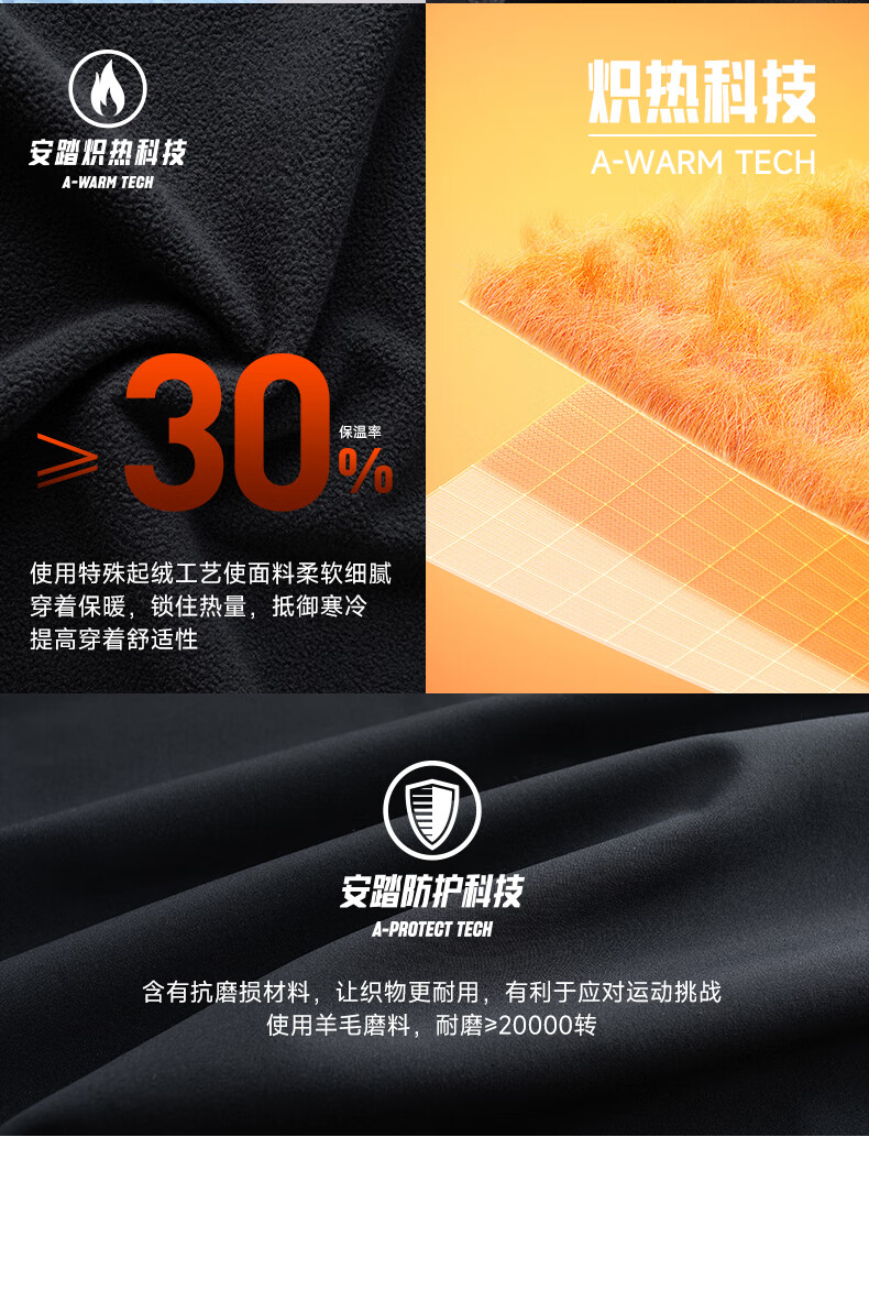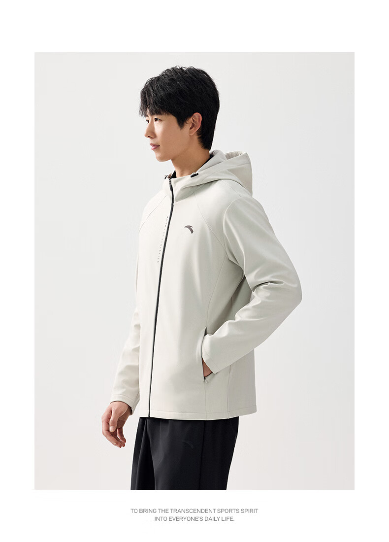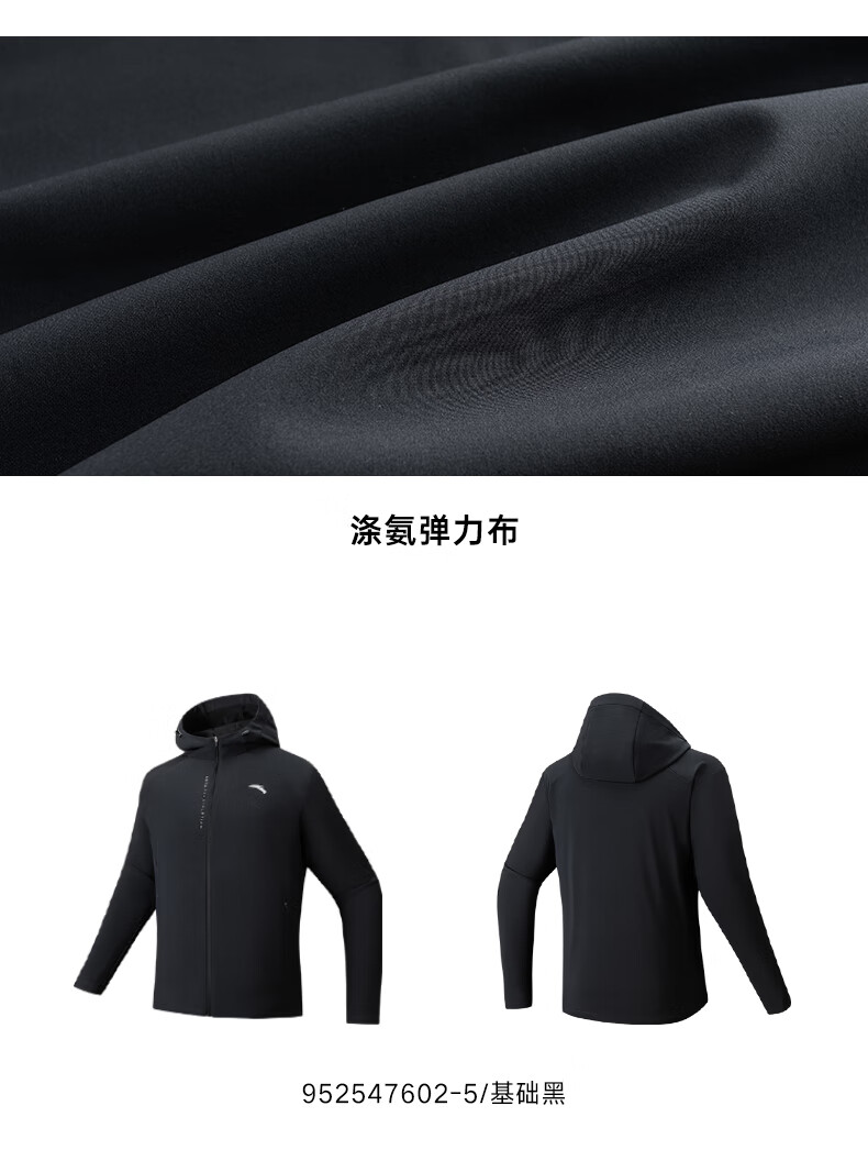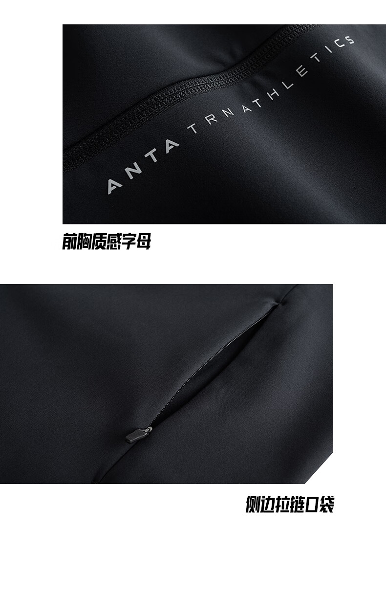 ANTA Water-Repellent and Velvet Warm Jacket Men's Autumn and Winter Woven Hooded Commuting Running Sports Jacket Clothes Water-Repellent and Velvet Warm Basic Black-5 L Men 175