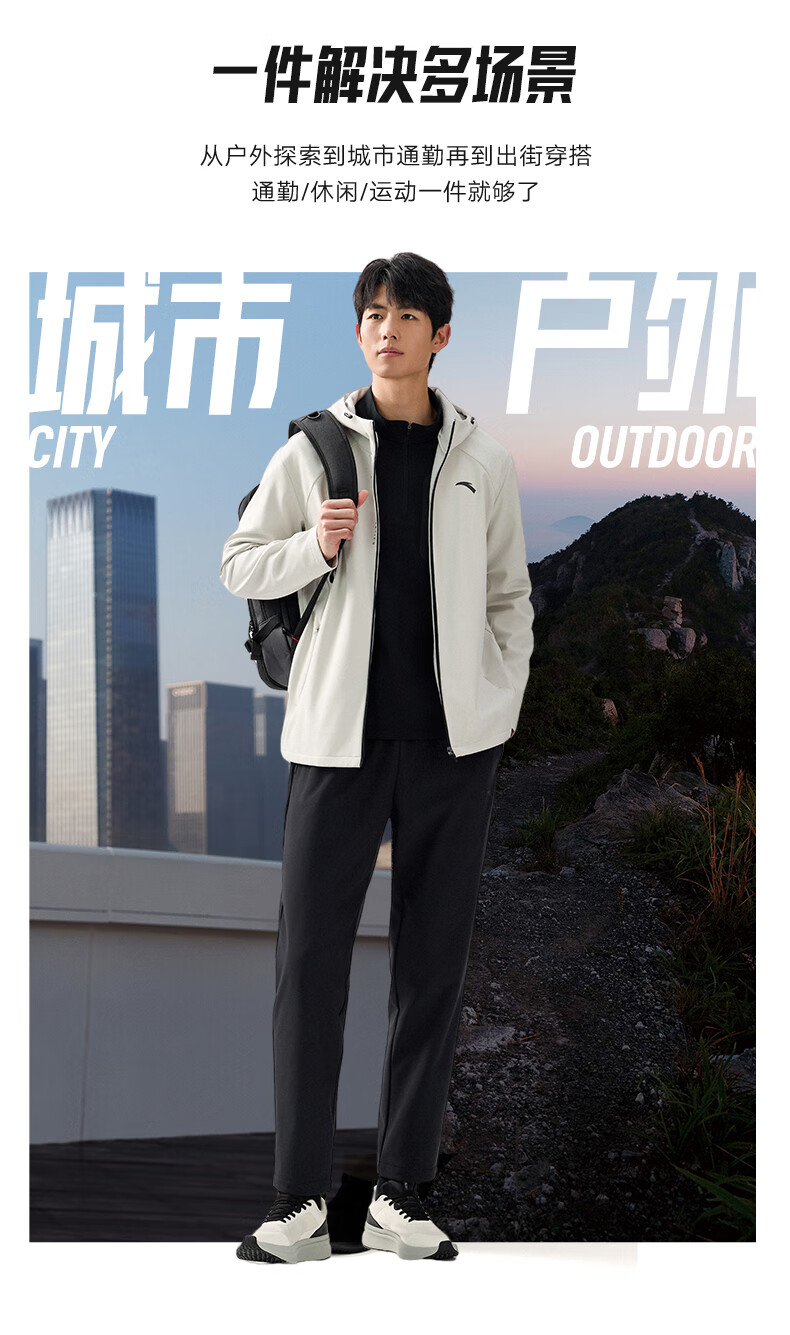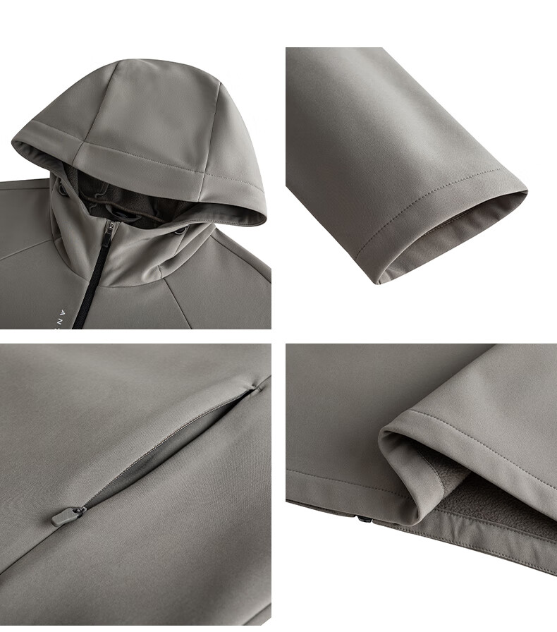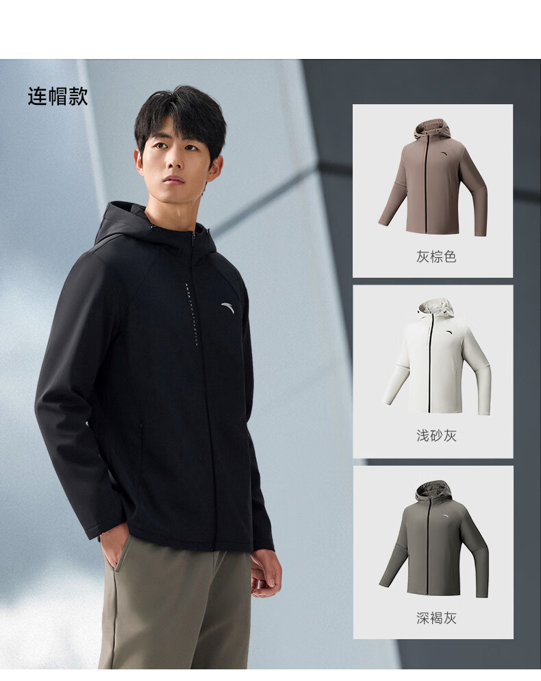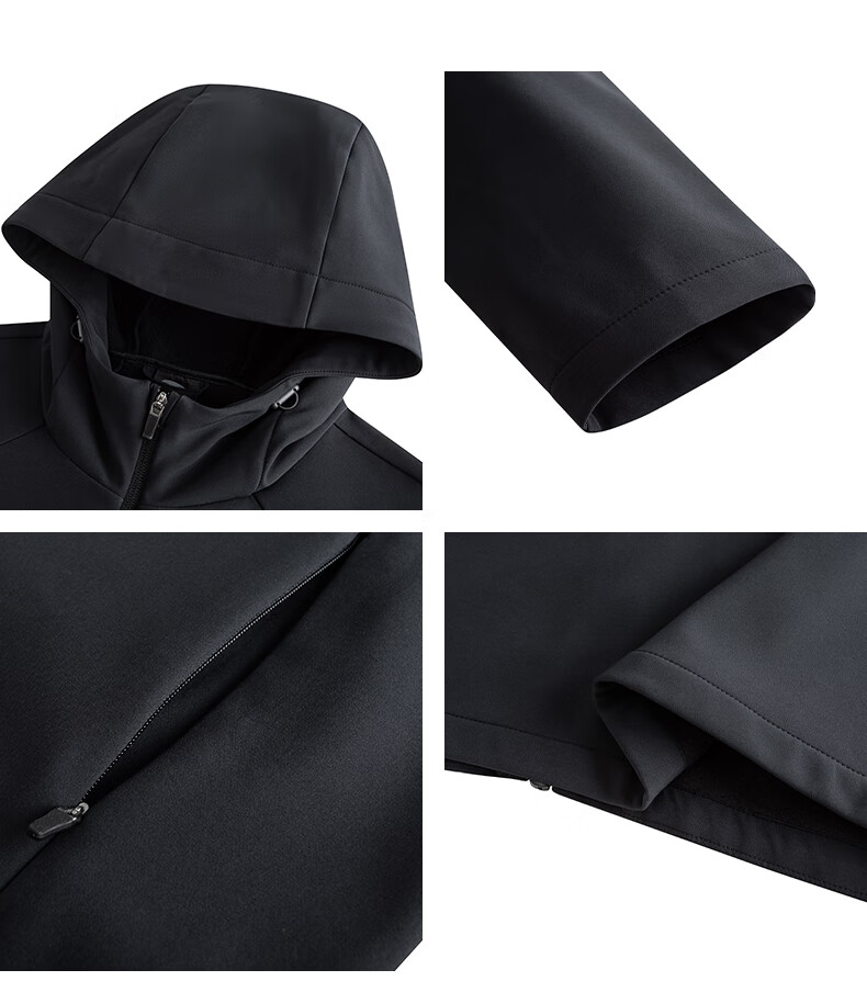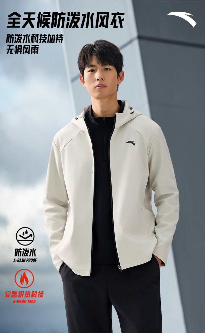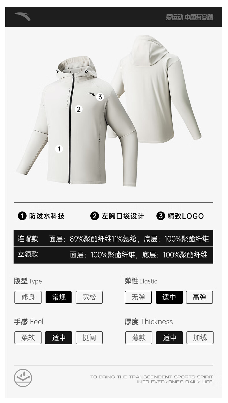 ANTA Water-Repellent and Velvet Warm Jacket Men's Autumn and Winter Woven Hooded Commuting Running Sports Jacket Clothes Water-Repellent and Velvet Warm Basic Black-5 L Men 175
