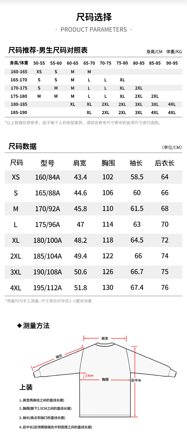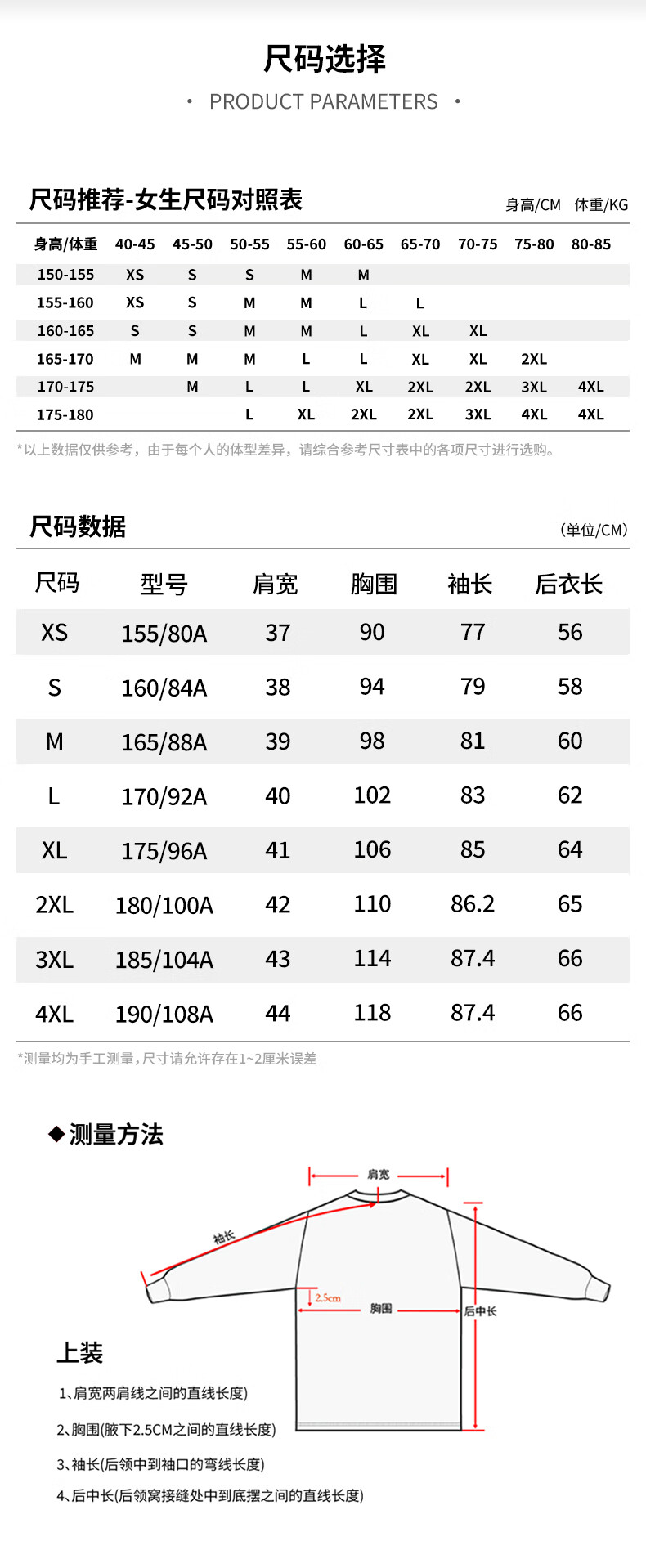 China (cm) 160-165/84-86 165-170 / 88-90 167-172 / 92-96 168-173 / 98-102 170-176 / 106-110