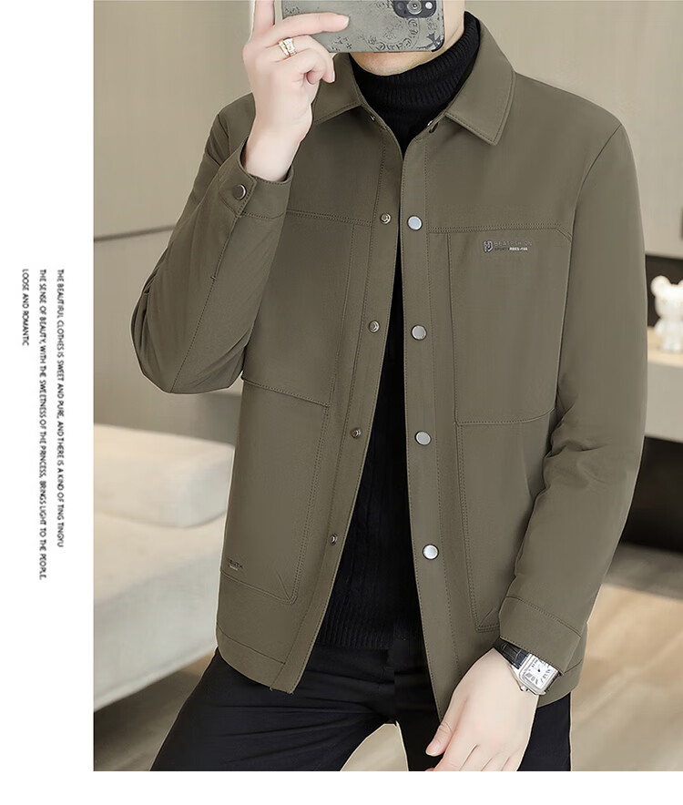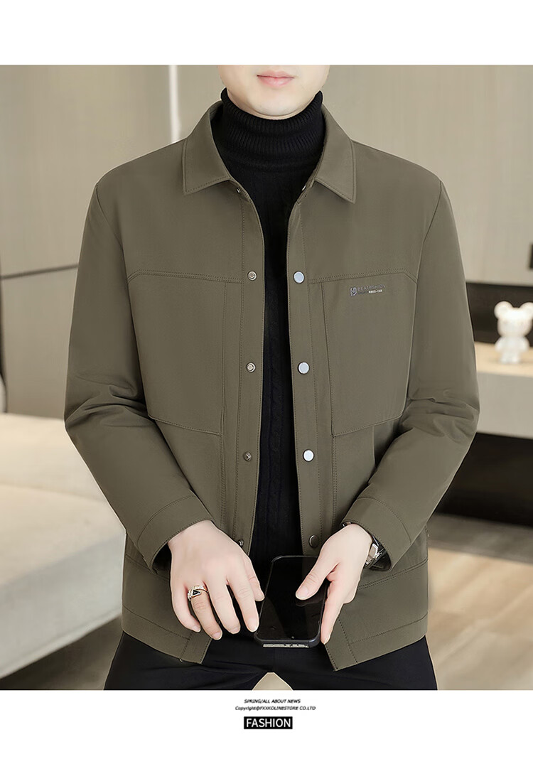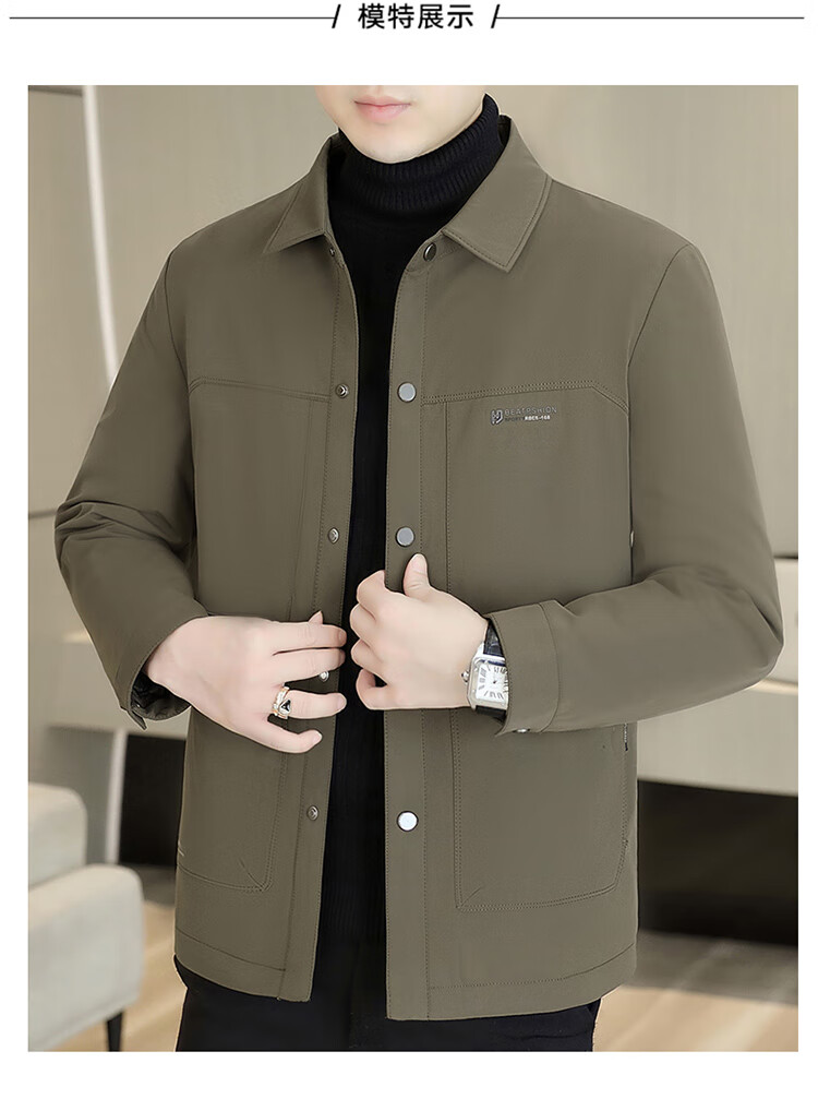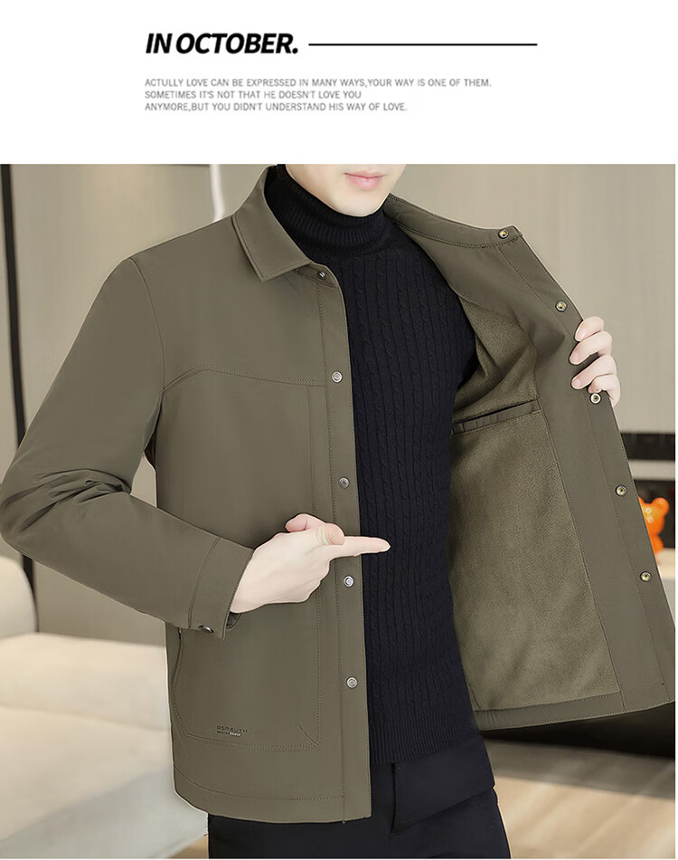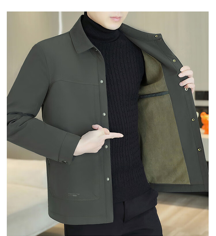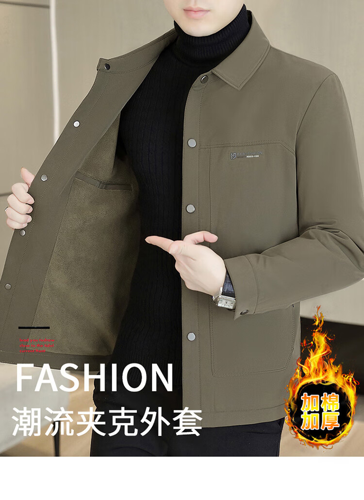 Hengyuanxiang Autumn and Winter Jacket Men's 2025 New Velvet Thickened Lapel Jacket Men's Casual High-end Warm and Windproof Men's Khaki 2116 2XL (145-160Jin Jin equals 0.5kg)
