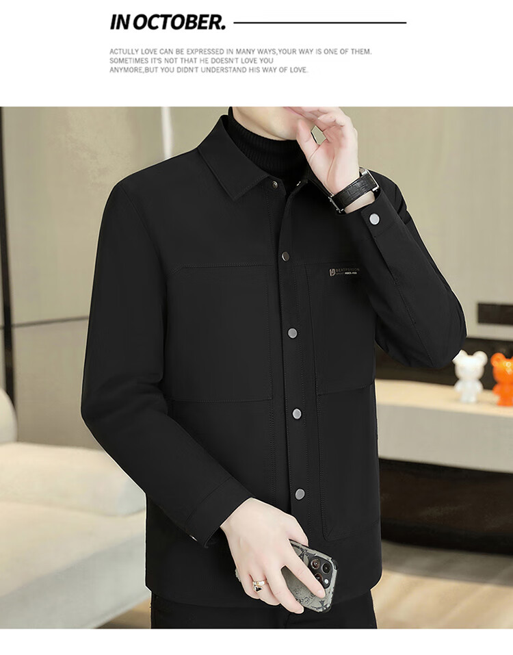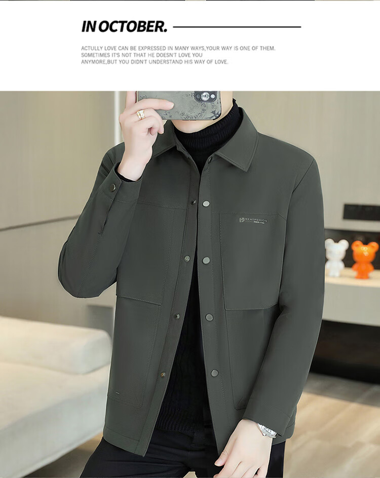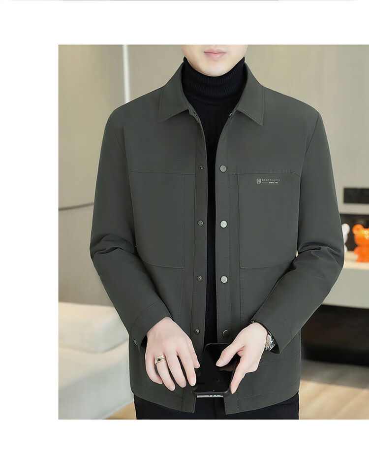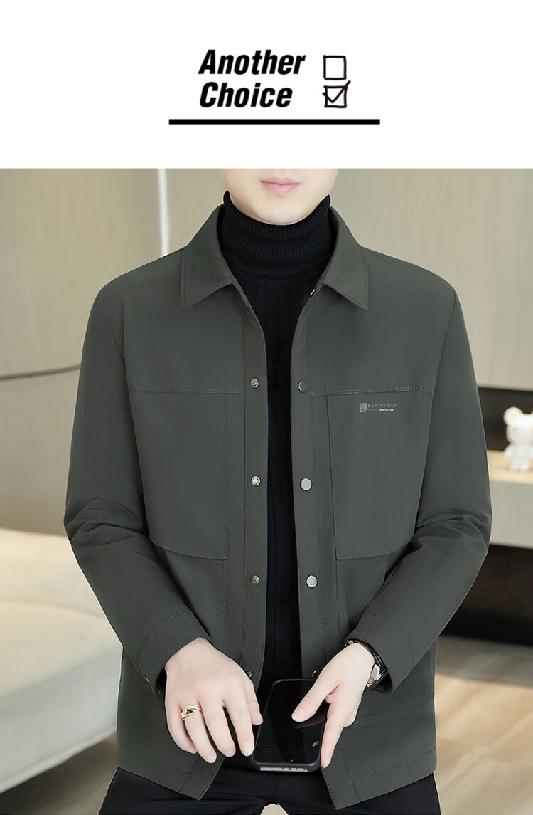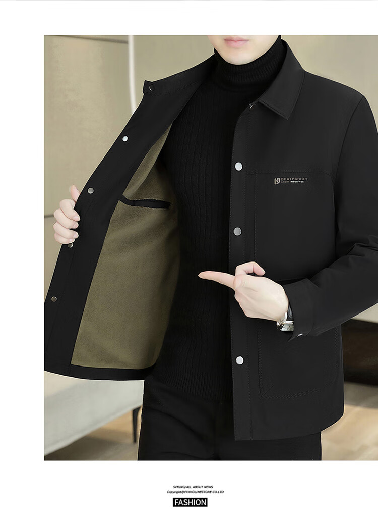 Hengyuanxiang Autumn and Winter Jacket Men's 2025 New Velvet Thickened Lapel Jacket Men's Casual High-end Warm and Windproof Men's Khaki 2116 2XL (145-160Jin Jin equals 0.5kg)