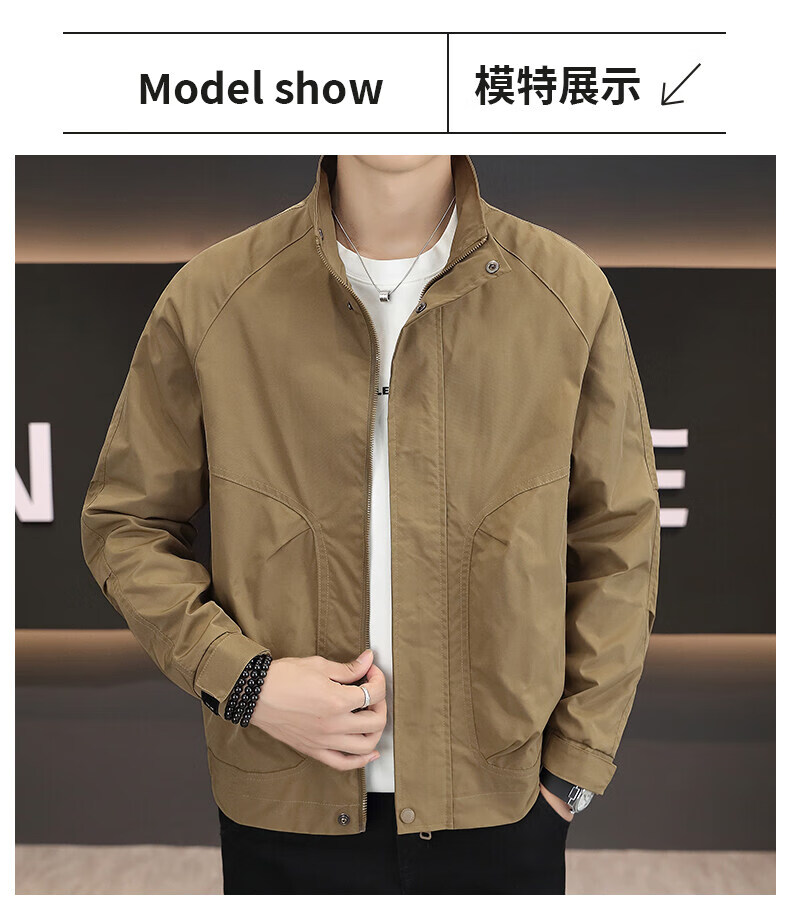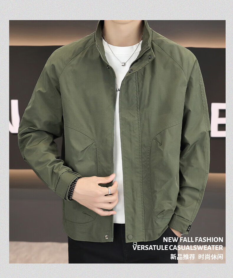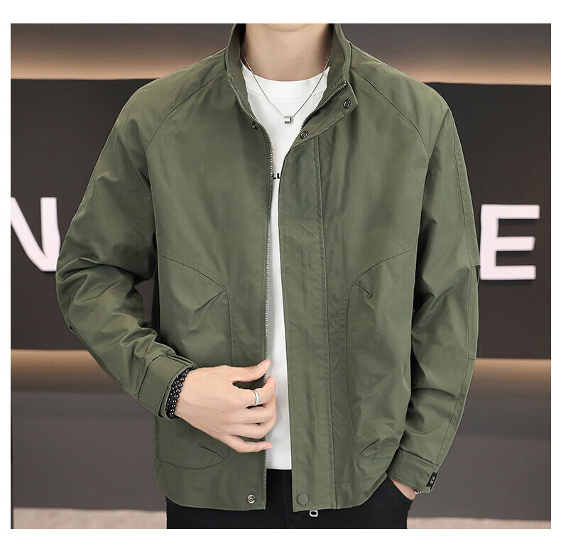 Playboy stand collar jacket men's spring and autumn 2025 new high-end casual trendy jacket men's work clothes green spring and autumn style L 125-145Jin Jin equals 0.5 kg
