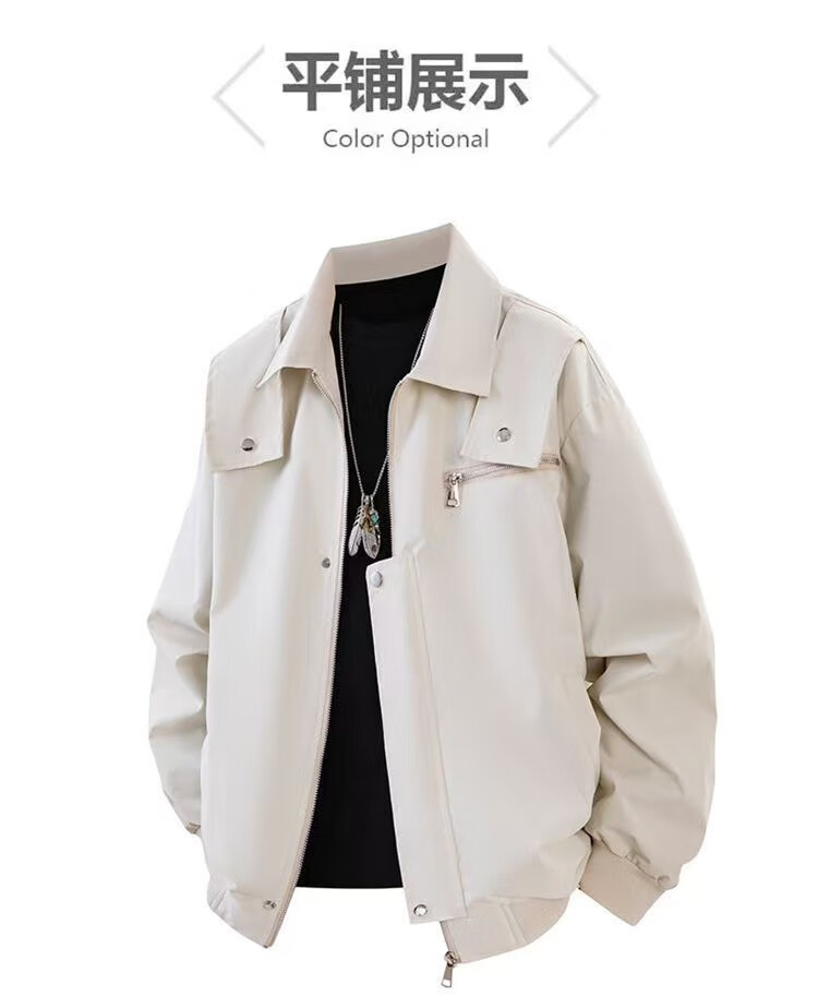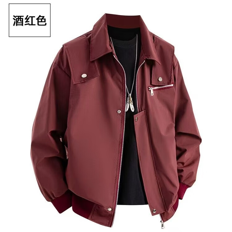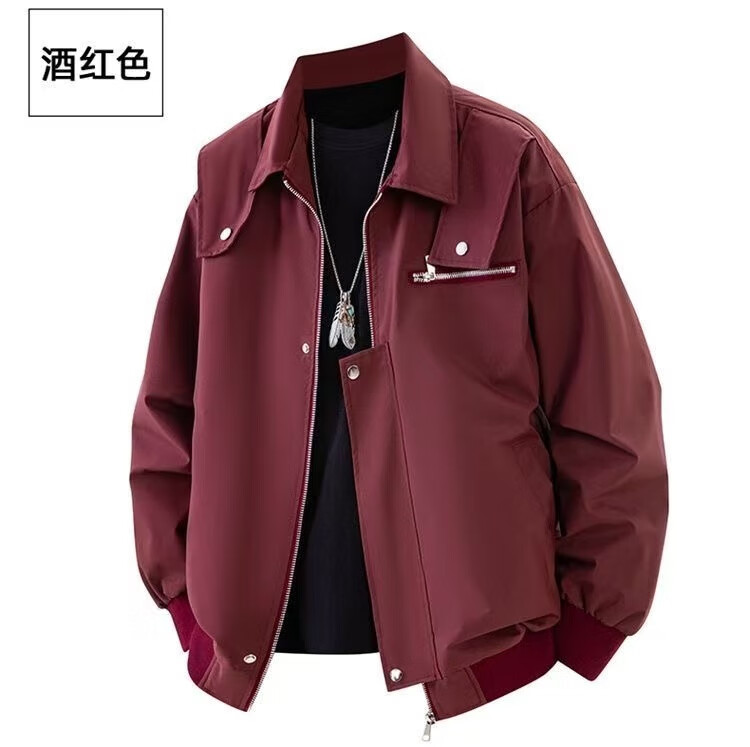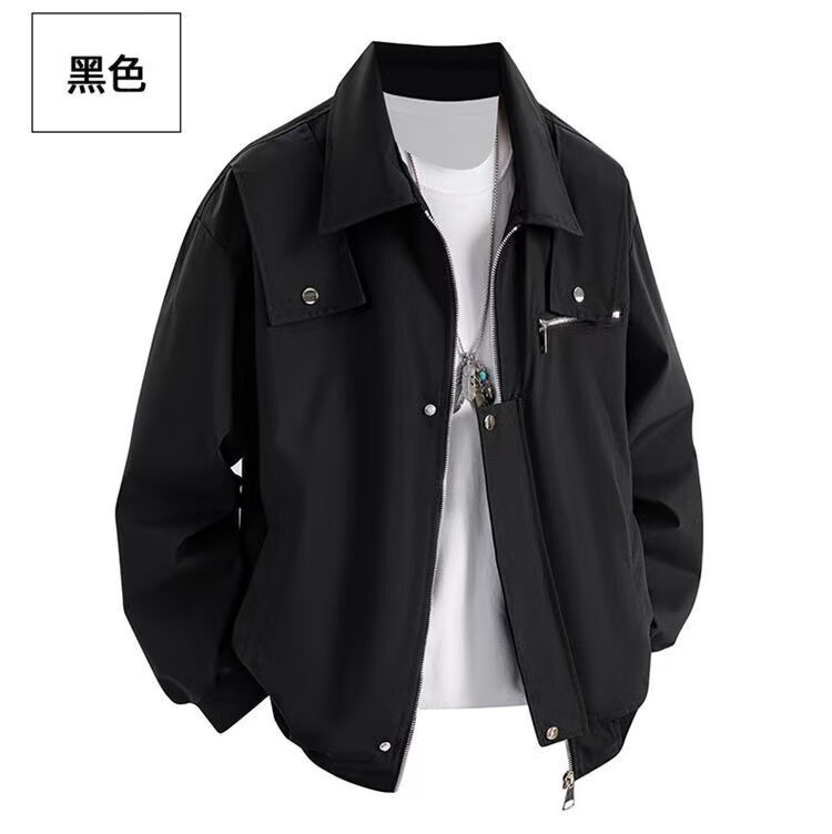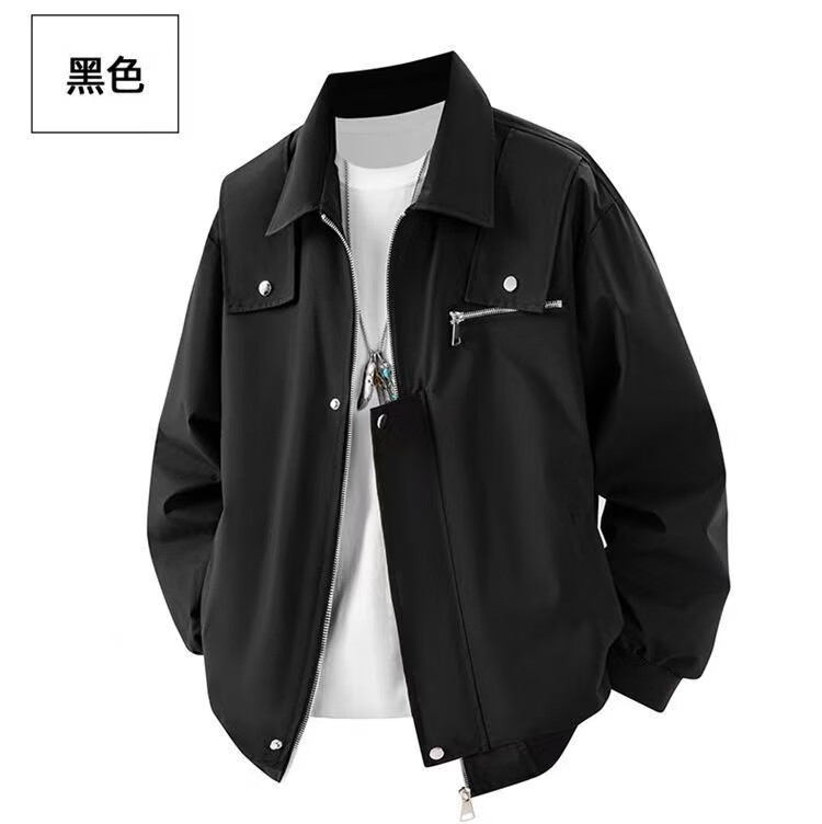Woodpecker Jacket Men's Autumn and Winter Trendy American Loose Workwear Flight Jacket Men's Lapel Versatile Casual Top Black XL