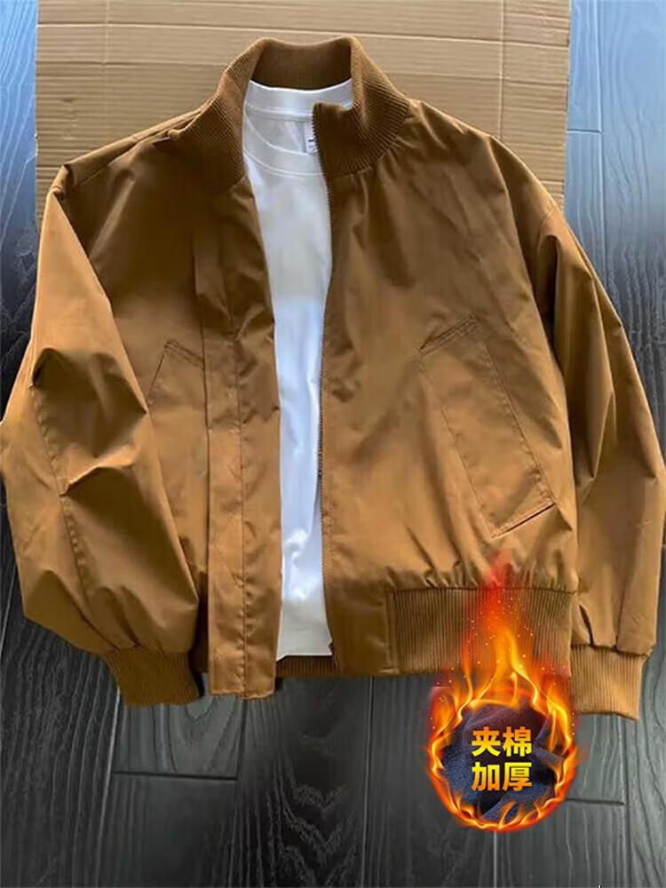 Luyal cleanfit American flight jacket men's autumn trendy brand wear short baseball uniform heavy stiff work jacket brown regular style XL recommended 120-140Jin Jin equals 0.5 kg