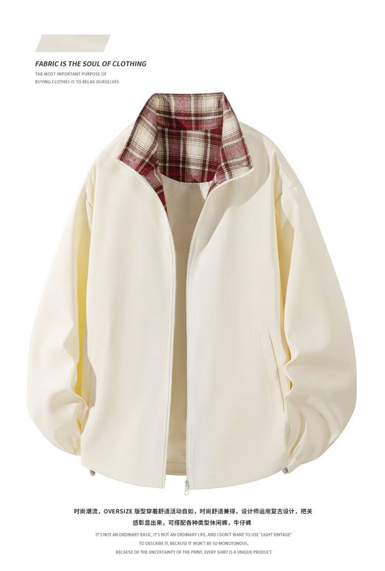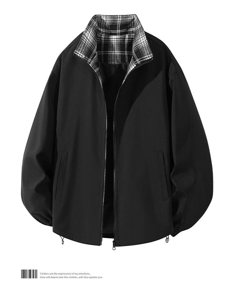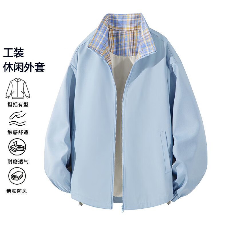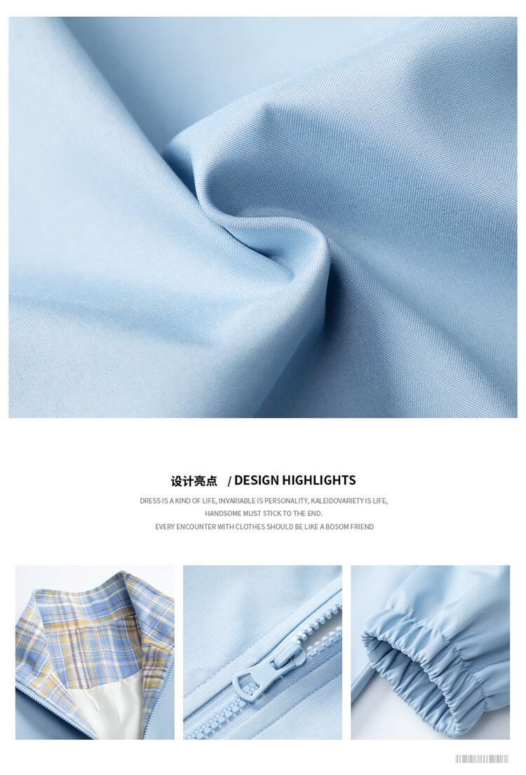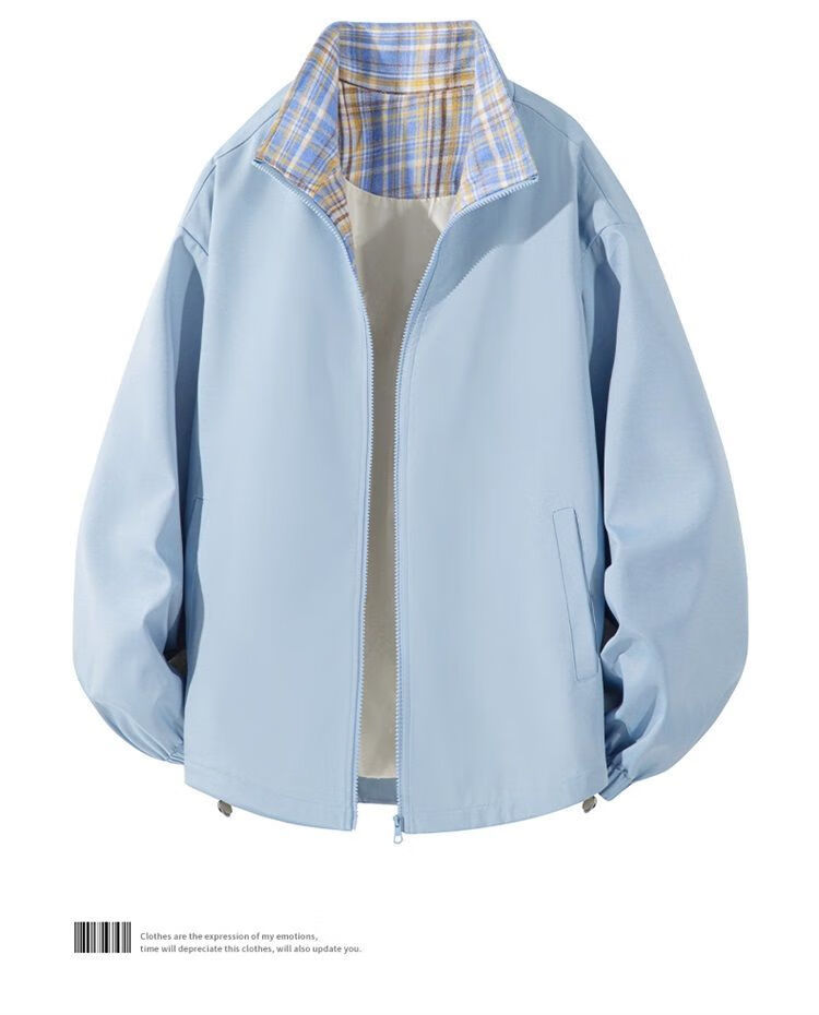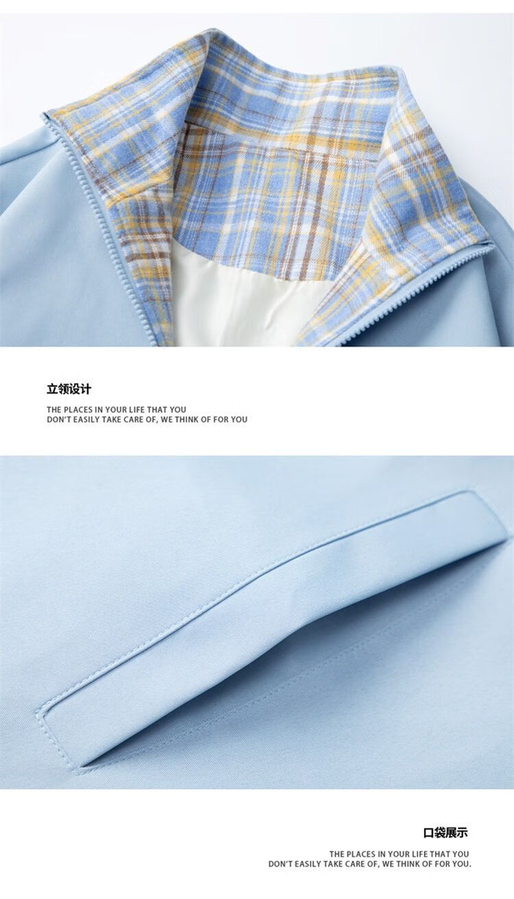Light blue dopamine plaid jacket men's spring and autumn sports flight jacket American high-end baseball uniform black autumn must-have XL recommended 115-130 Jin Jin equals 0.5 kg