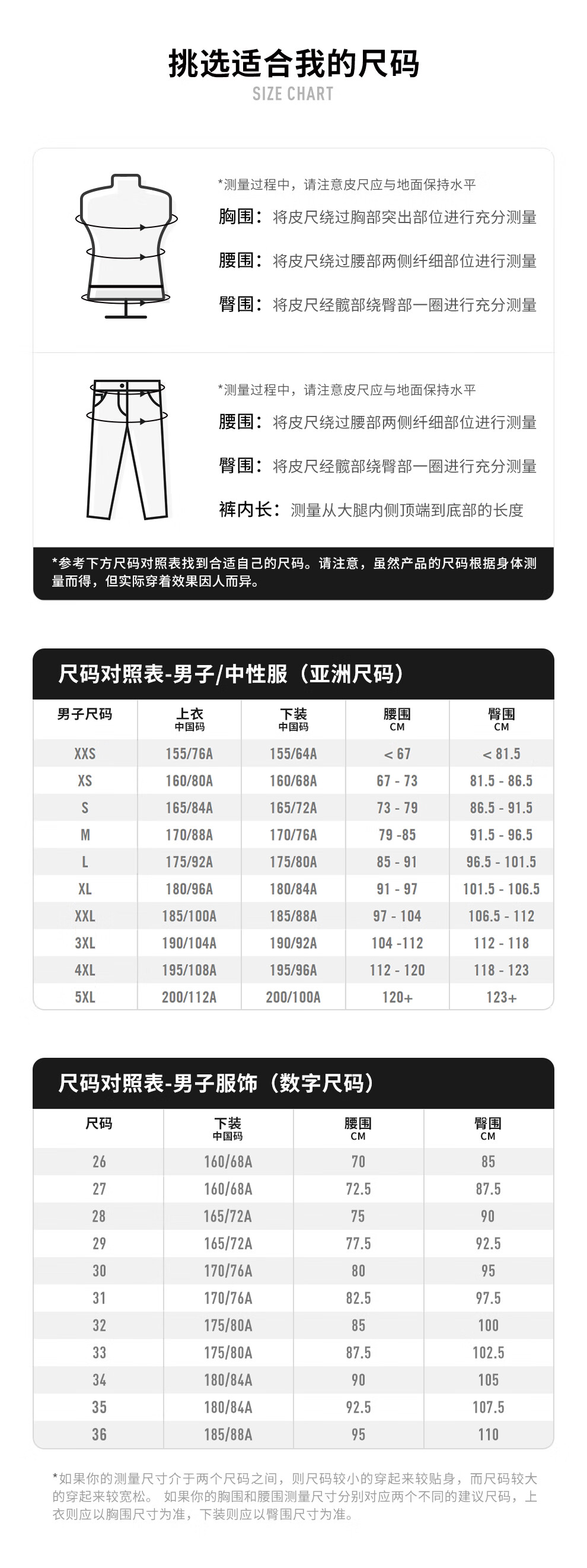 China (cm) 160-165/84-86 165-170 / 88-90 167-172 / 92-96 168-173 / 98-102 170-176 / 106-110