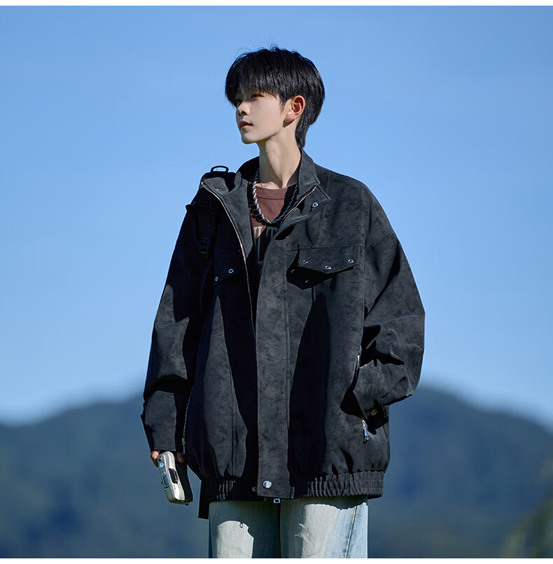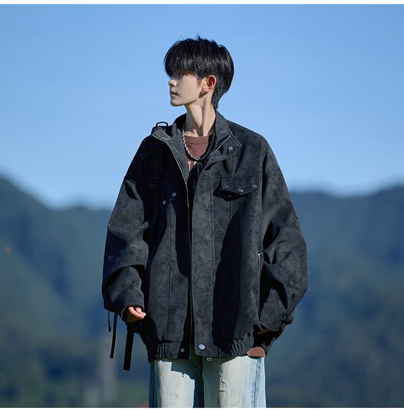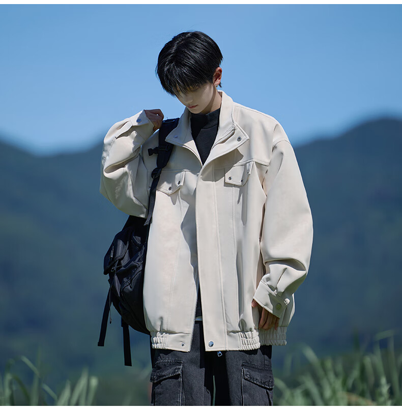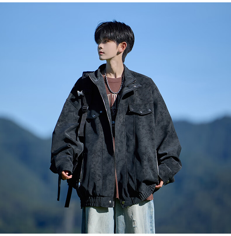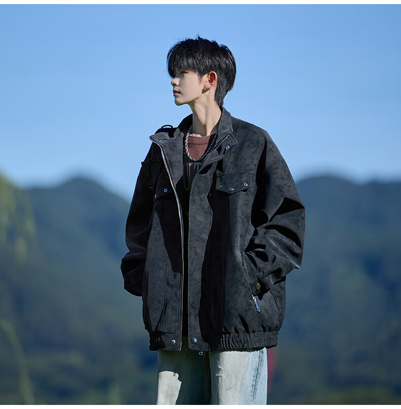 Shelley Jones American retro pu leather jacket men's autumn new loose trendy high-end handsome jacket clothing black cotton XL recommended 125-135Jin Jin equals 0.5 kg